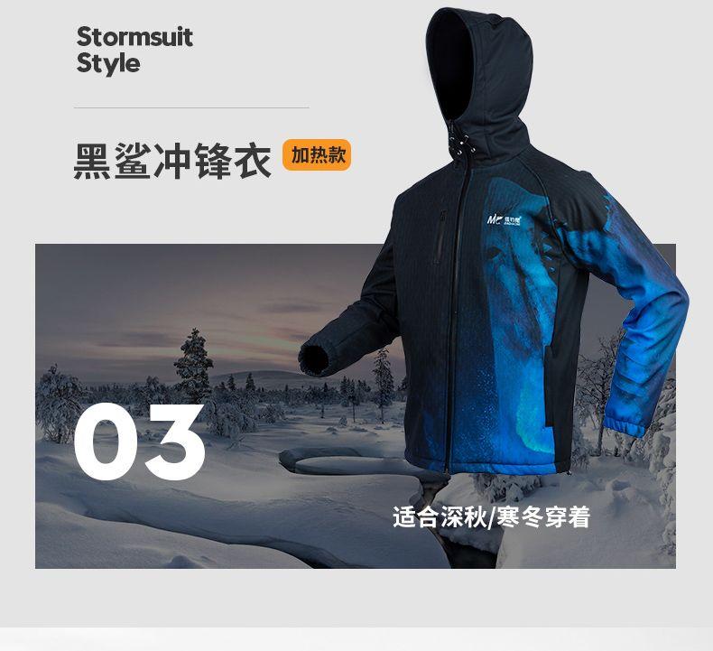 佳钓尼智能冲锋衣加绒钓鱼马夹防寒服加热户外保暖