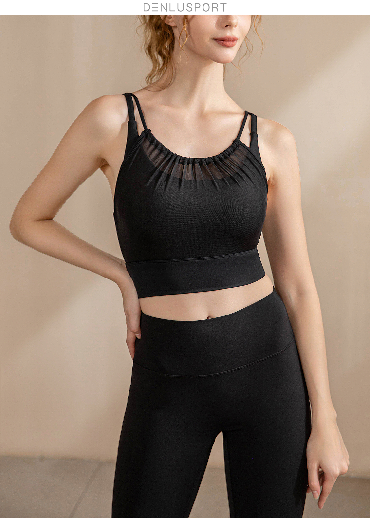 拼接网纱瑜伽运动文胸 清凉吊带假两件 真裸感超亲肤 DY66113#