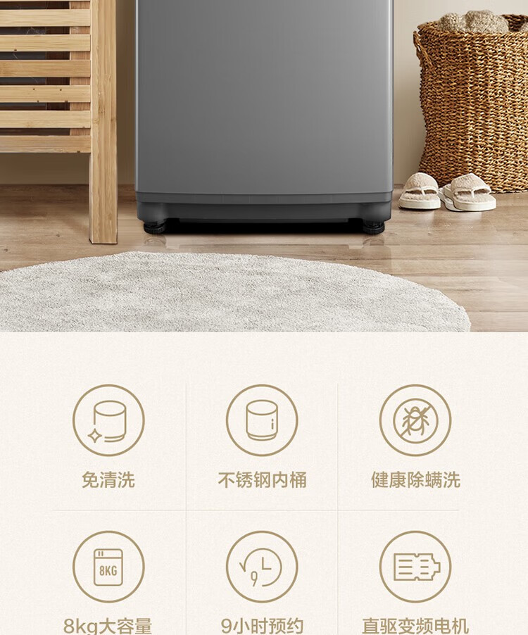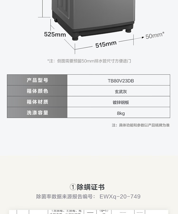 小天鹅(LittleSwan)TB80V23DB/TB100V23DB洗衣机全自动波轮变频直驱电机 大容量家用租房宿舍