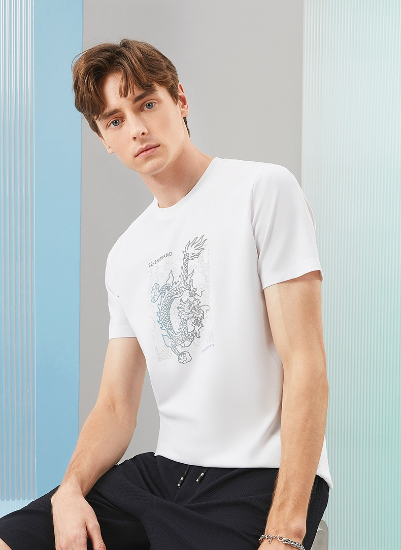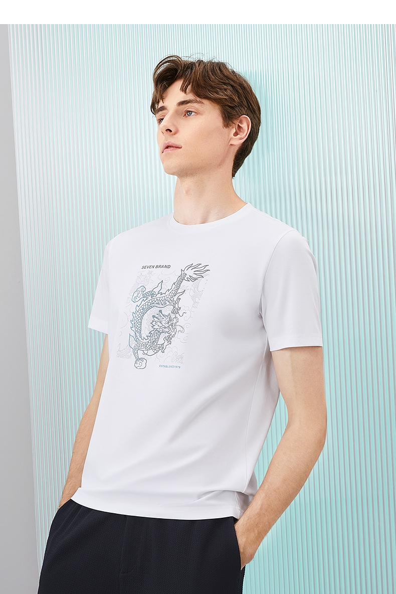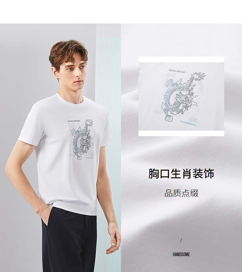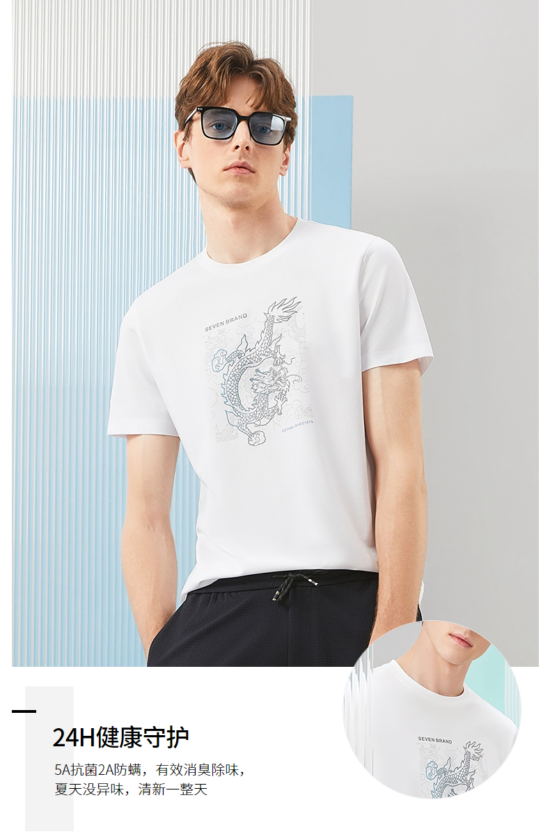 【5A抗菌2A防螨】柒牌男装短袖T恤男夏季新款生肖龙印花圆领上衣126T71540