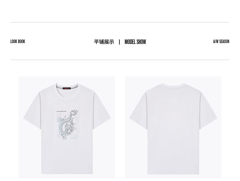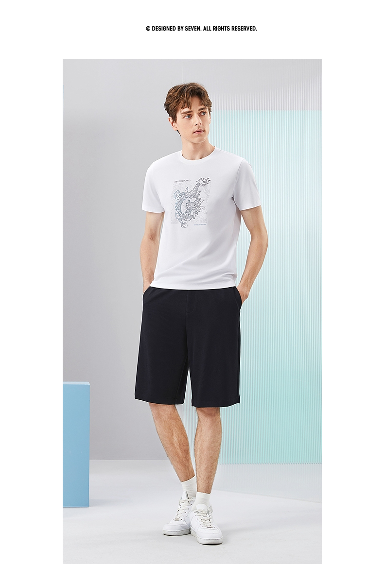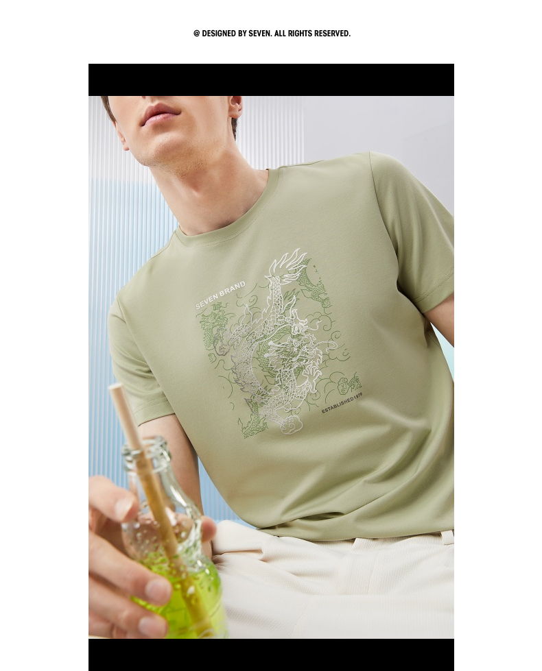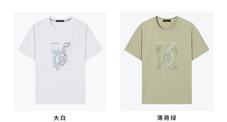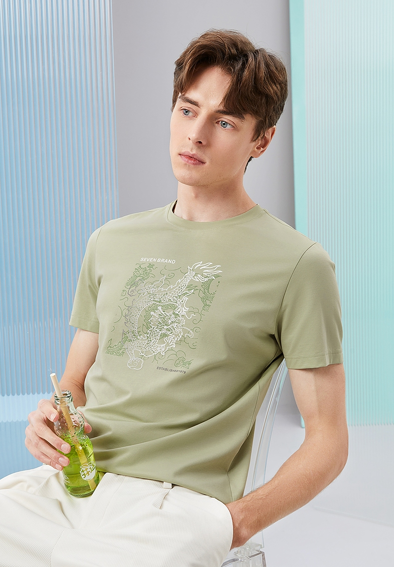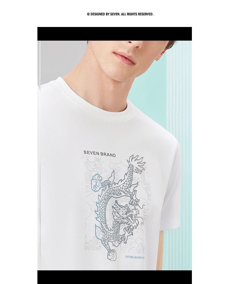 【5A抗菌2A防螨】柒牌男装短袖T恤男夏季新款生肖龙印花圆领上衣126T71540