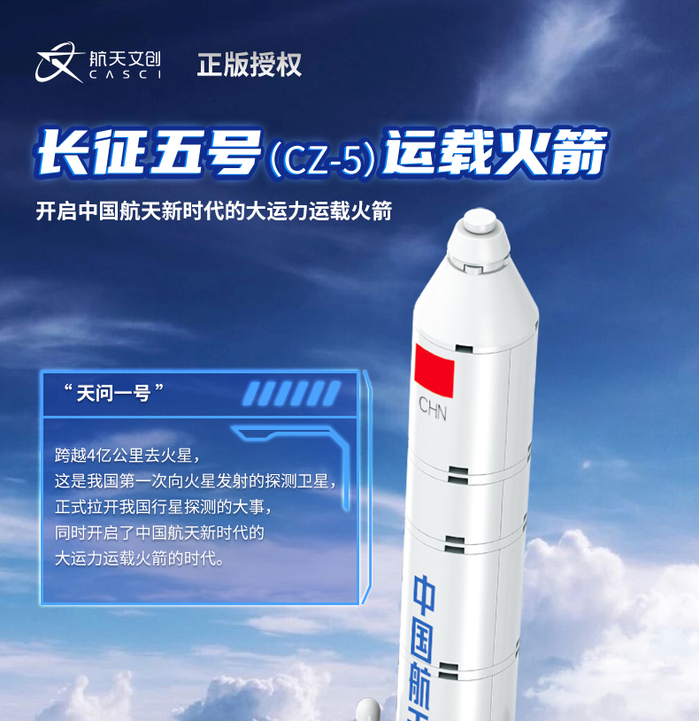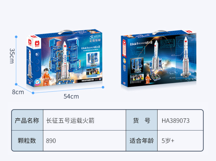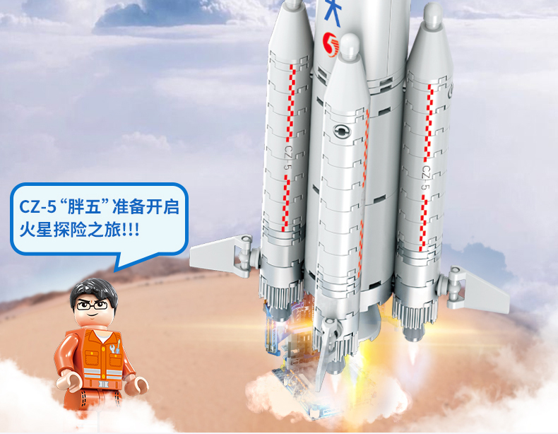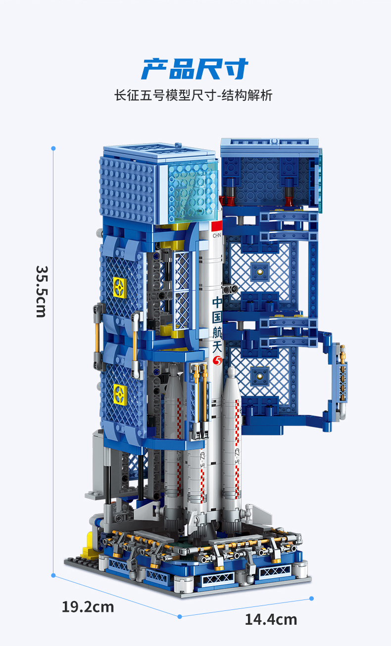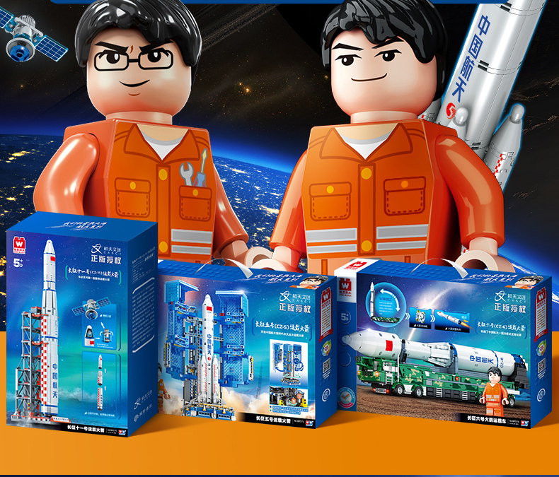 奥迪双钻(AULDEY)长征五号运载火箭+航天员儿童积木玩具5岁+