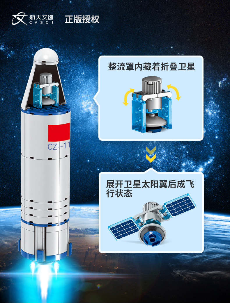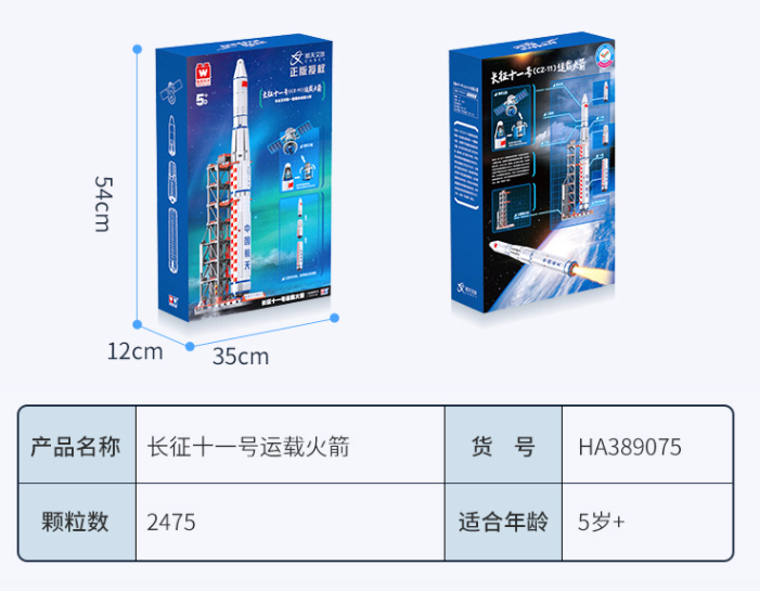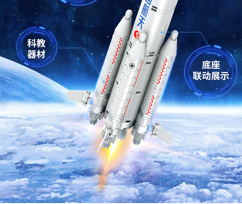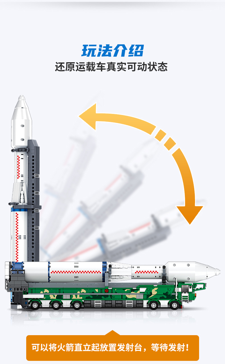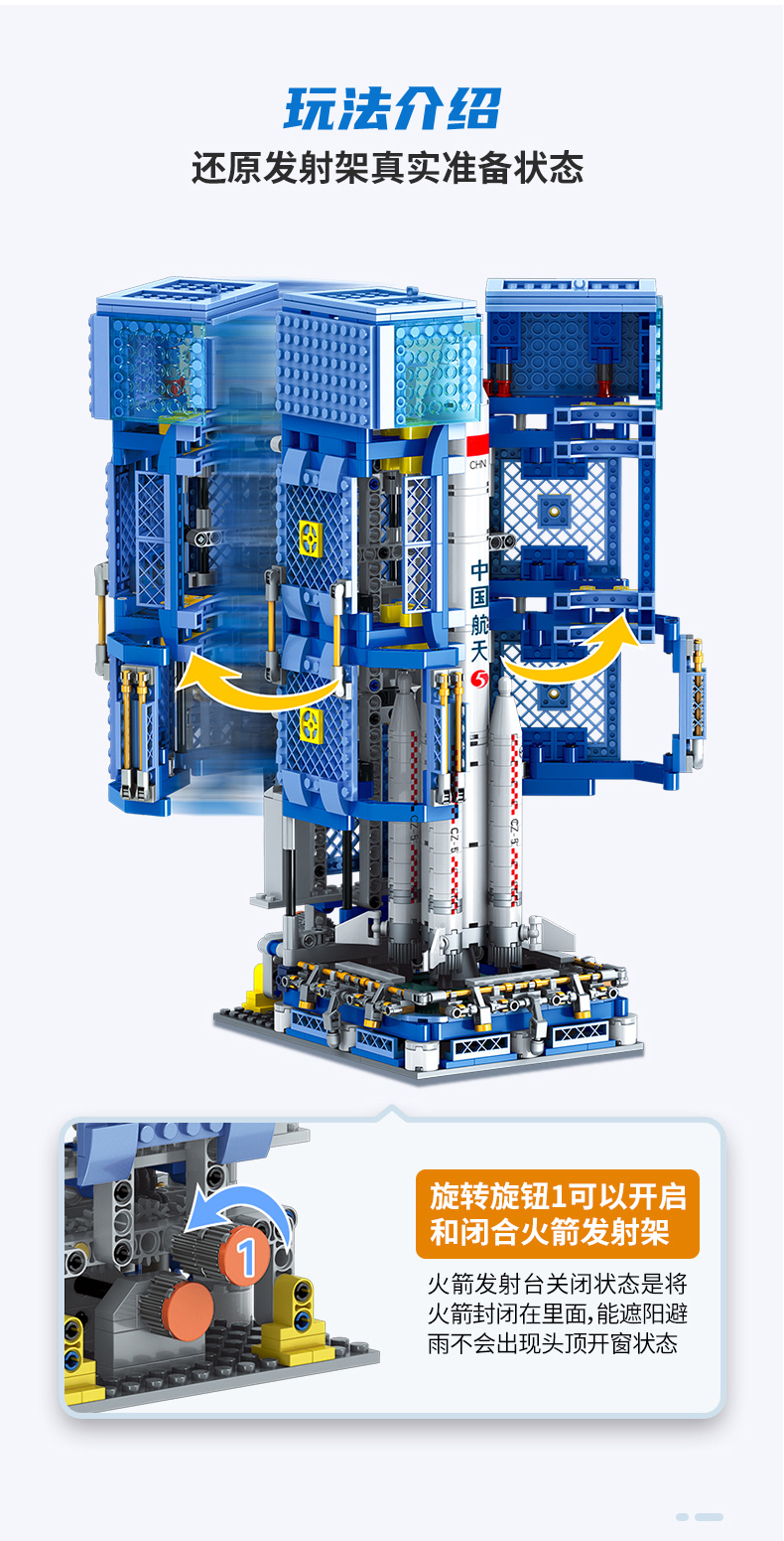 奥迪双钻(AULDEY)长征五号运载火箭+航天员儿童积木玩具5岁+