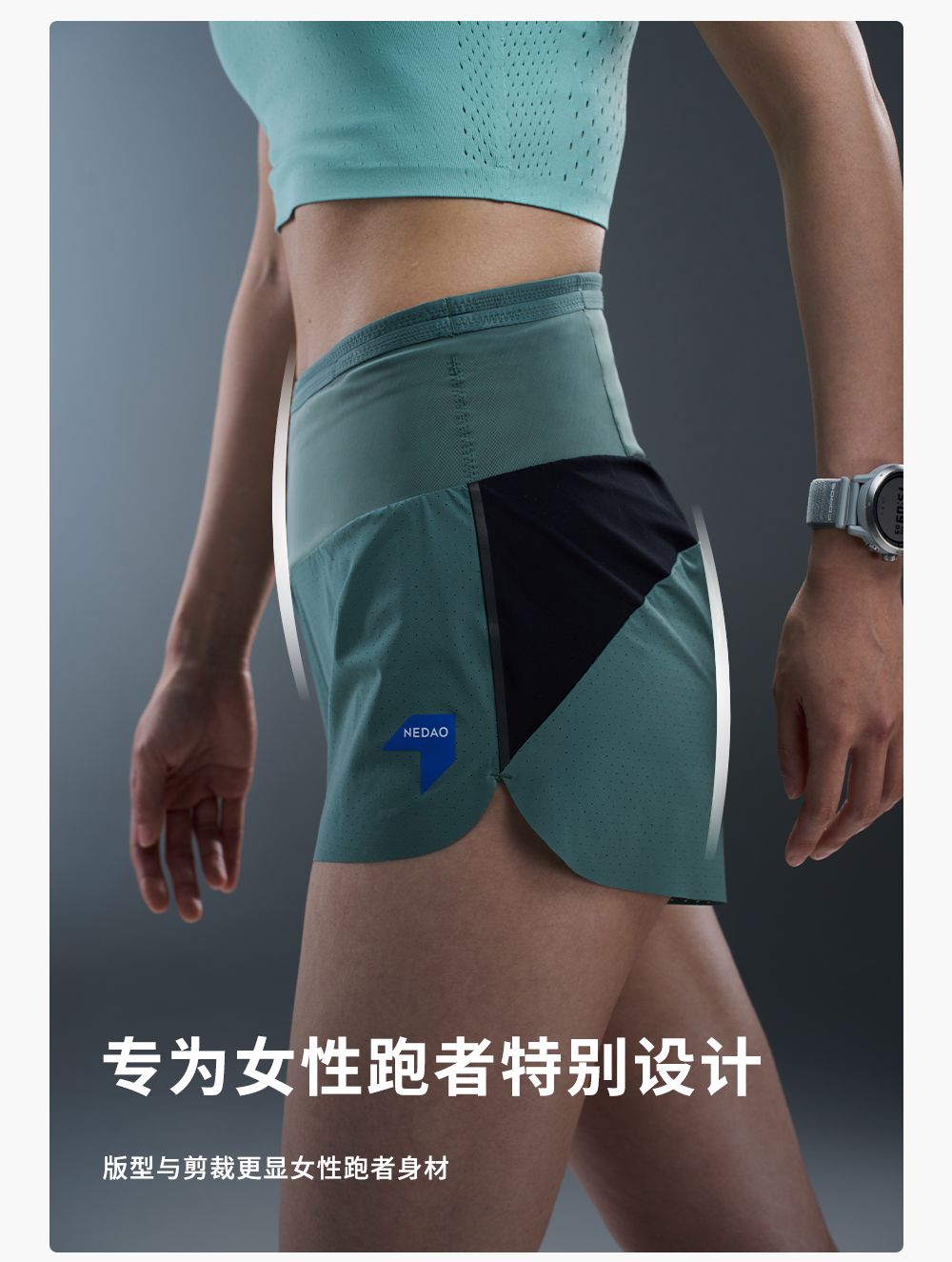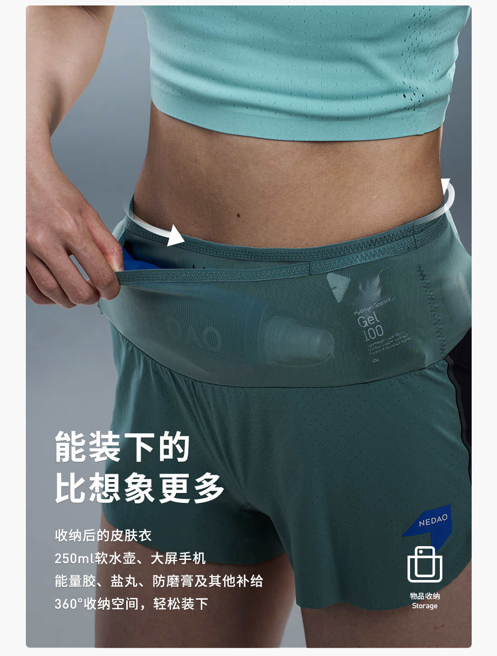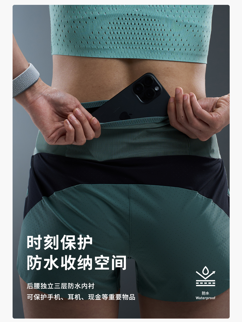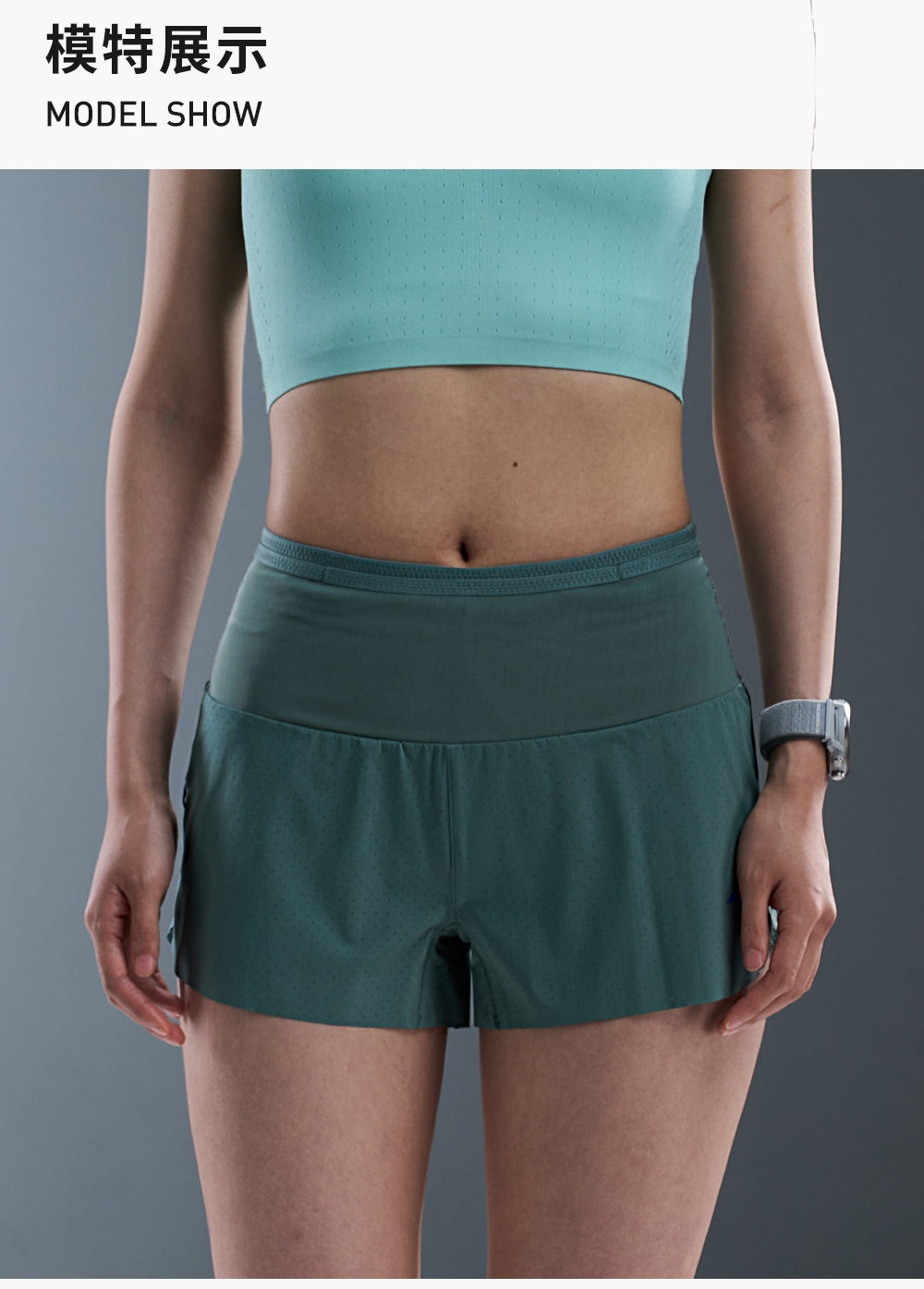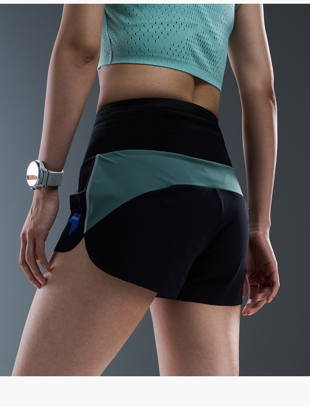 内道腰包拼接跑步短裤女越野撞色短裤马拉松透气舒适女士跑步短裤