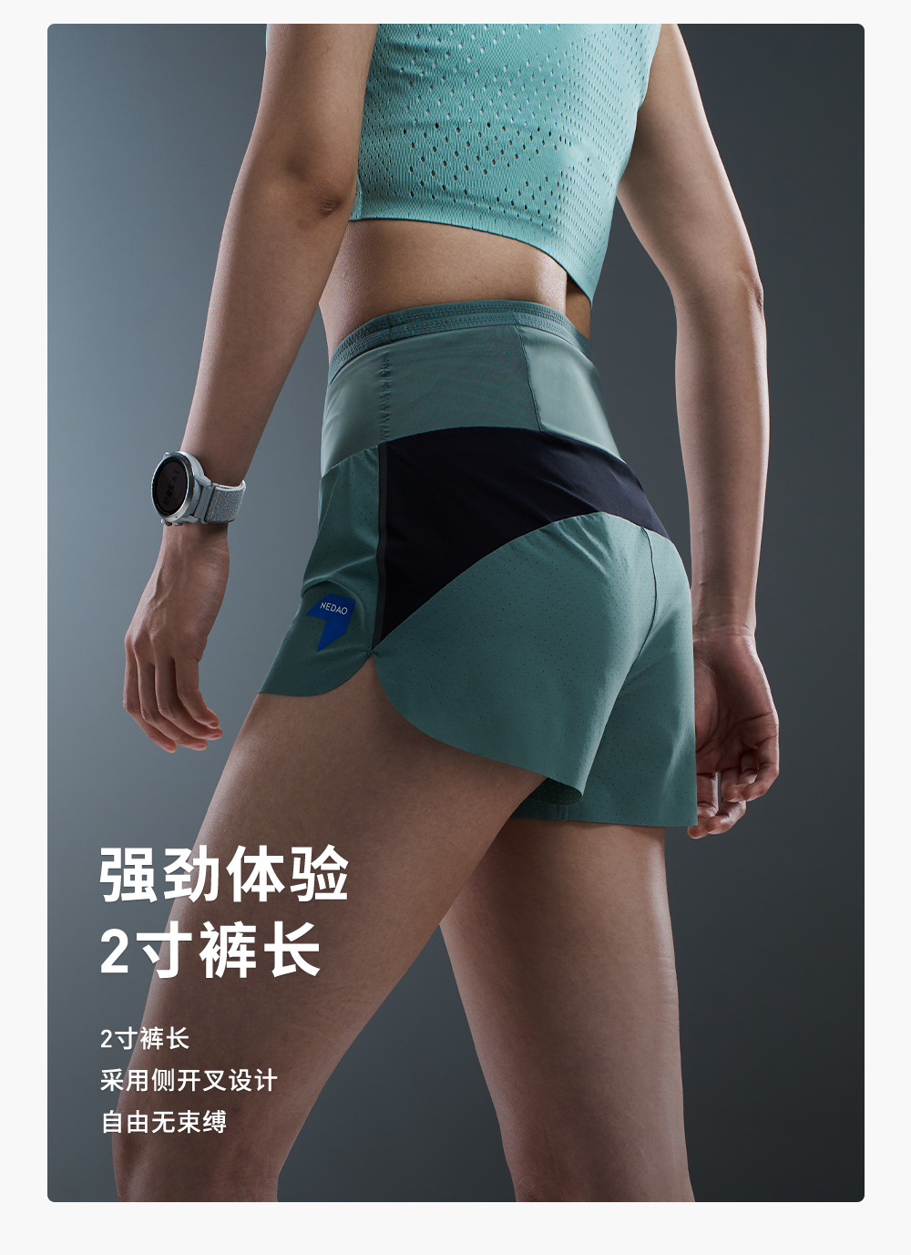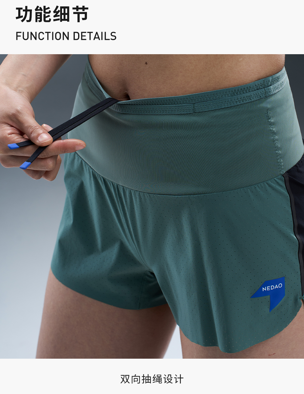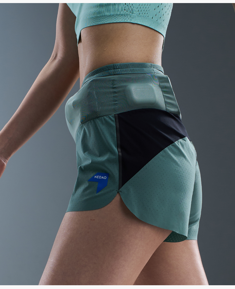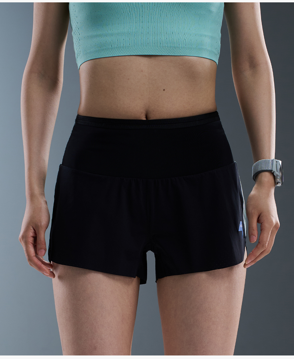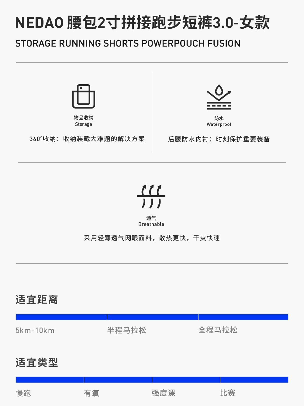 内道腰包拼接跑步短裤女越野撞色短裤马拉松透气舒适女士跑步短裤