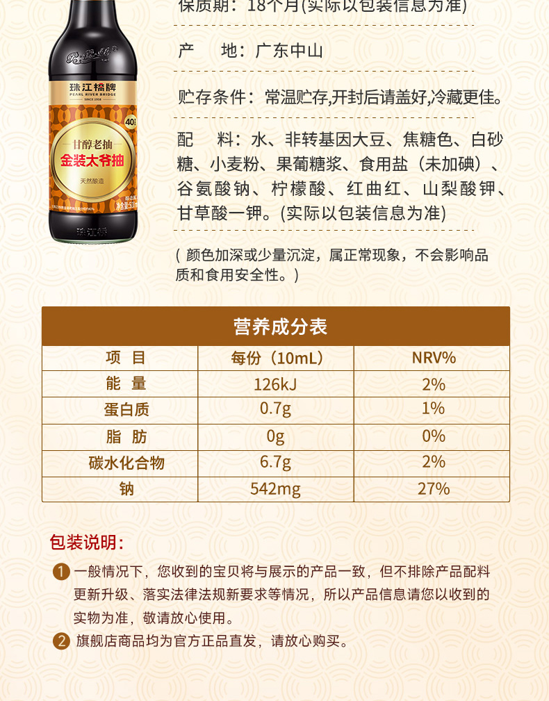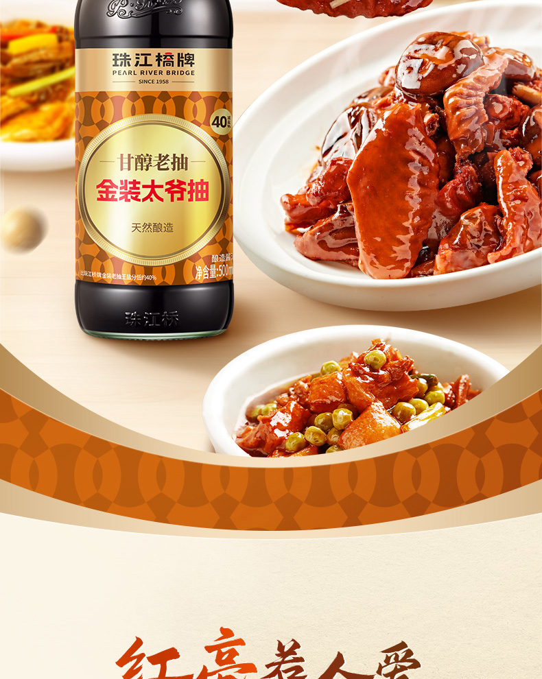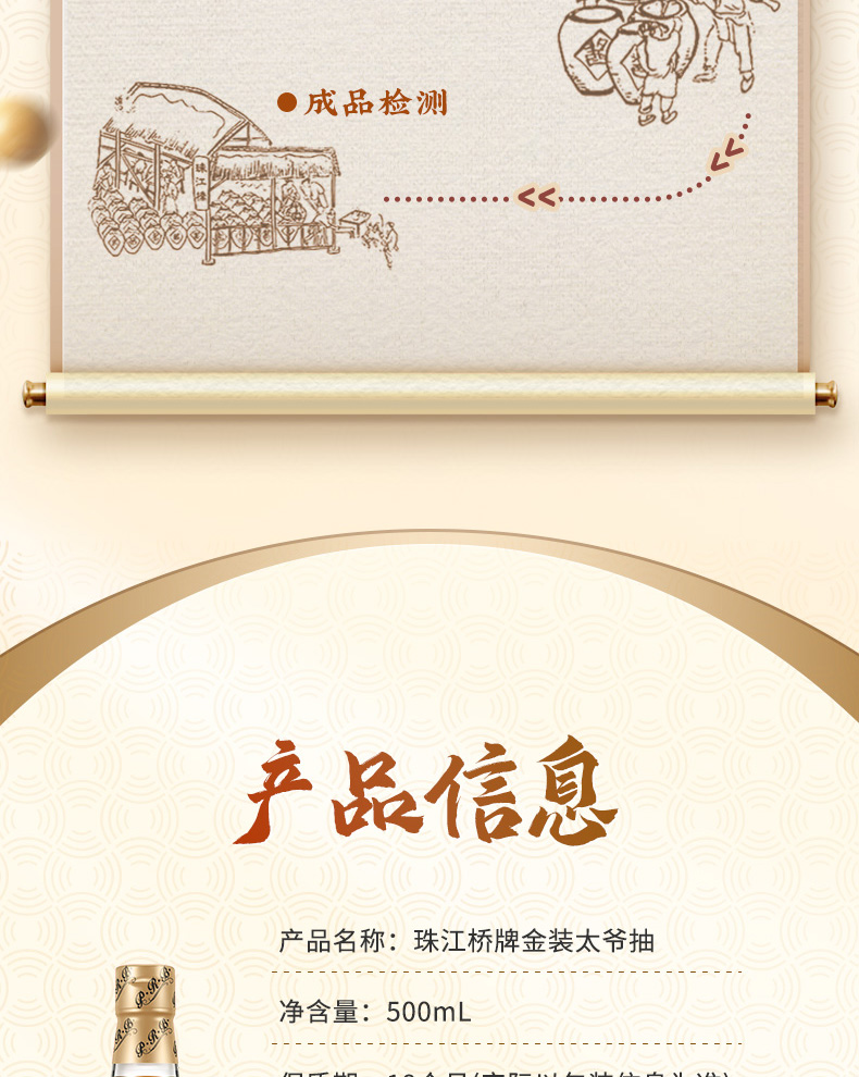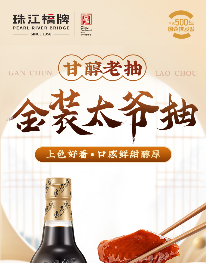 【新品】珠江桥牌 金装太爷抽500ml 轻盐老抽 减盐40%