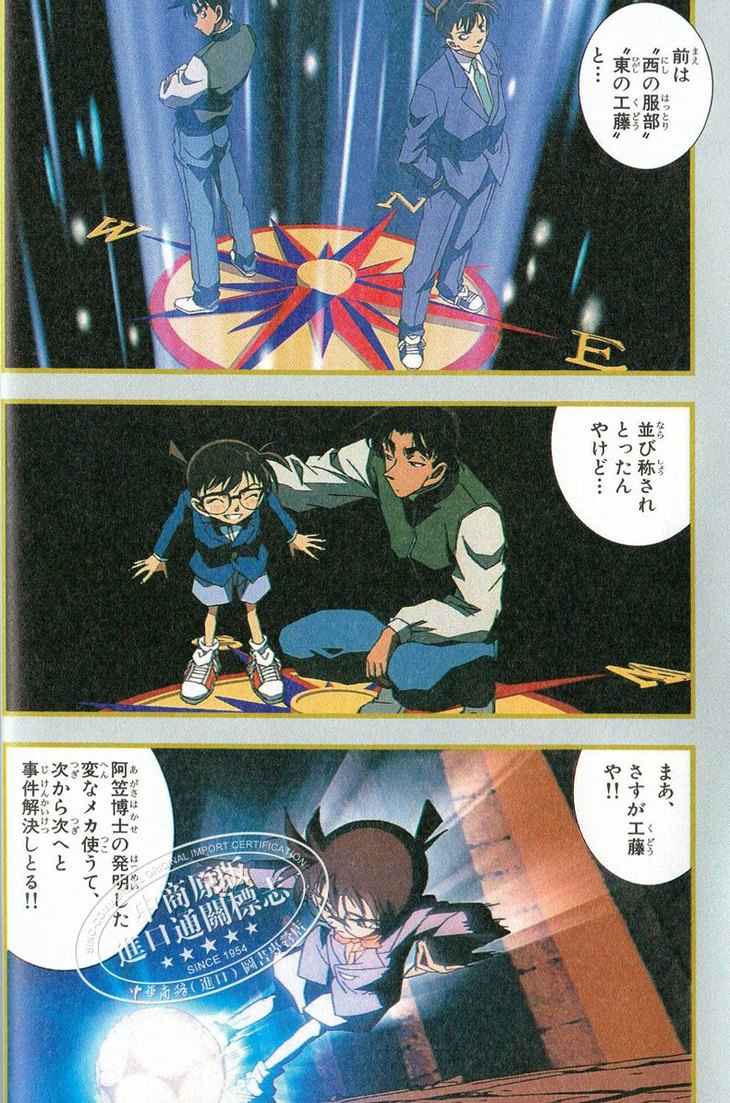 その他の登場人物/小嶋元太·吉田歩美·円谷光彦(コナンの同級生。少年探偵団を結成)、灰原哀(コナンと同じ薬で幼児化した女性。正体は不明)、阿笠博士(工藤家の隣りに住む科学者。新一とコナンが同一人物だと知っている)、鈴木園子(鈴木財閥の令嬢。蘭とは大親友)、服部平次(西の高校生名探偵で、大阪府警本部長の息子。コナンの正体を知る)、遠山和葉(平次の幼なじみ。蘭とは仲良し)