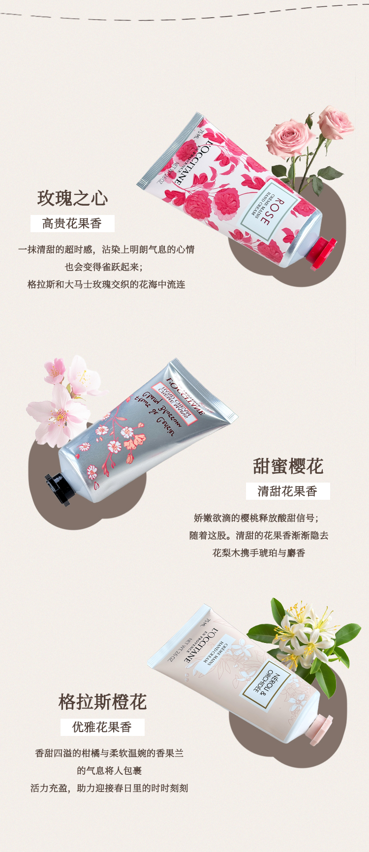 规格:格拉斯橙花护手霜+玫瑰之心润手霜+甜蜜樱花润手霜 75ml*3