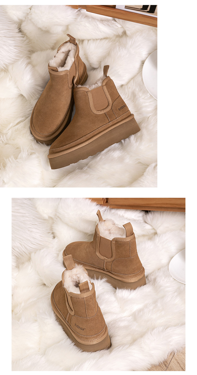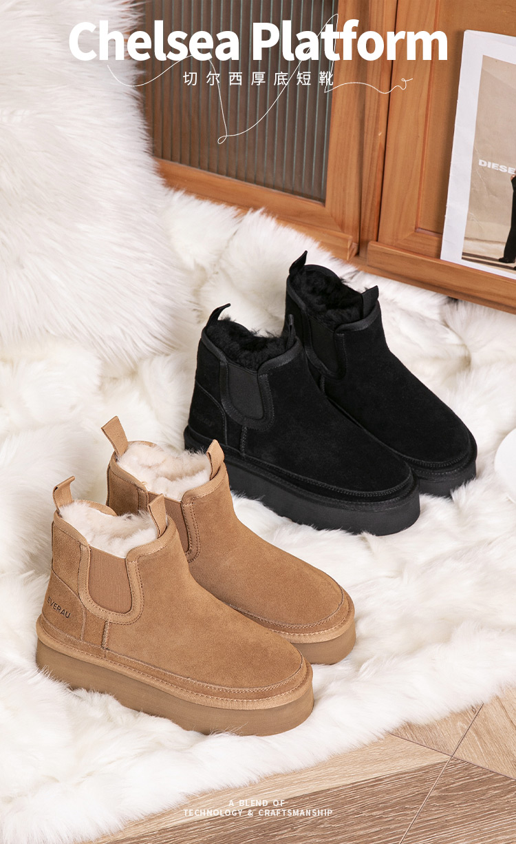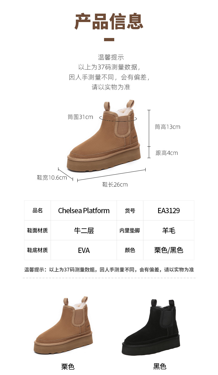 EVERAU小个子女生先穿加厚4cm防水台切尔西女士秋冬雪地靴EA3129 商品图1