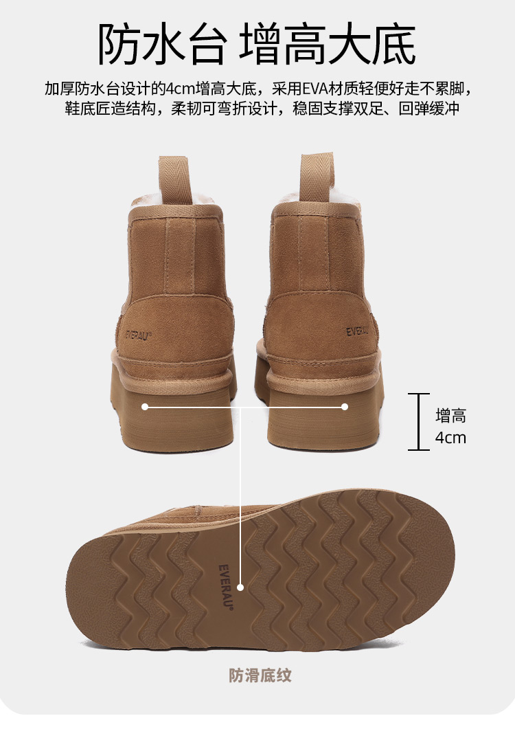 EVERAU小个子女生先穿加厚4cm防水台切尔西女士秋冬雪地靴EA3129 商品图5