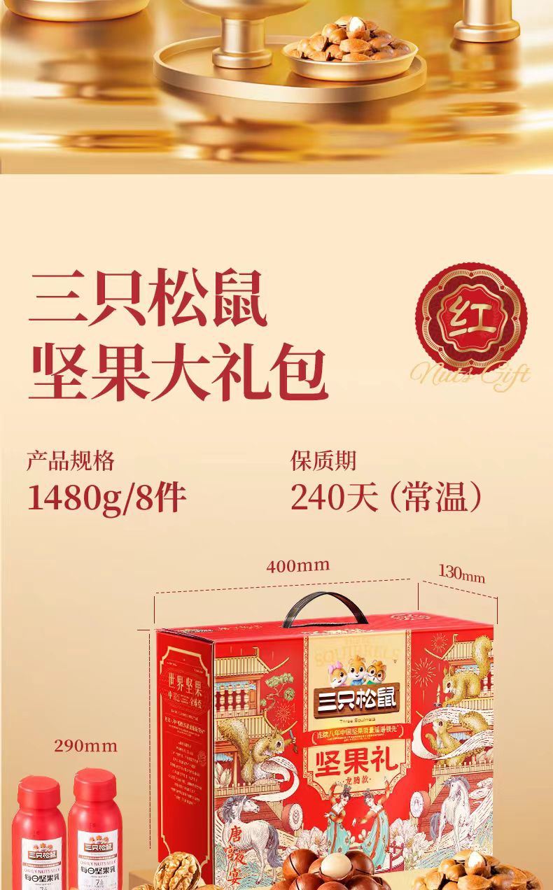 【三只松鼠年货礼盒龙腾礼盒款】天赐珍果 、健康赠礼