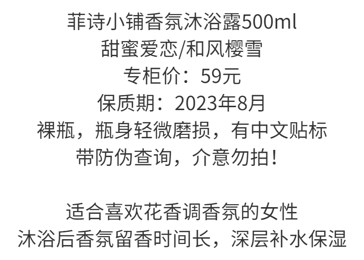 【爆款超低价预售 急单慎拍】菲诗小铺沐浴露500ml家庭装大容量持久留香72小时香水型沐浴液女