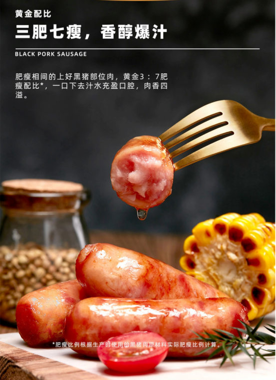 🌈【君栀禾黑猪肉烤肠】✅告别淀粉肠,👏🏻配料表干净,🔥🔥肥瘦相间的上好黑猪部位,😘黄金3:7肥瘦配比 ✅无添加,杜绝科技与狠活儿