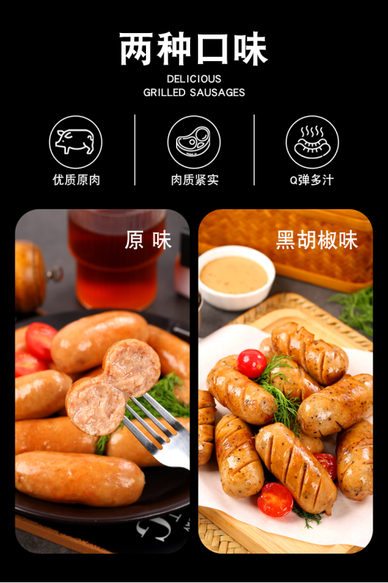 吃点健康的很重要!杜绝科技与狠活儿 告别淀粉肠,全是满满的肉!口口满足 用料满满,脆嫩可口,一口爆汁,√煎炒焖炸都可 无添加,配料表干净,原味+黑胡椒 两种口味😋随心搭配 🔥精选新鲜生态散养 24小时精心腌制,60分钟慢火蒸煮 🔥肥瘦相间的上好黑猪部位,黄金3:7肥瘦配比,一口下去汁水充盈,肉香四溢 这简直是梦中情肠啊兄弟姐妹们!