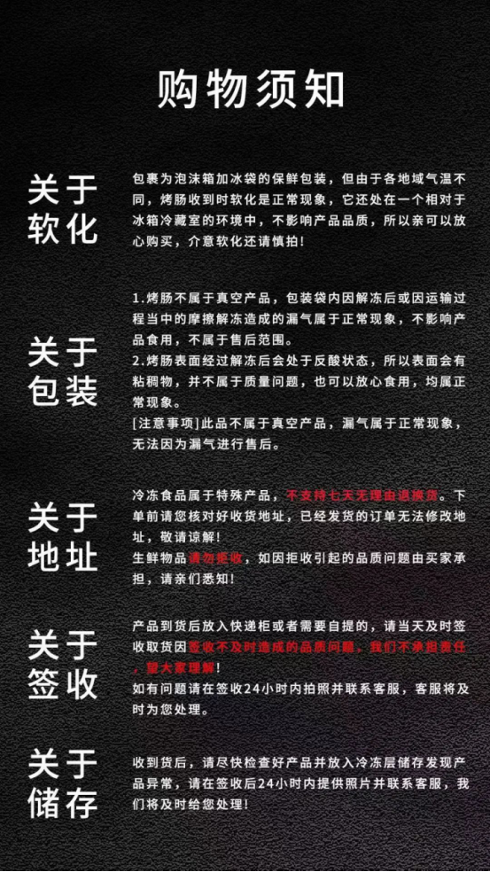 精选高山散养黑猪!新鲜制作,传统手法腌制,腌制24小时,采用猪后腿瘦肉,里脊肉,肥瘦相间,天然肠衣,跟普通肠衣不一样(第一时间锁鲜,没有冷冻肉,还添加了少量鸡肉进行配比 这样的原材料绝对是肉肠届的冠军选手,不踩雷的烤肠闭入眼!!!