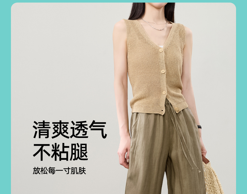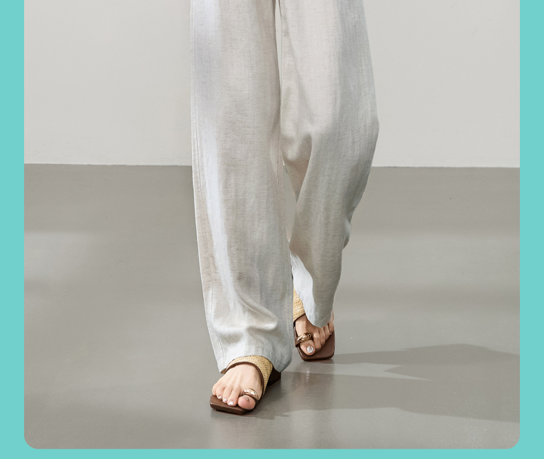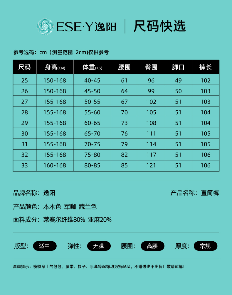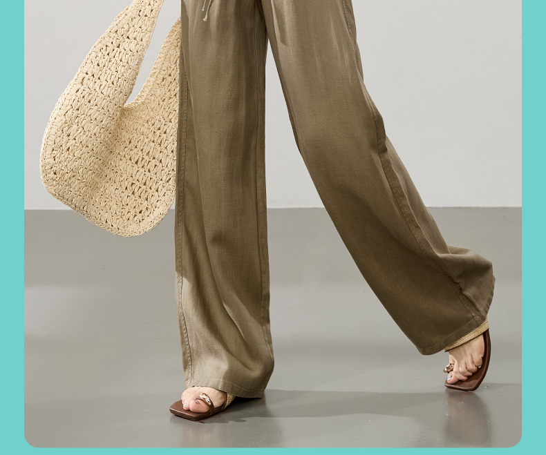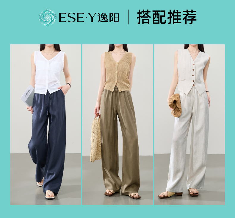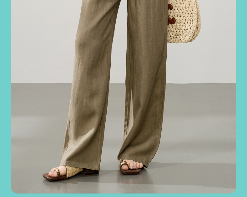 【莱赛尔亚麻直筒裤】逸阳夏新品淡人穿搭垂感直筒裤子5796