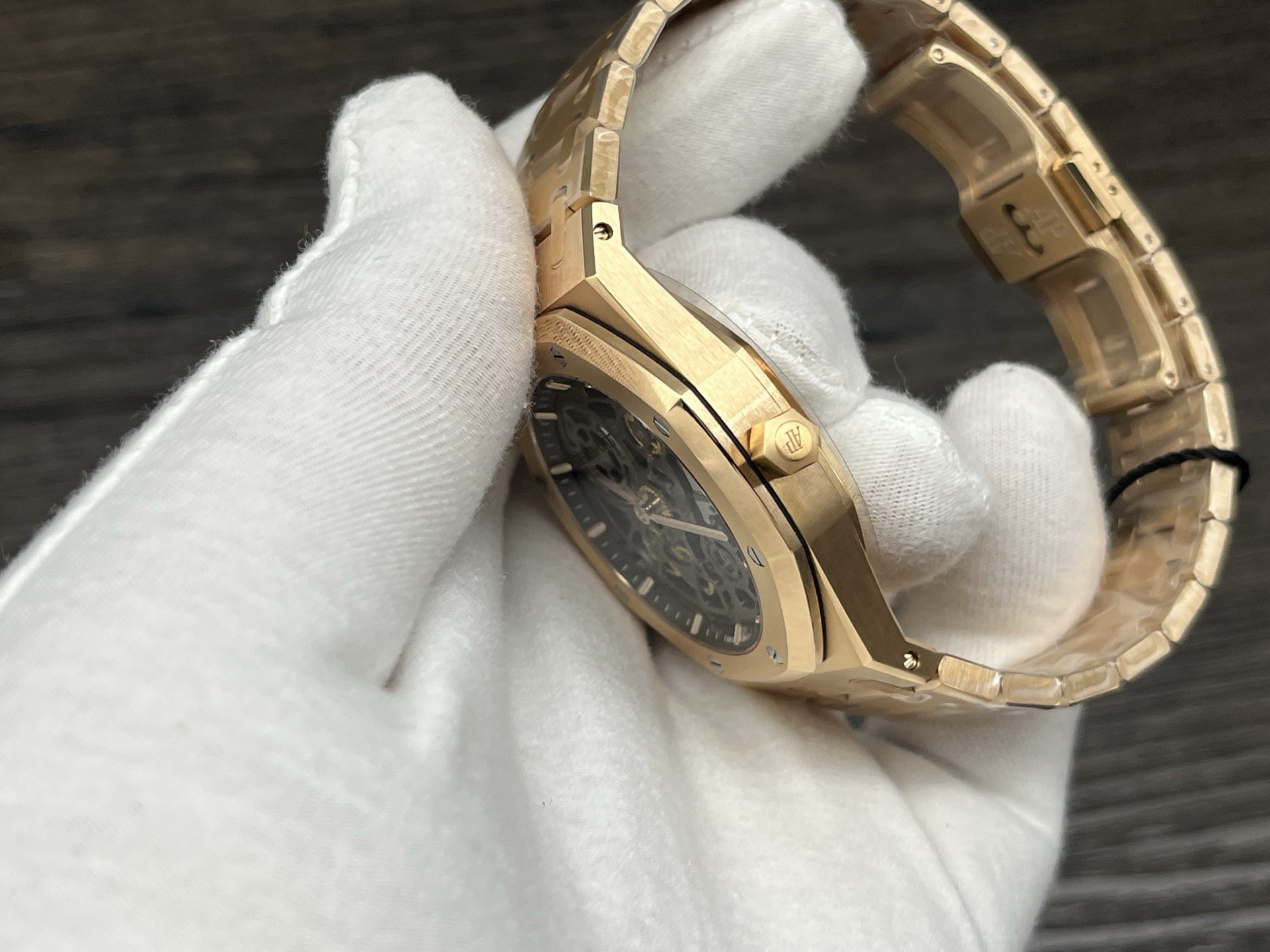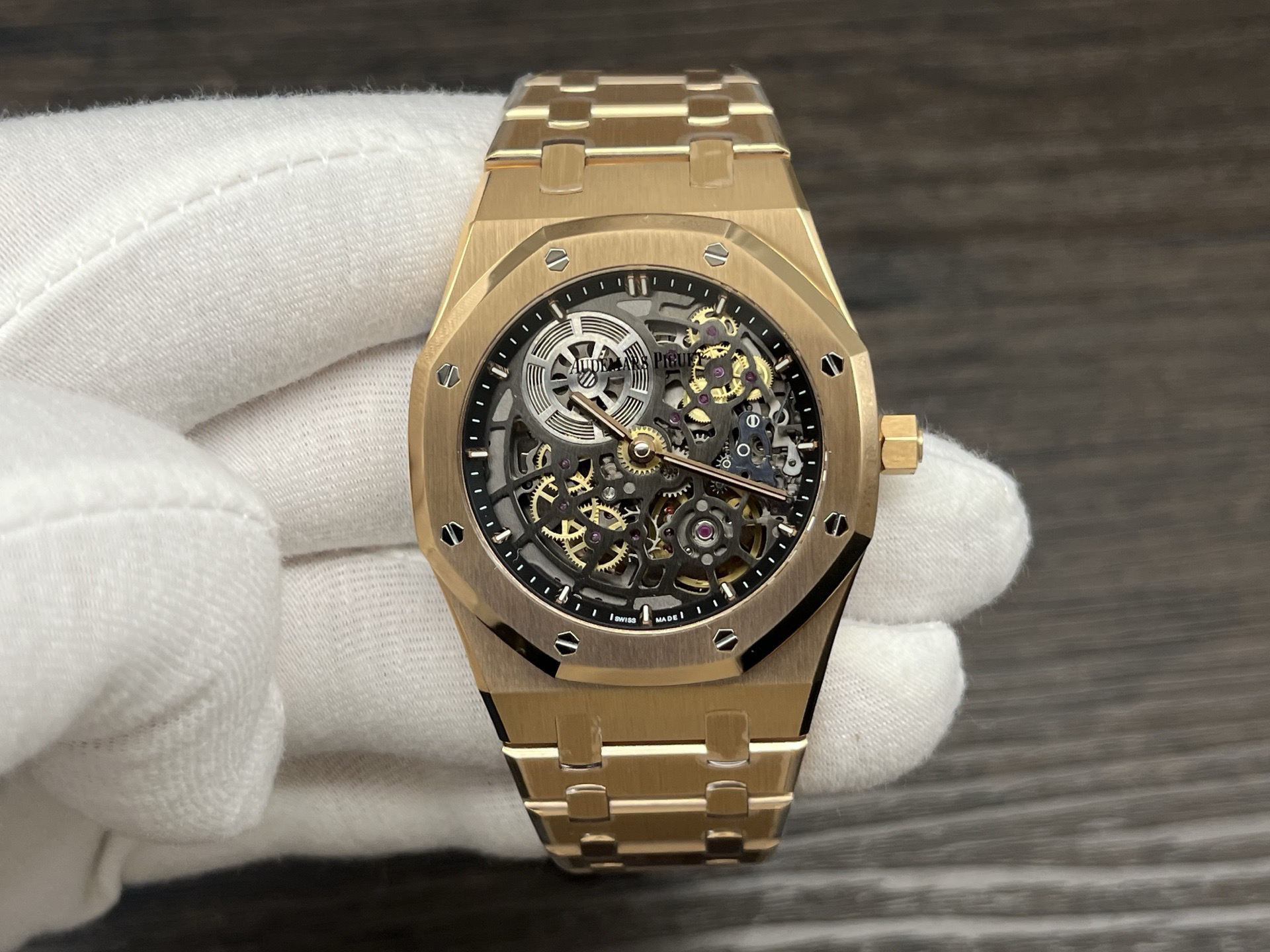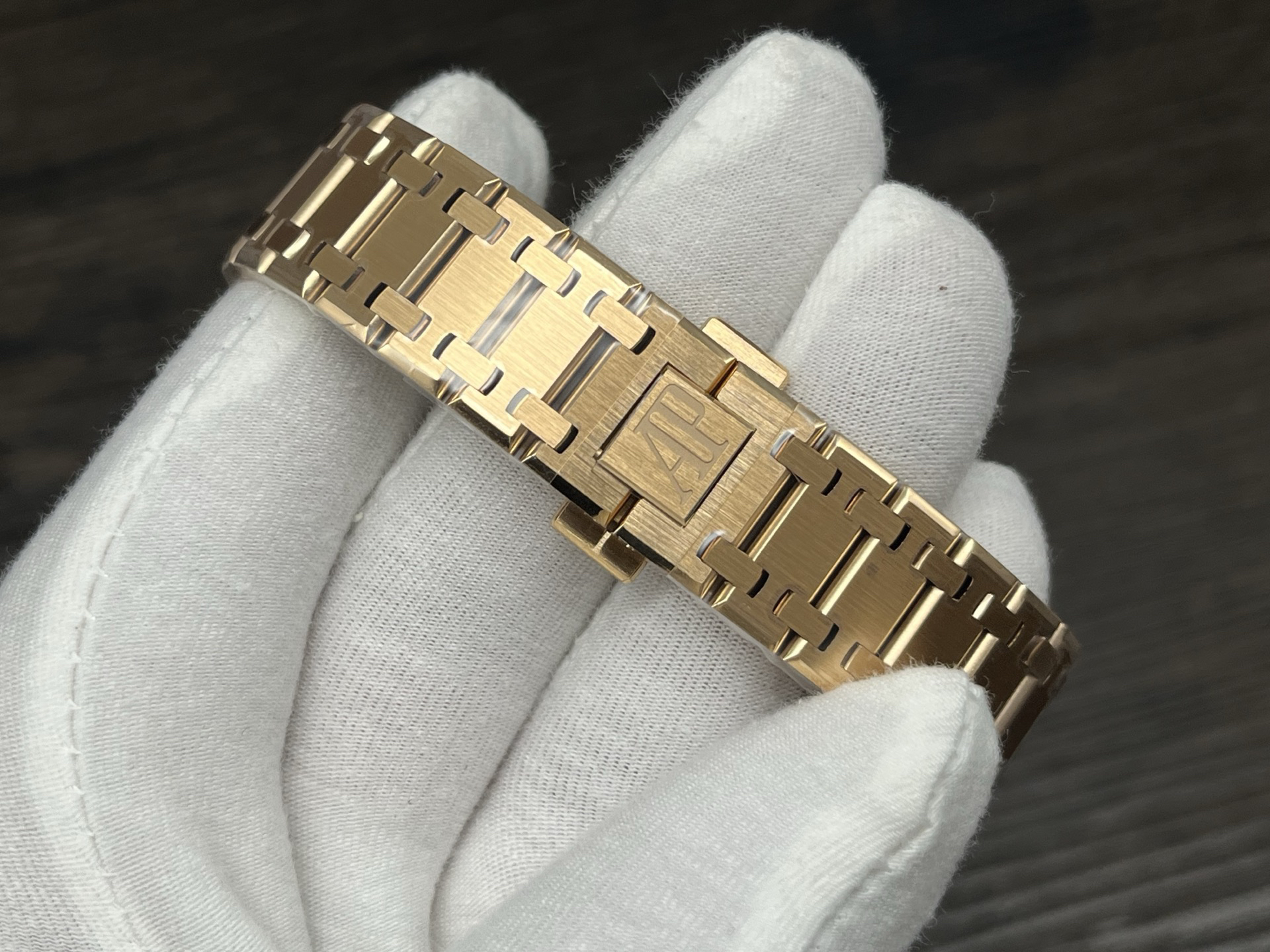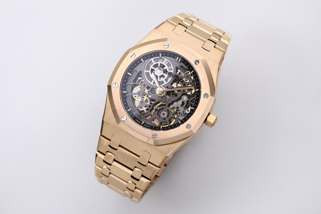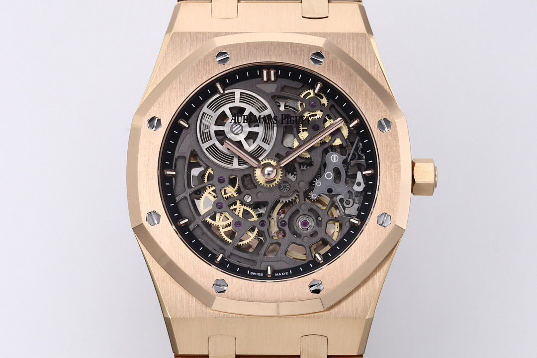 The highly recognizable octagonal 39MM case adopts advanced CNC machining technology to preliminarily cut and shape the stainless steel raw materials, and then uses exquisite wire drawing technology and forging surface polishing treatment to perfectly interweave on the case, presenting a unique luster and texture. The watch strap links are also produced through multiple complex polishing processes, making the surface of the links delicate, tightly connected, and flexible. Ensure comfort and fit when wearing. The AP logo on the watch buckle is finely carved, with clear lines and a three-dimensional steel structure. On the side of the case, the lugs naturally connect with the strap, creating a smooth transition and showcasing a harmonious beauty that is seamlessly integrated!
