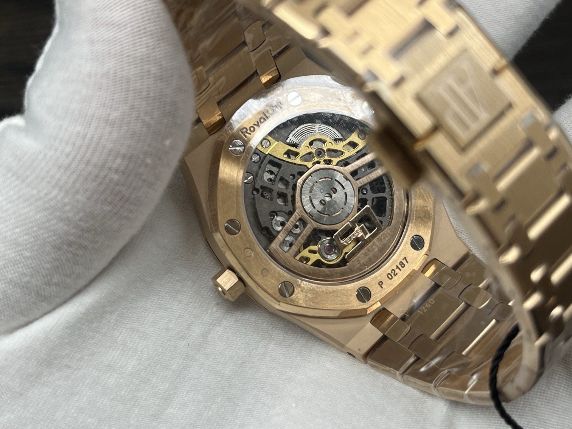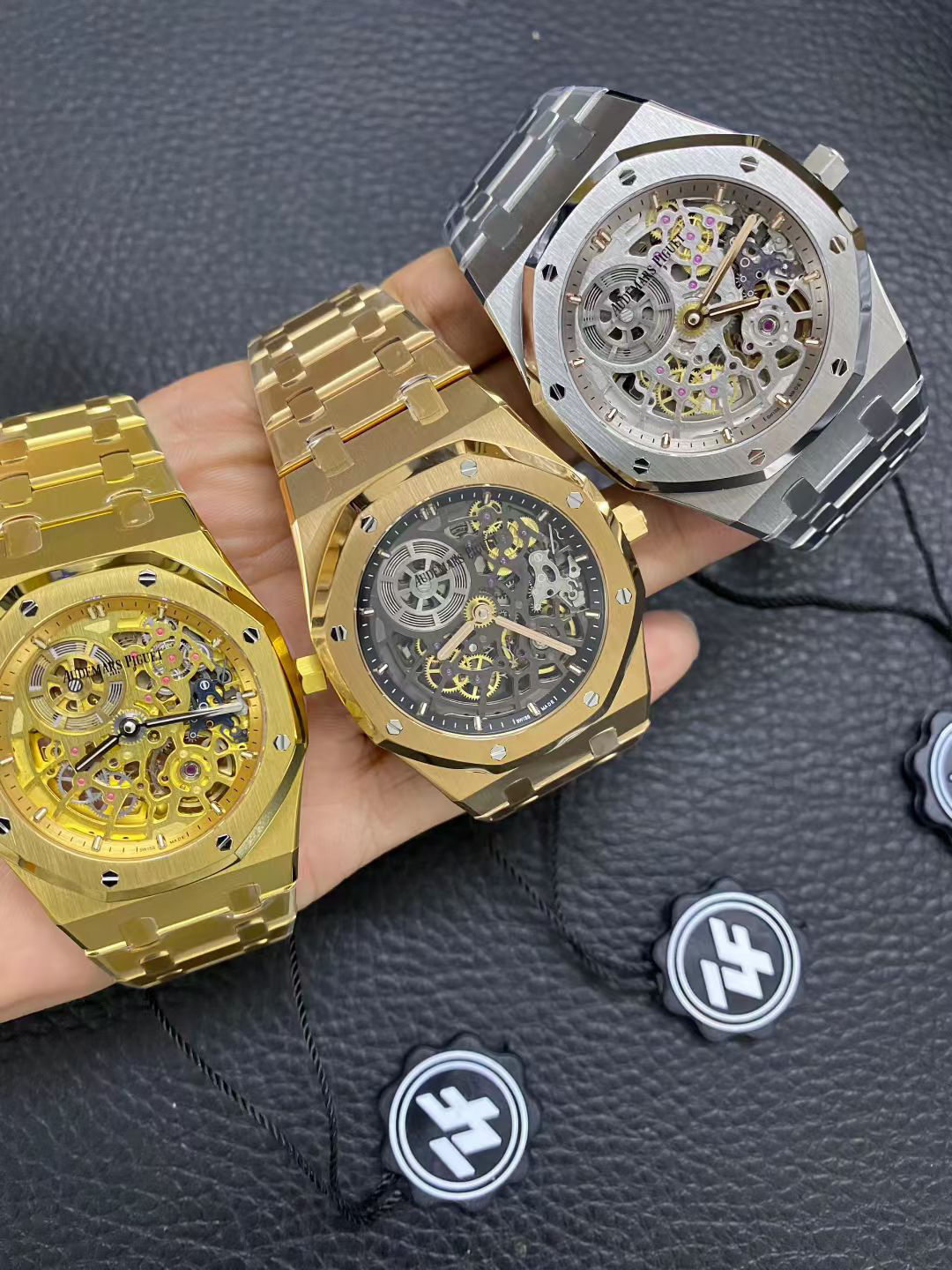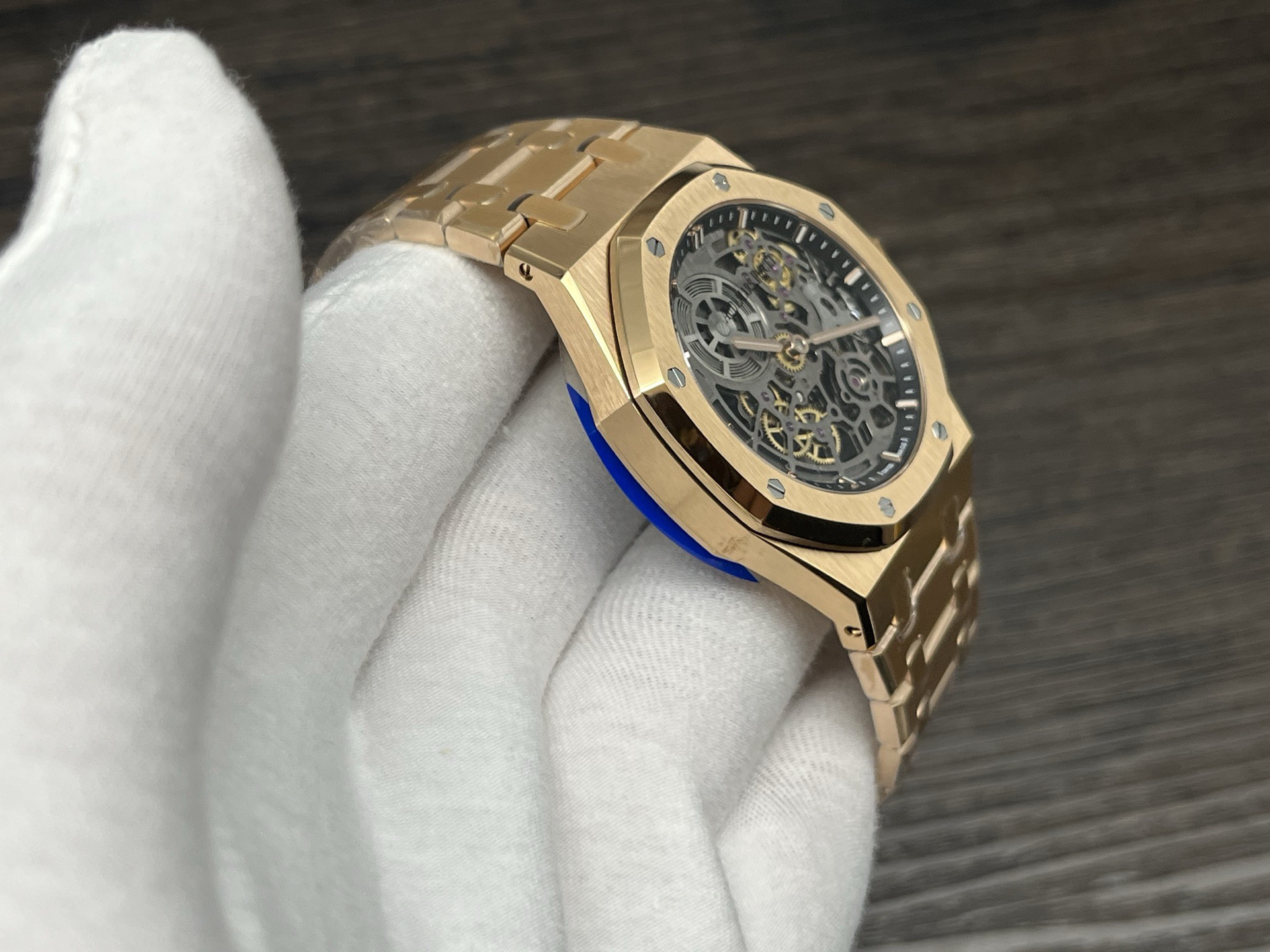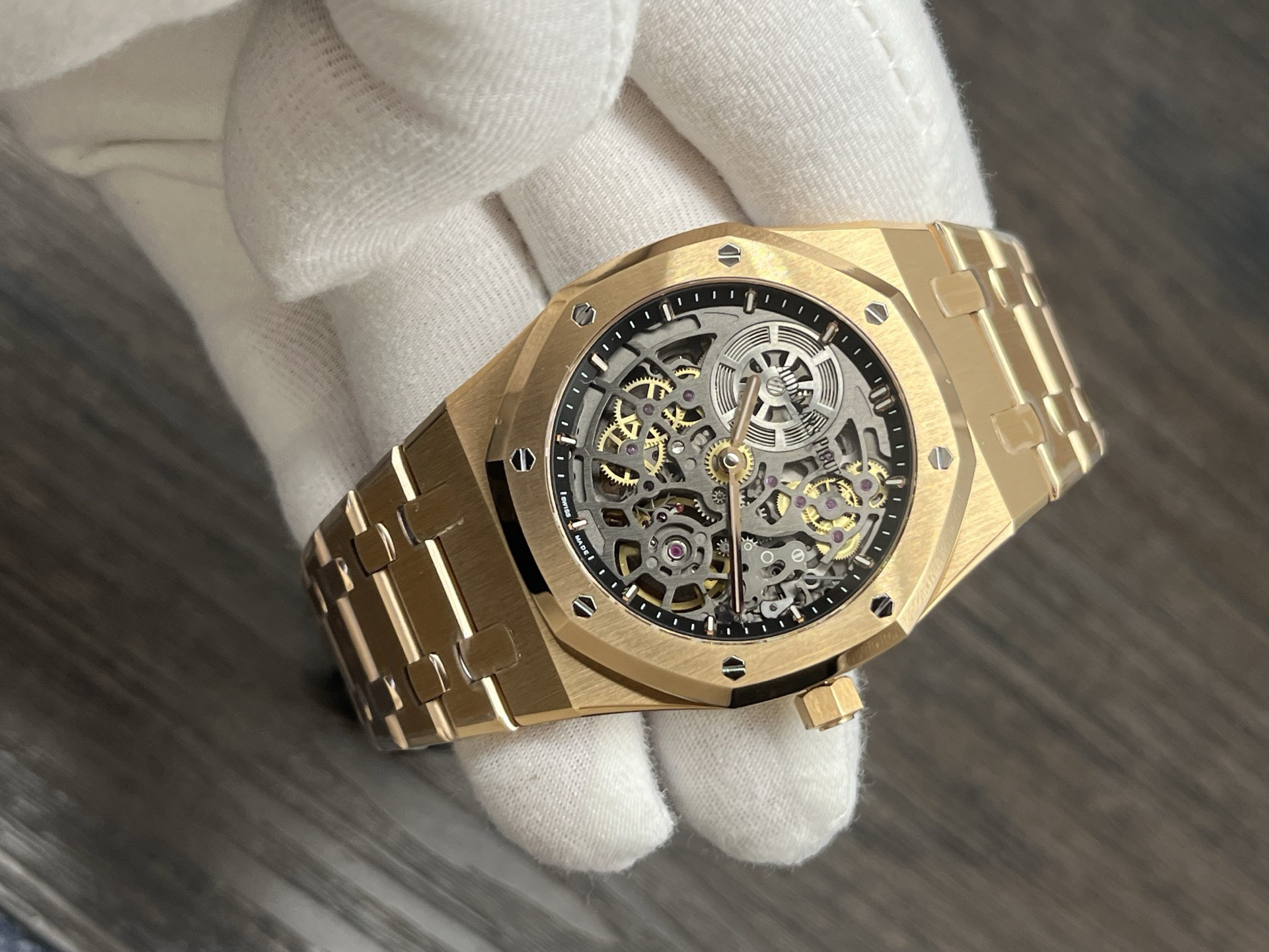 The highly recognizable octagonal 39MM case adopts advanced CNC machining technology to preliminarily cut and shape the stainless steel raw materials, and then uses exquisite wire drawing technology and forging surface polishing treatment to perfectly interweave on the case, presenting a unique luster and texture. The watch strap links are also produced through multiple complex polishing processes, making the surface of the links delicate, tightly connected, and flexible. Ensure comfort and fit when wearing. The AP logo on the watch buckle is finely carved, with clear lines and a three-dimensional steel structure. On the side of the case, the lugs naturally connect with the strap, creating a smooth transition and showcasing a harmonious beauty that is seamlessly integrated!