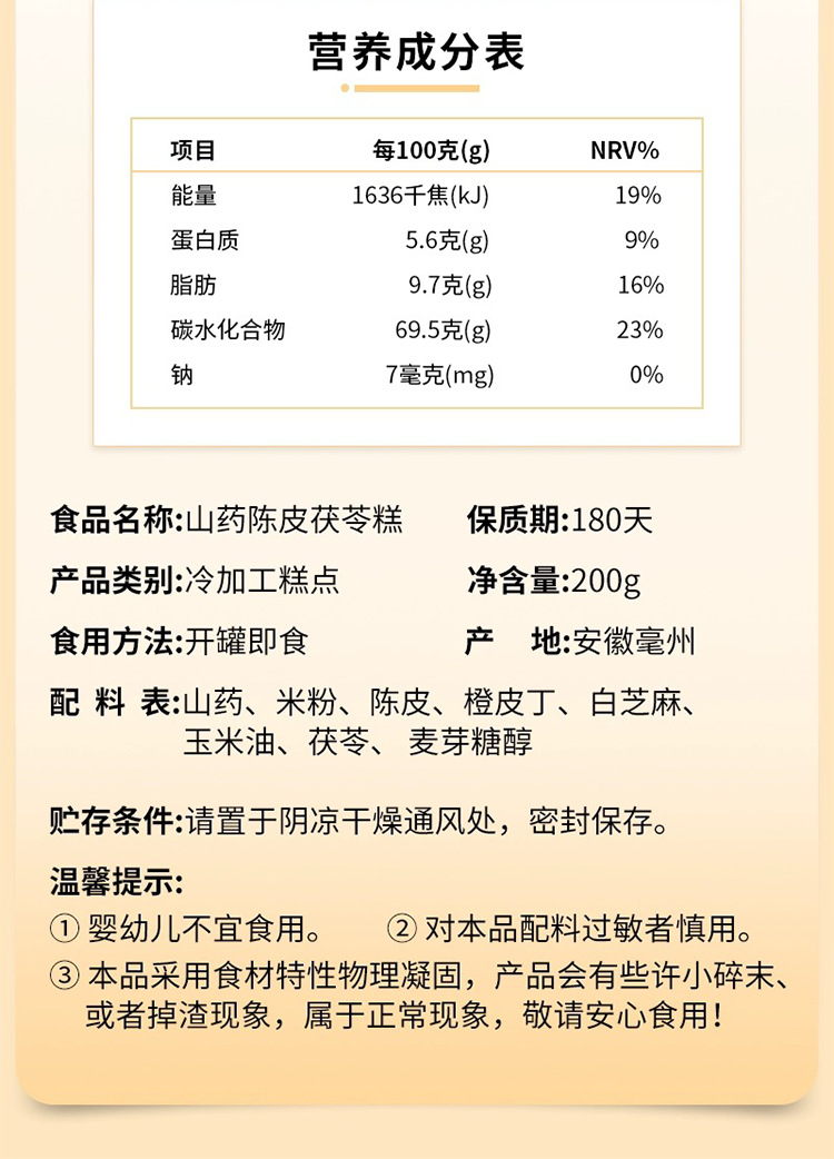【”湿“无踪❗️山药陈皮茯苓糕】甄选品质原料制作,优选铁棍山药/江苏米粉/广东5年陈皮/江西橙皮丁/河南白芝麻/安徽茯苓,美味健康无负担,下午茶休闲小吃零食L