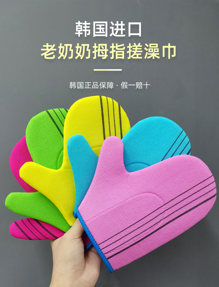 【中欧班列精选5个】韩国老奶奶大拇指澡巾 原装进口搓背神器沐浴手套
