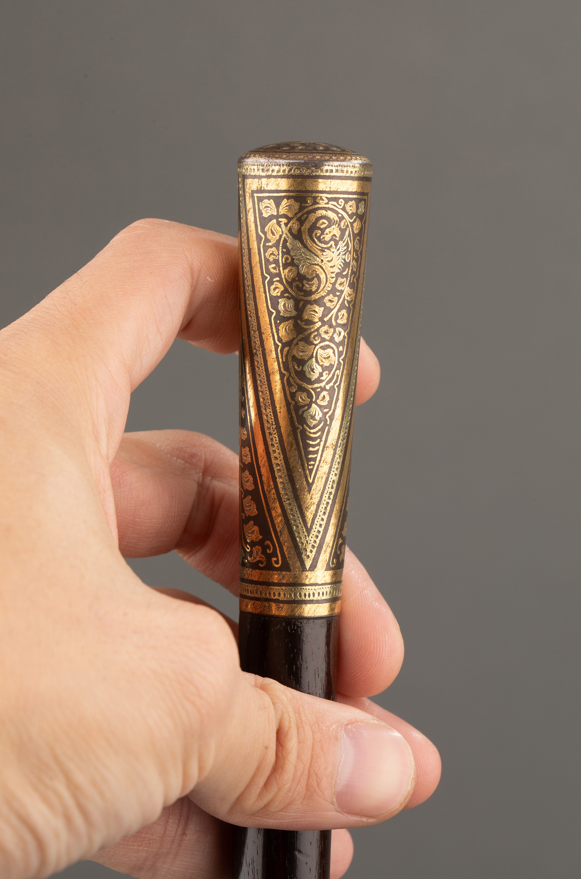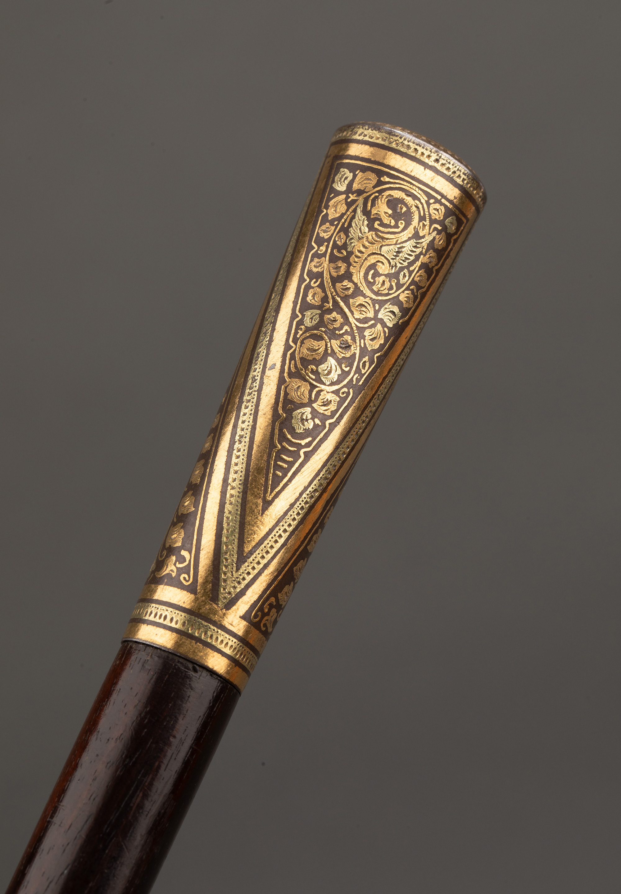 1880-1910维多利亚时代西班牙出品托莱多钢黄金硬木手杖