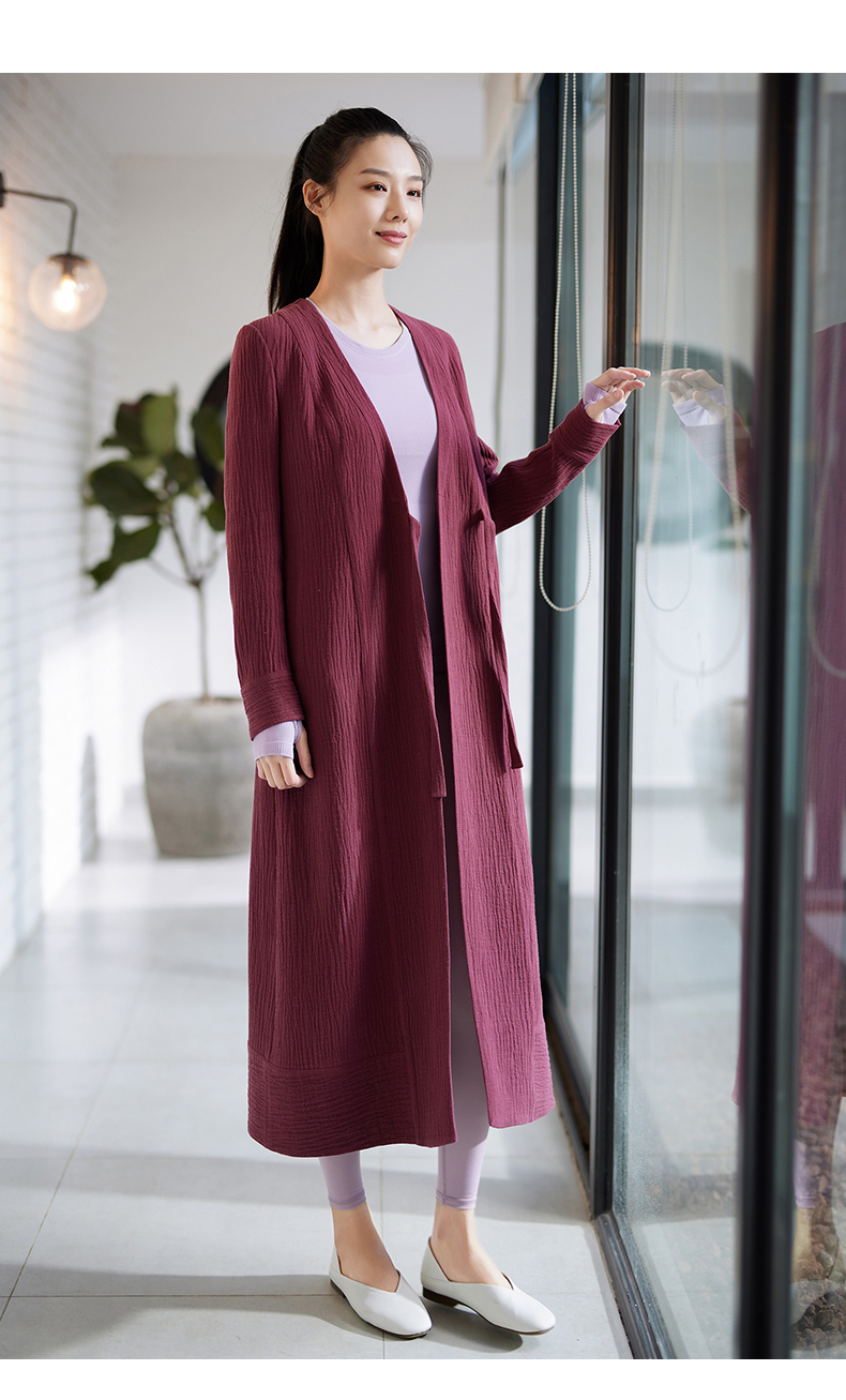 【特卖不退换】FM08386禅意长麻厚长款瑜伽外套休闲上衣(不含胸垫)