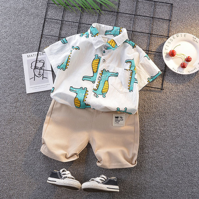 男童夏装套装2021 新款小童男宝宝时尚短袖条纹polo衫两件套潮