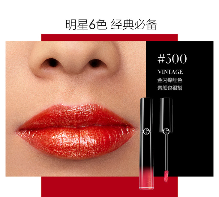 法国原装进口 阿玛尼 漆光迷情唇釉 黑管唇釉500#