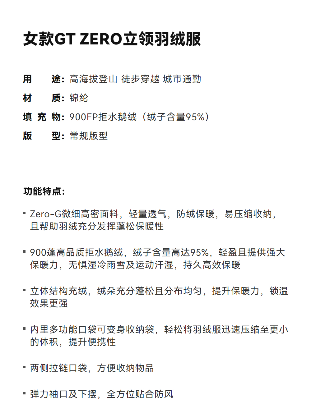 KAILAS凯乐石 户外运动 女款GT ZERO立领羽绒服 KG2443239