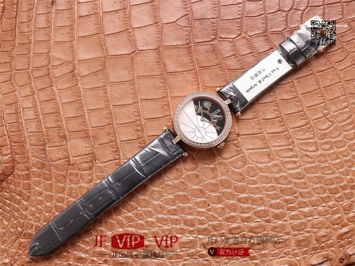 JW梵克雅宝诗意复杂功能系列(巴黎的一天),字面A盘由缟玛瑙跟CNC雕刻铜人打造,机械机芯,女士腕表,皮表带,自动机械机 商品图9