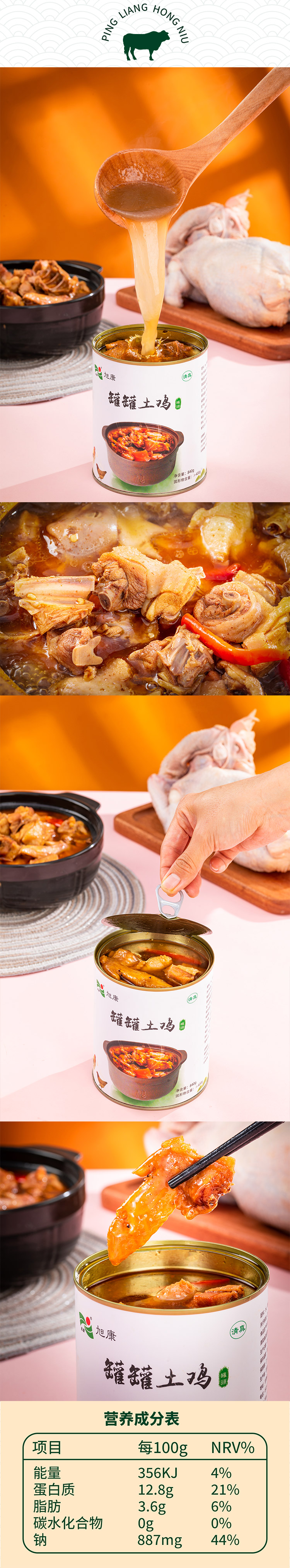 【平凉红牛泾川馆】旭康牛农家土鸡熟食罐头840g包邮