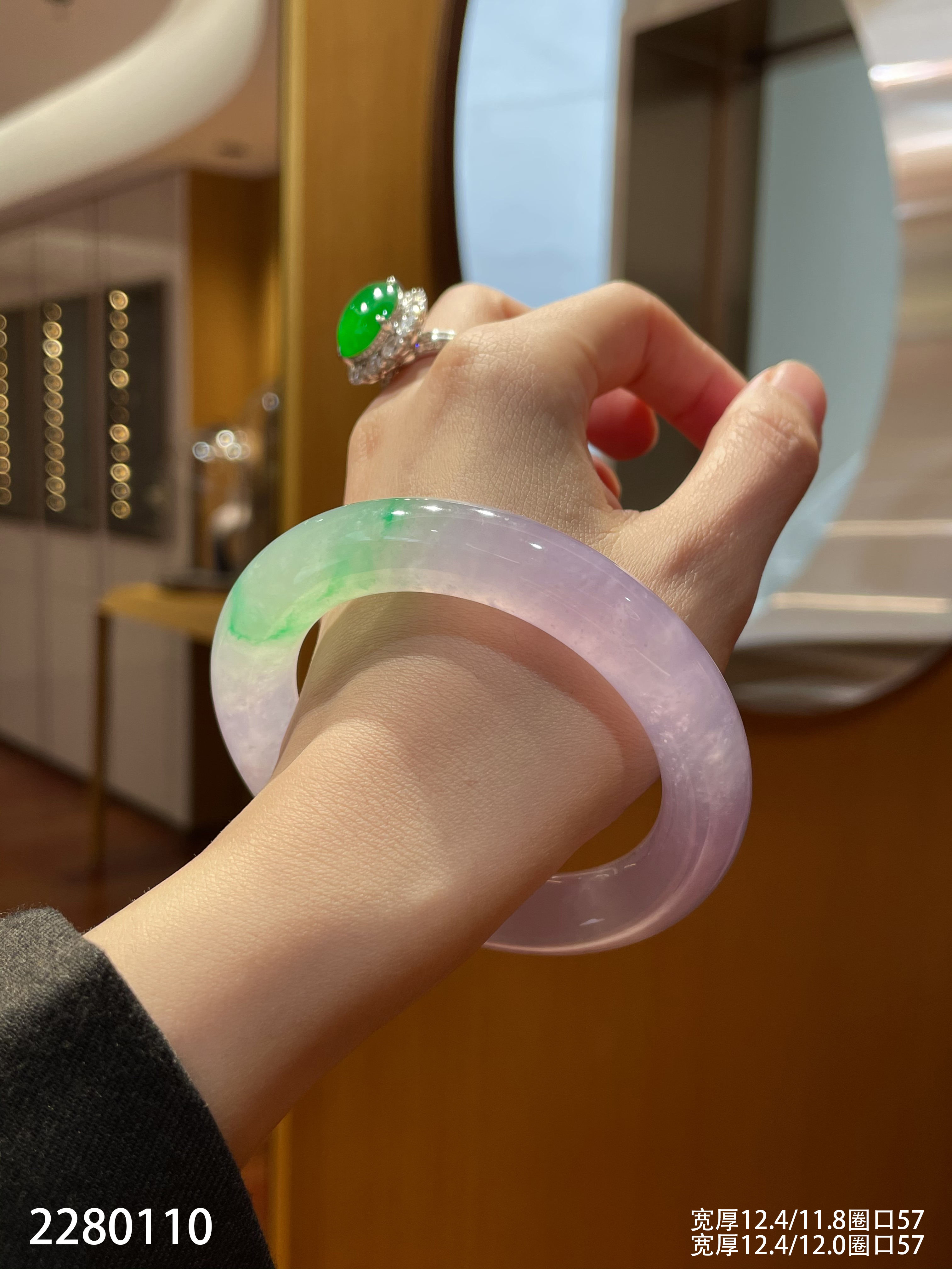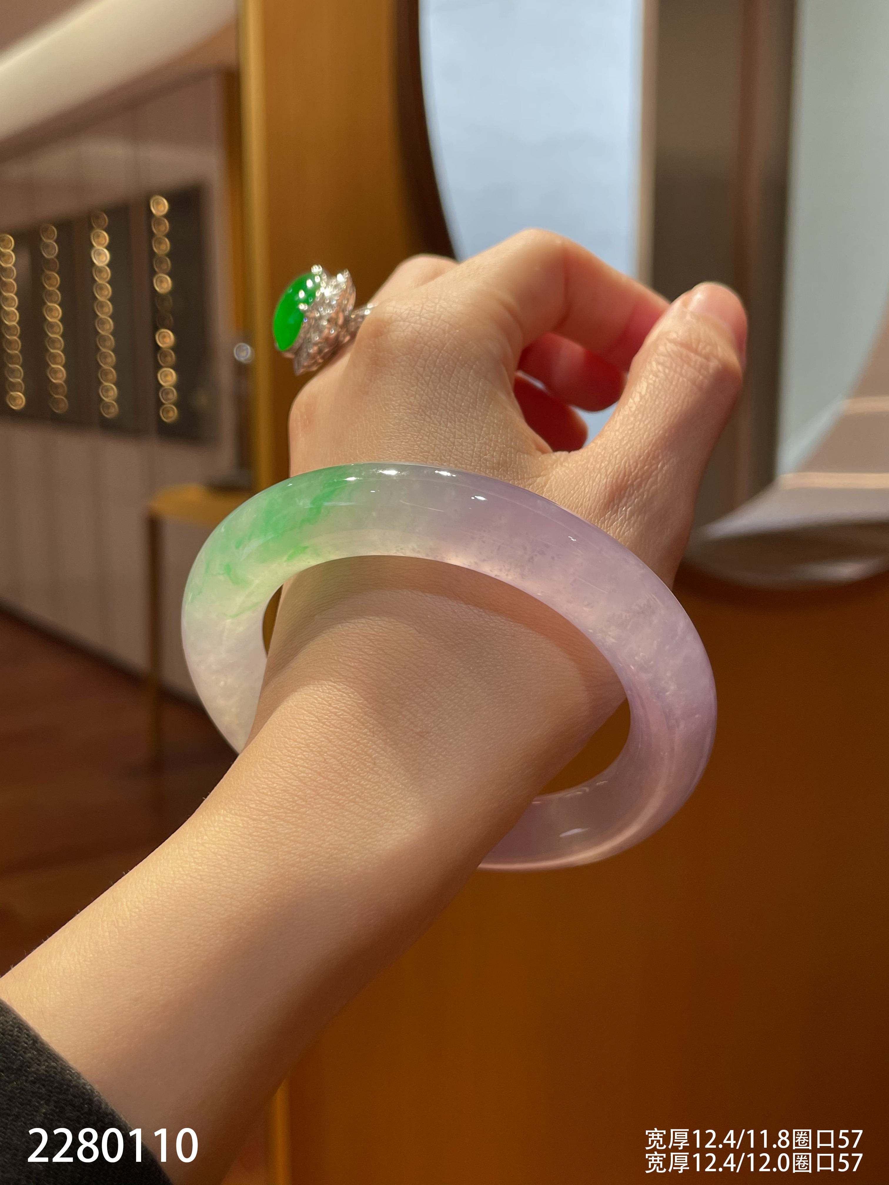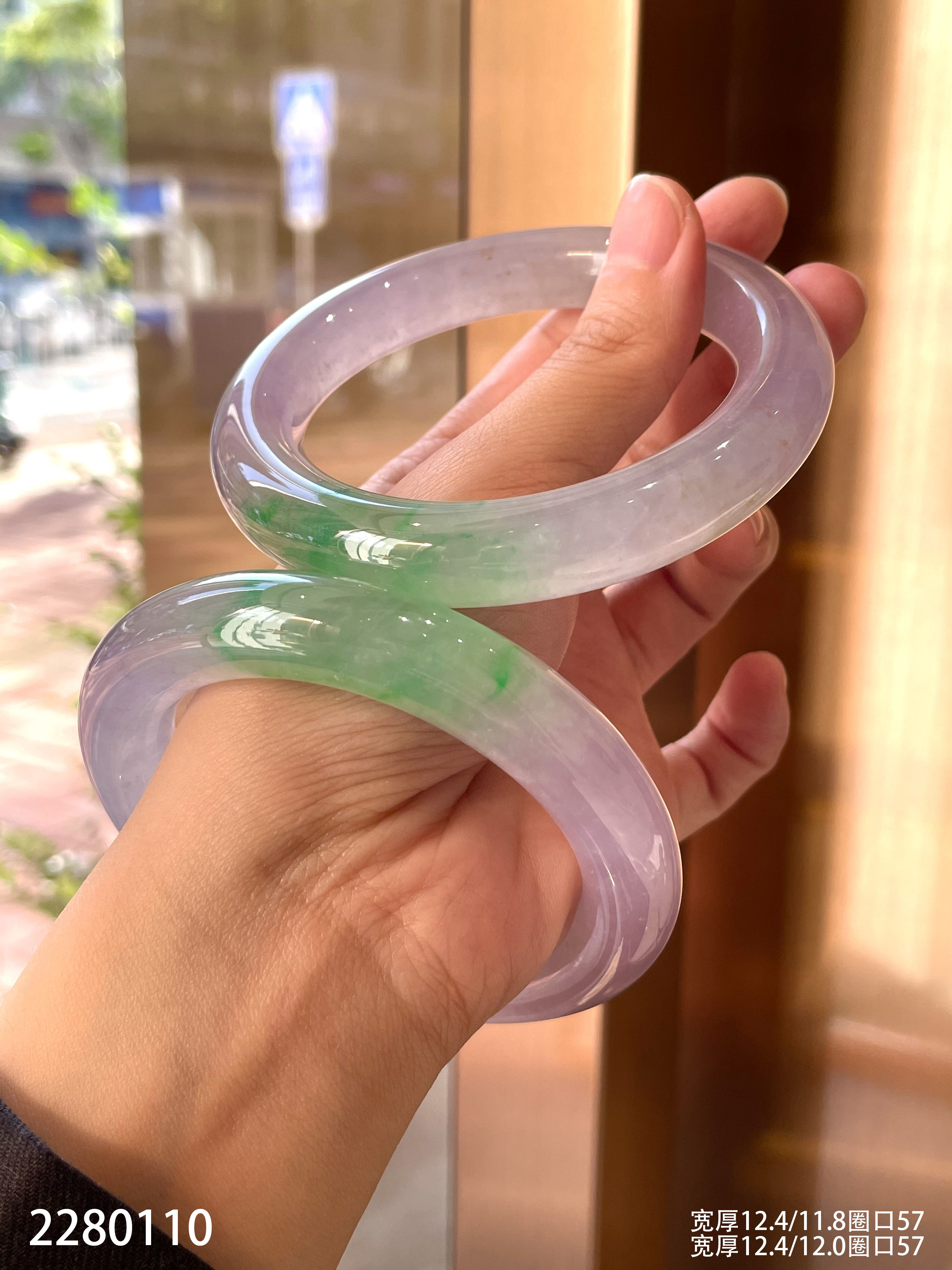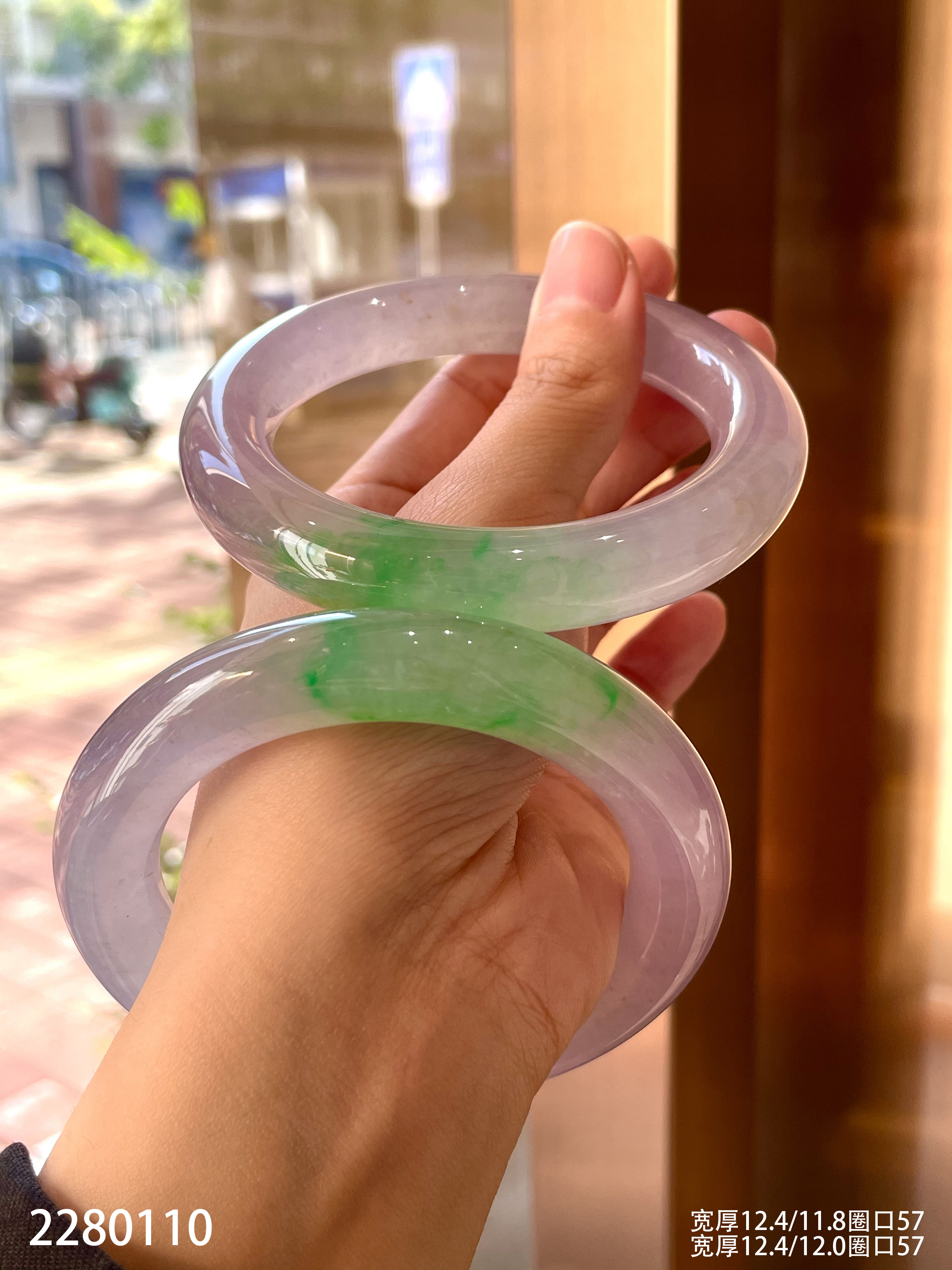 高冰木纳春带彩手镯一对【2280110】圈口57~具体价格微信咨询