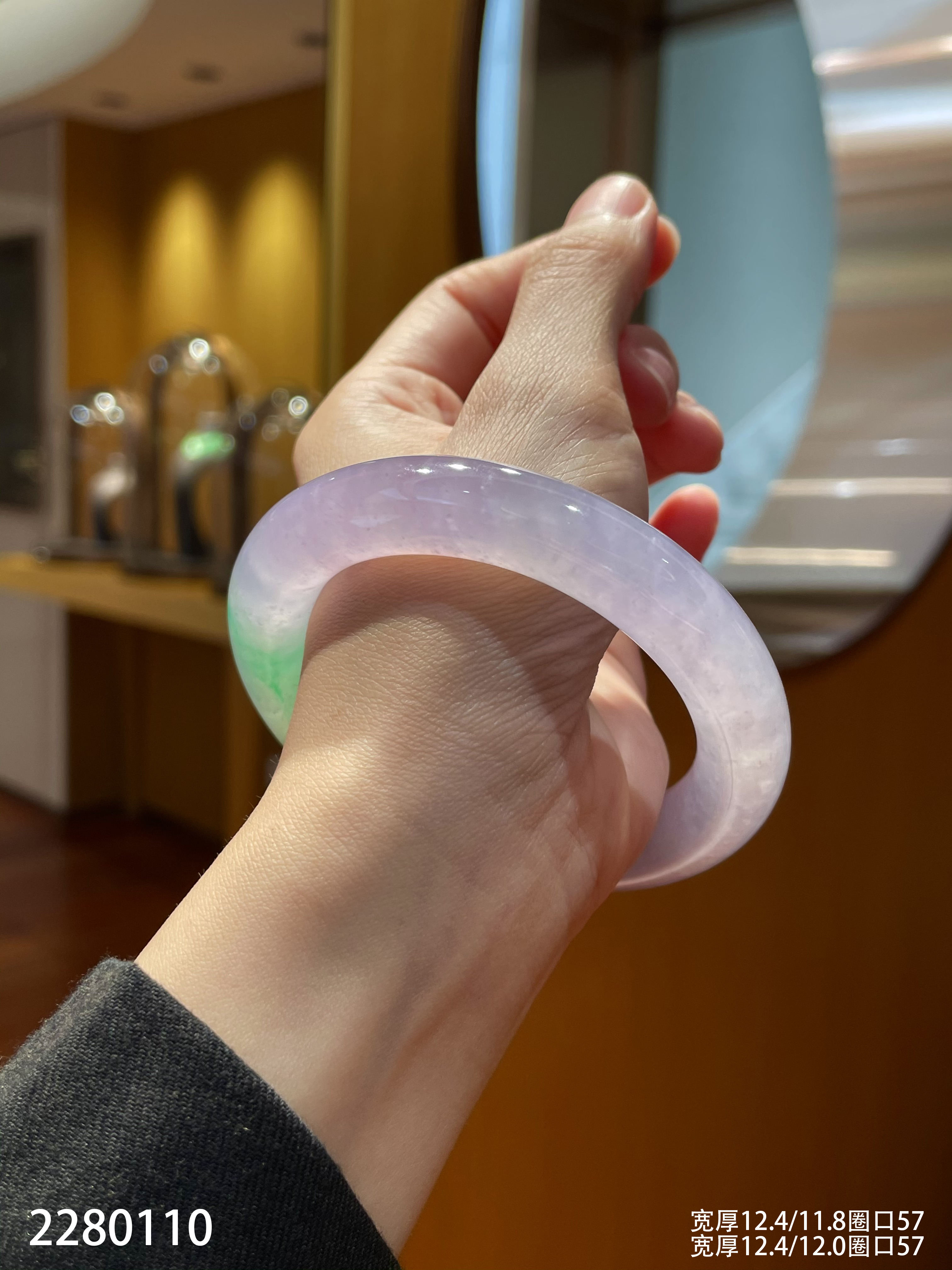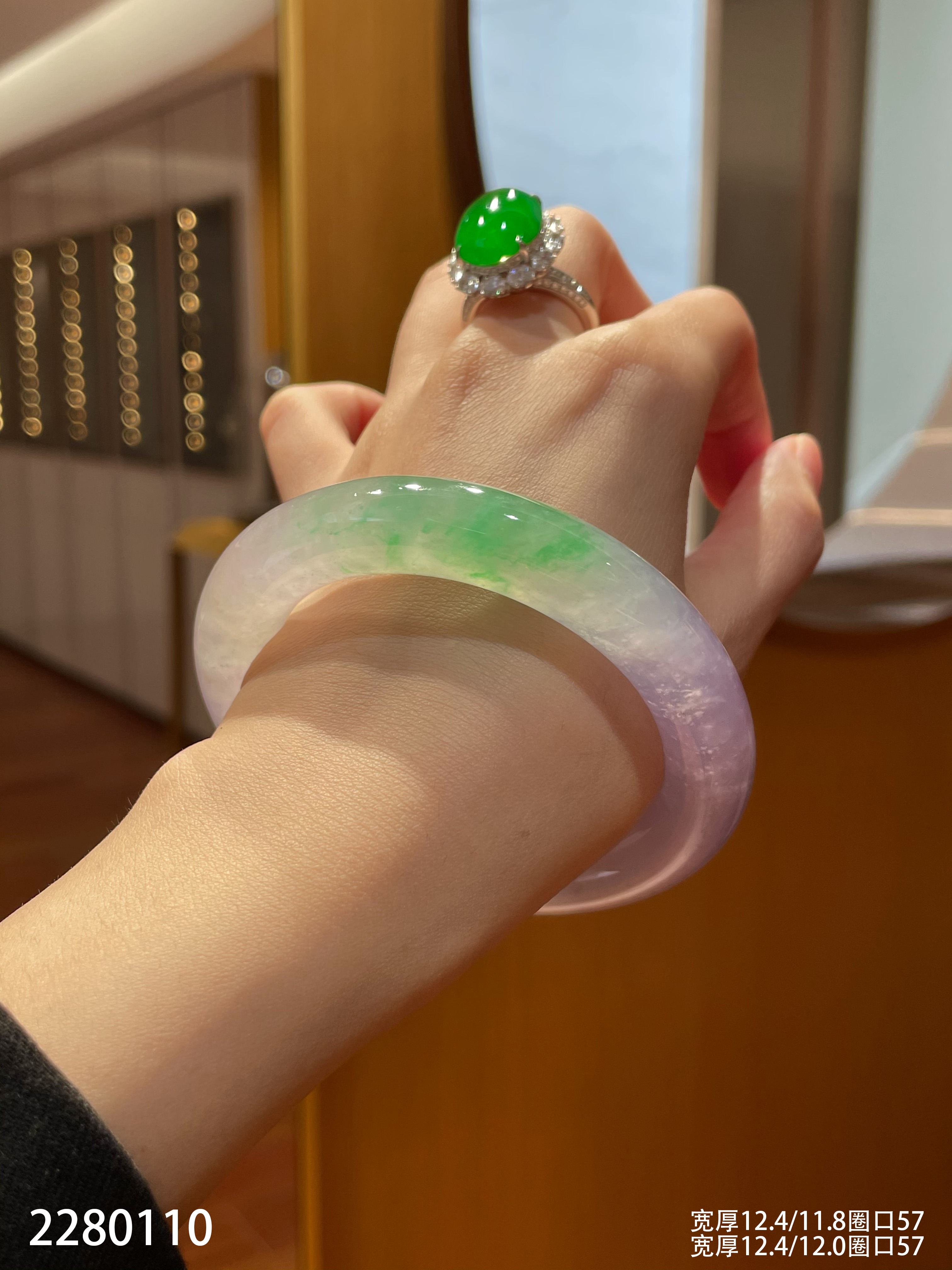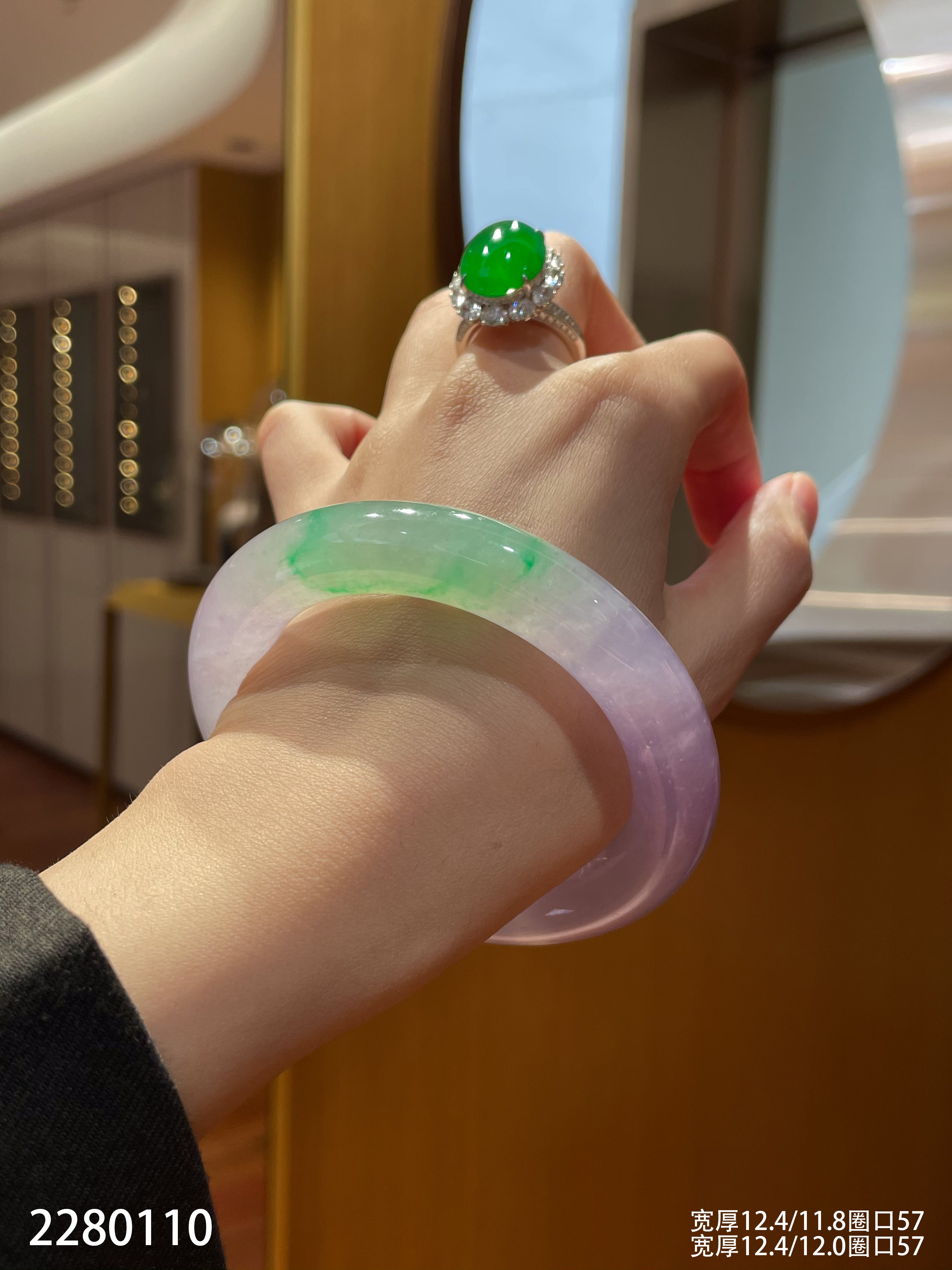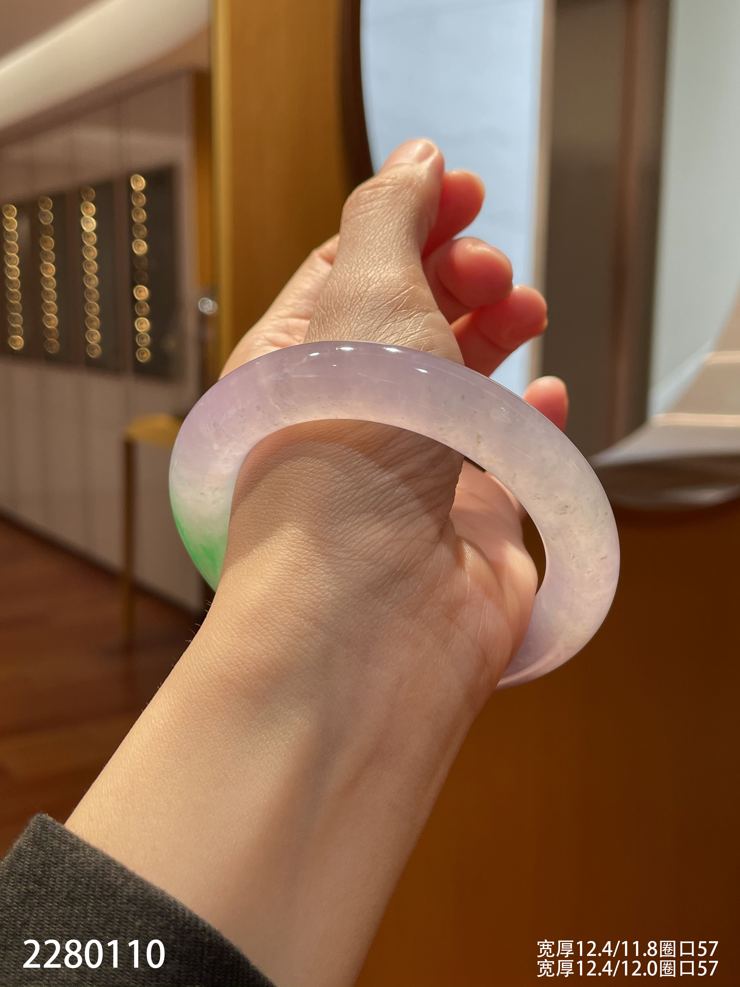 高冰木纳春带彩手镯一对【2280110】圈口57~具体价格微信咨询