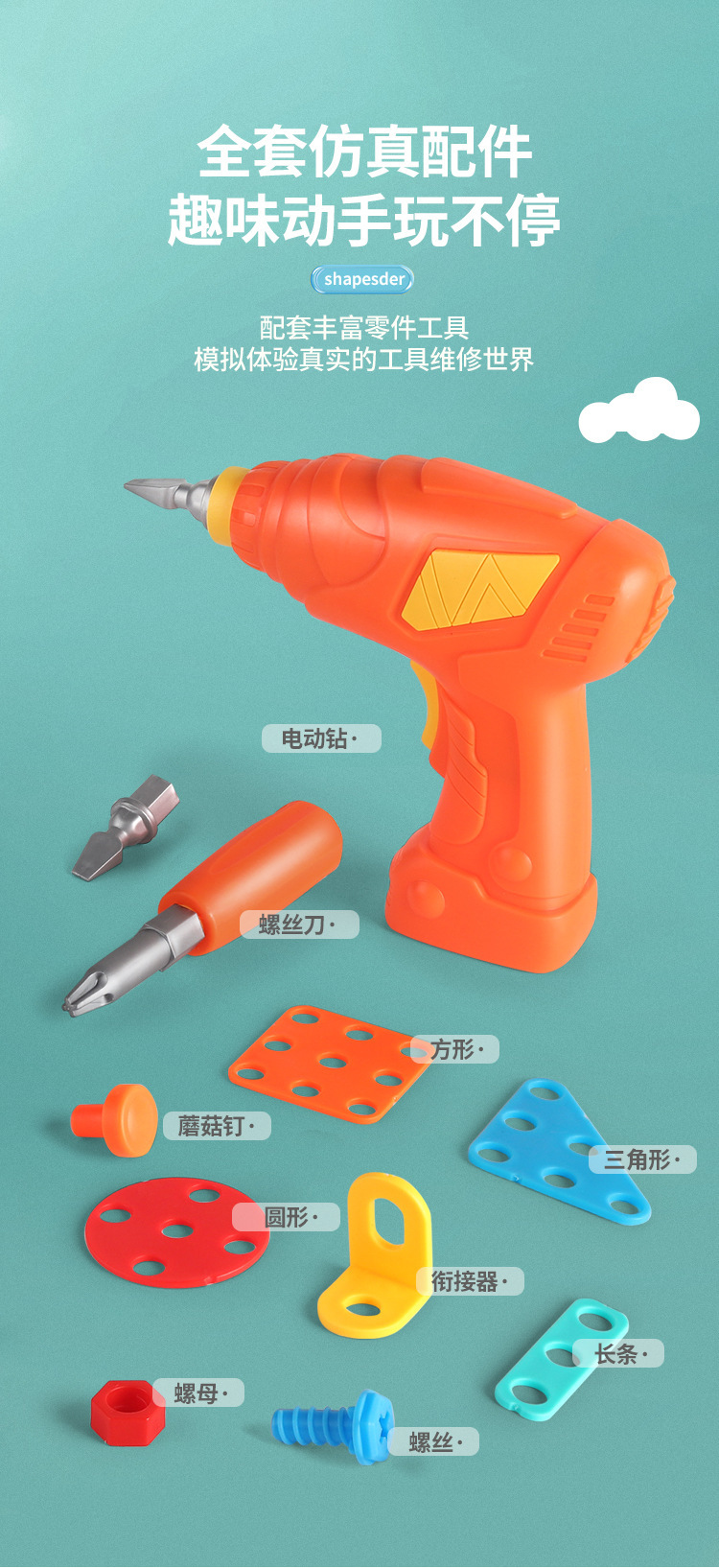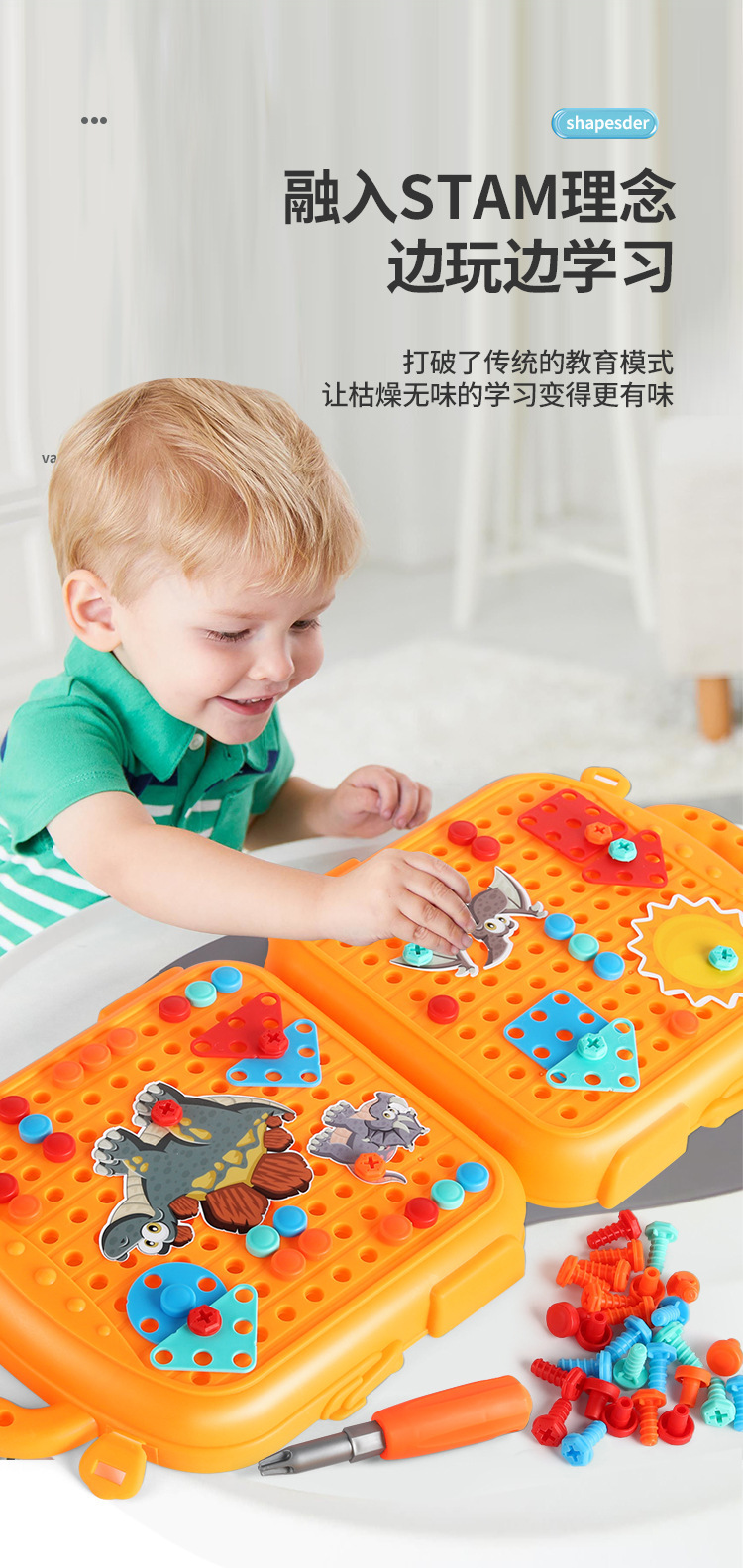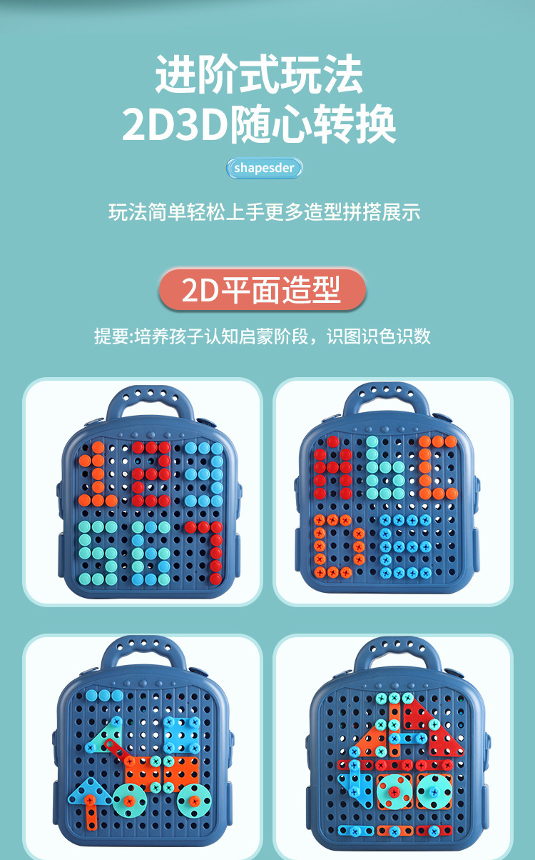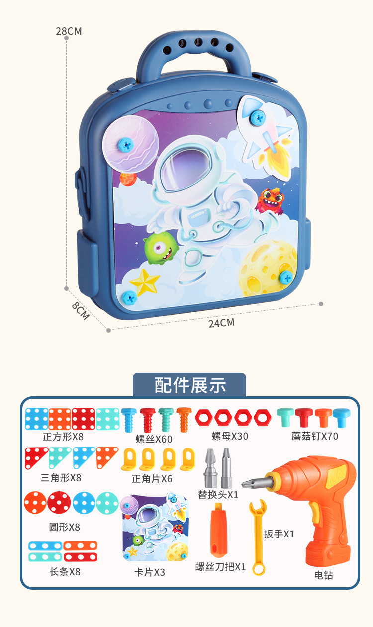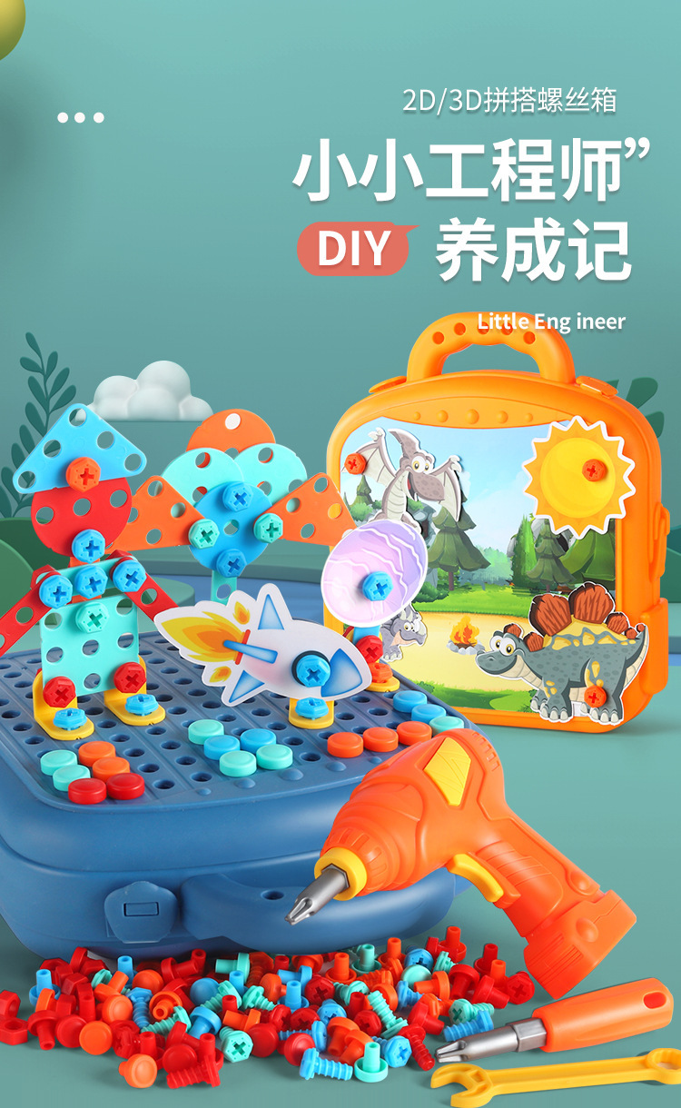 【赠收纳箱 双面可玩耍】儿童拧螺丝玩具益智拼装工具箱 电动打螺丝钉维修 儿童修理工具3D拼搭