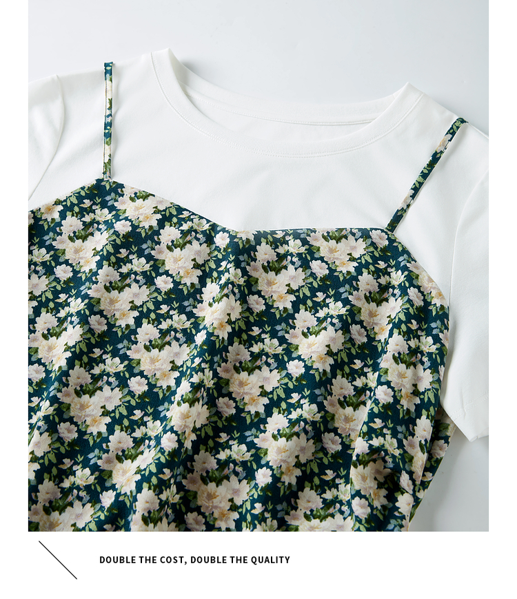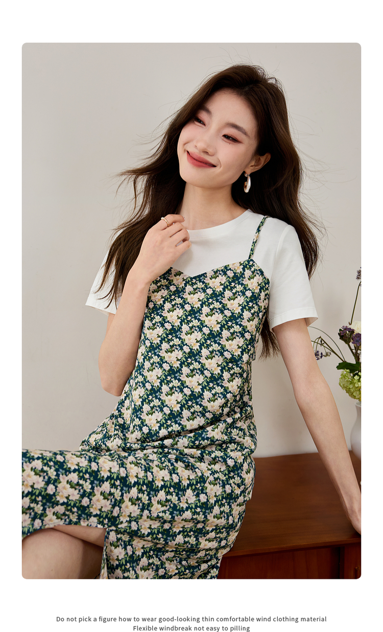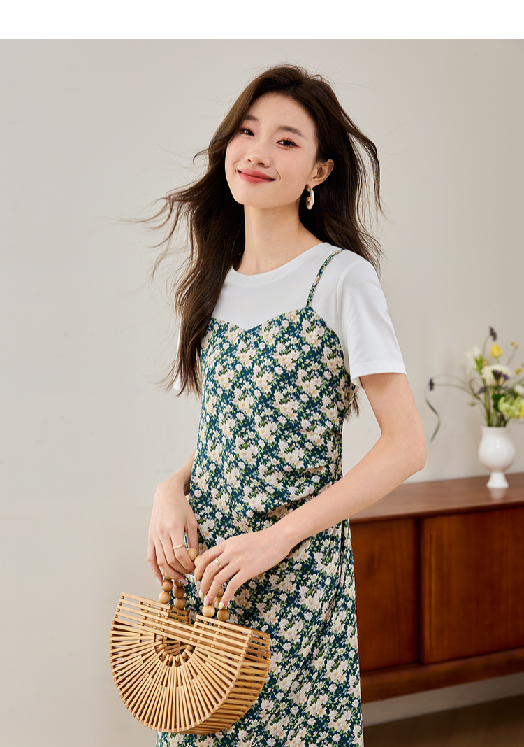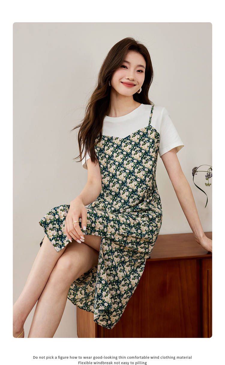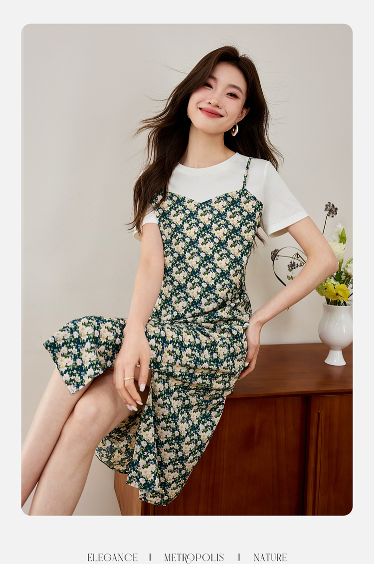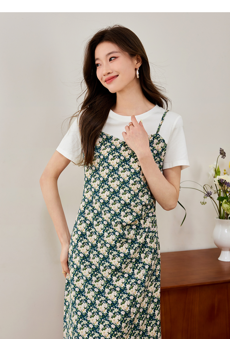 【专属特价】熙世界气质开叉碎花连衣裙2025夏天新款修身显瘦假两件吊带裙子
