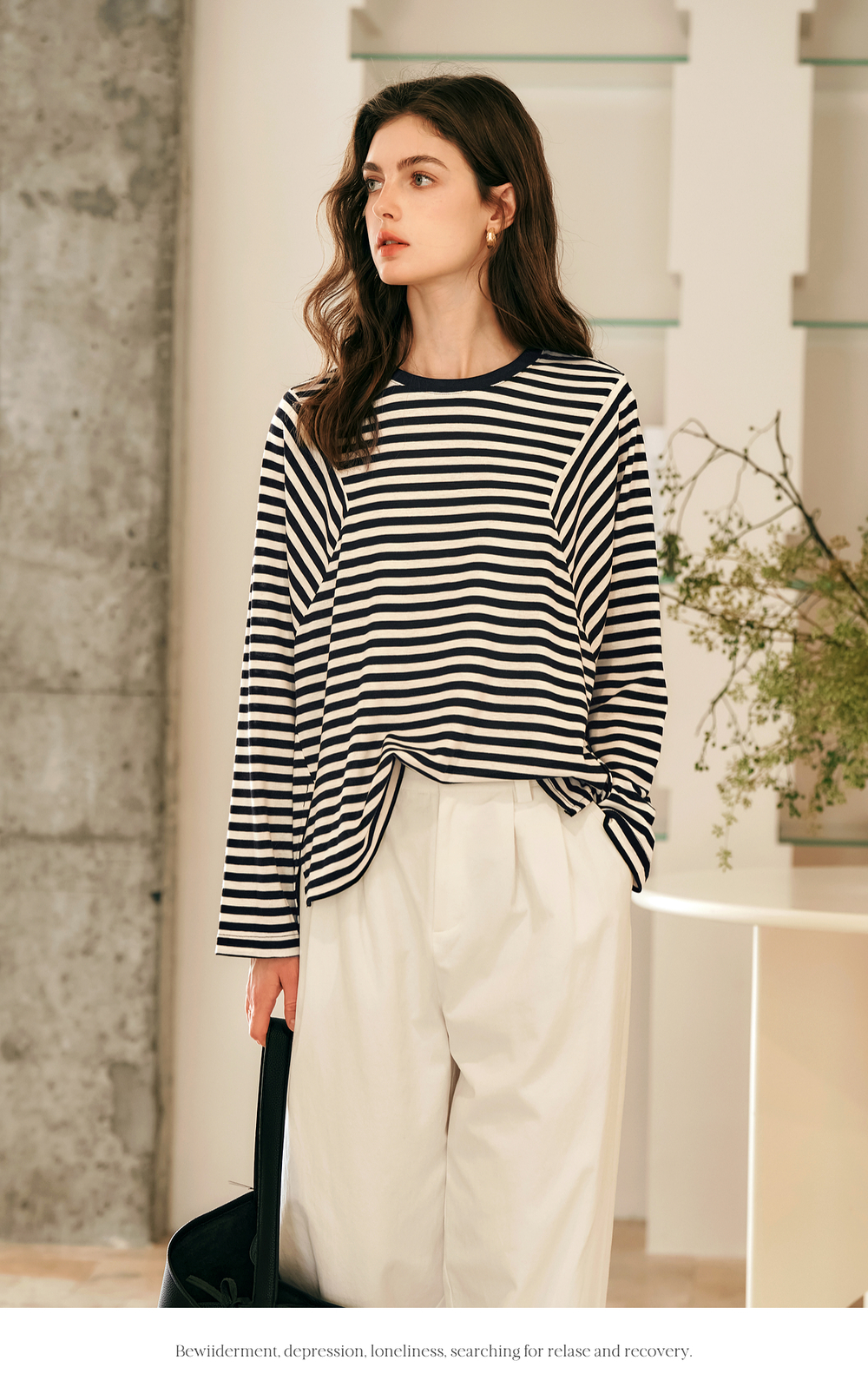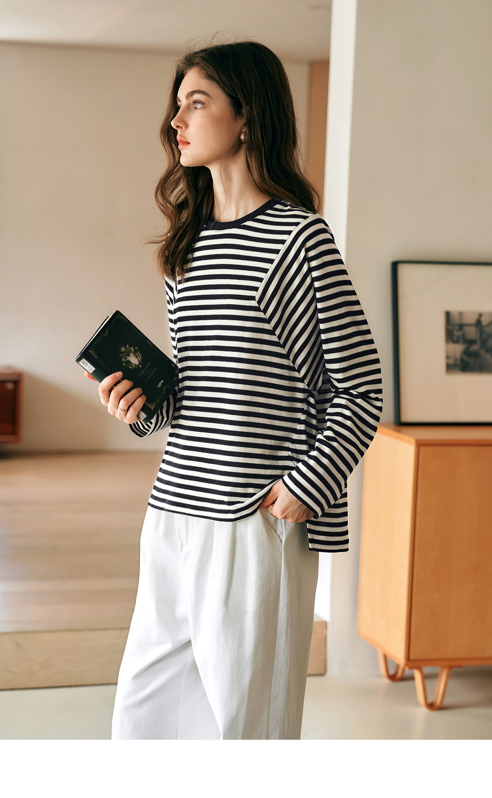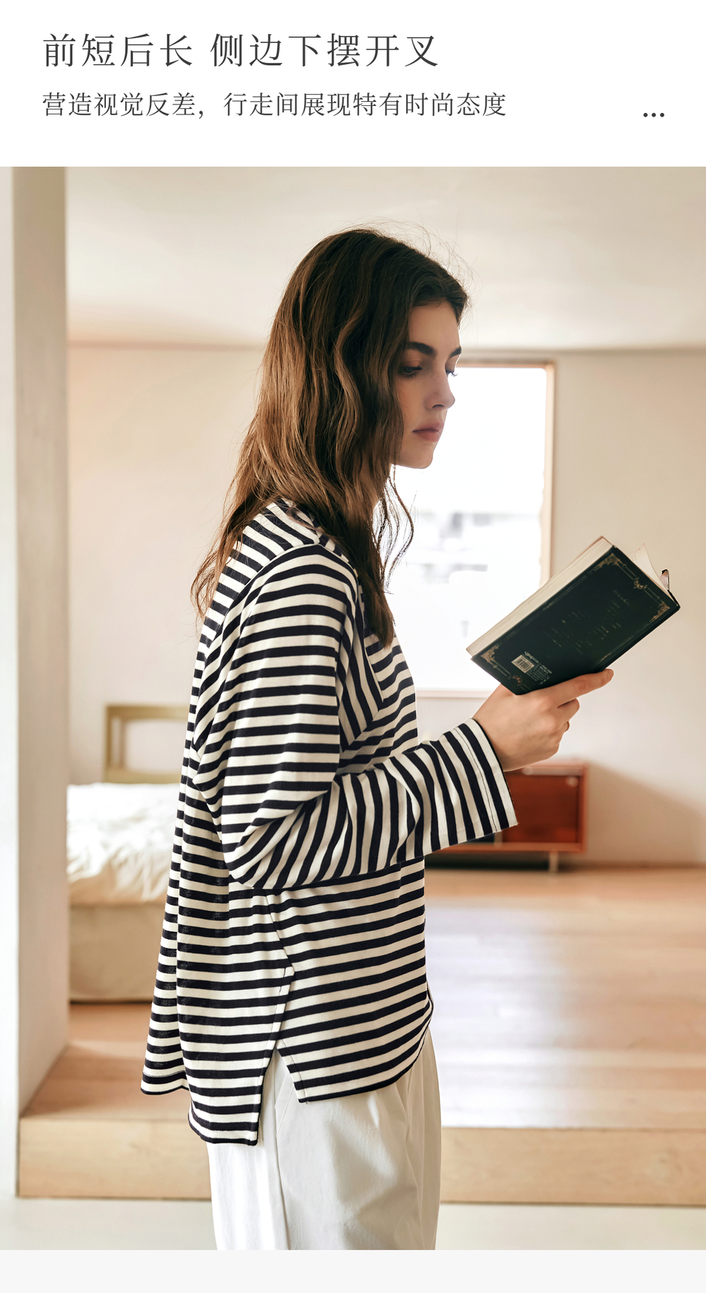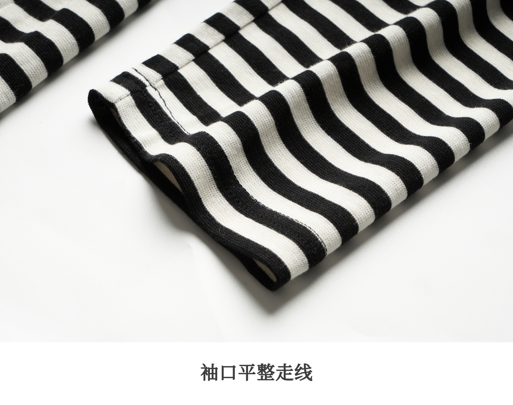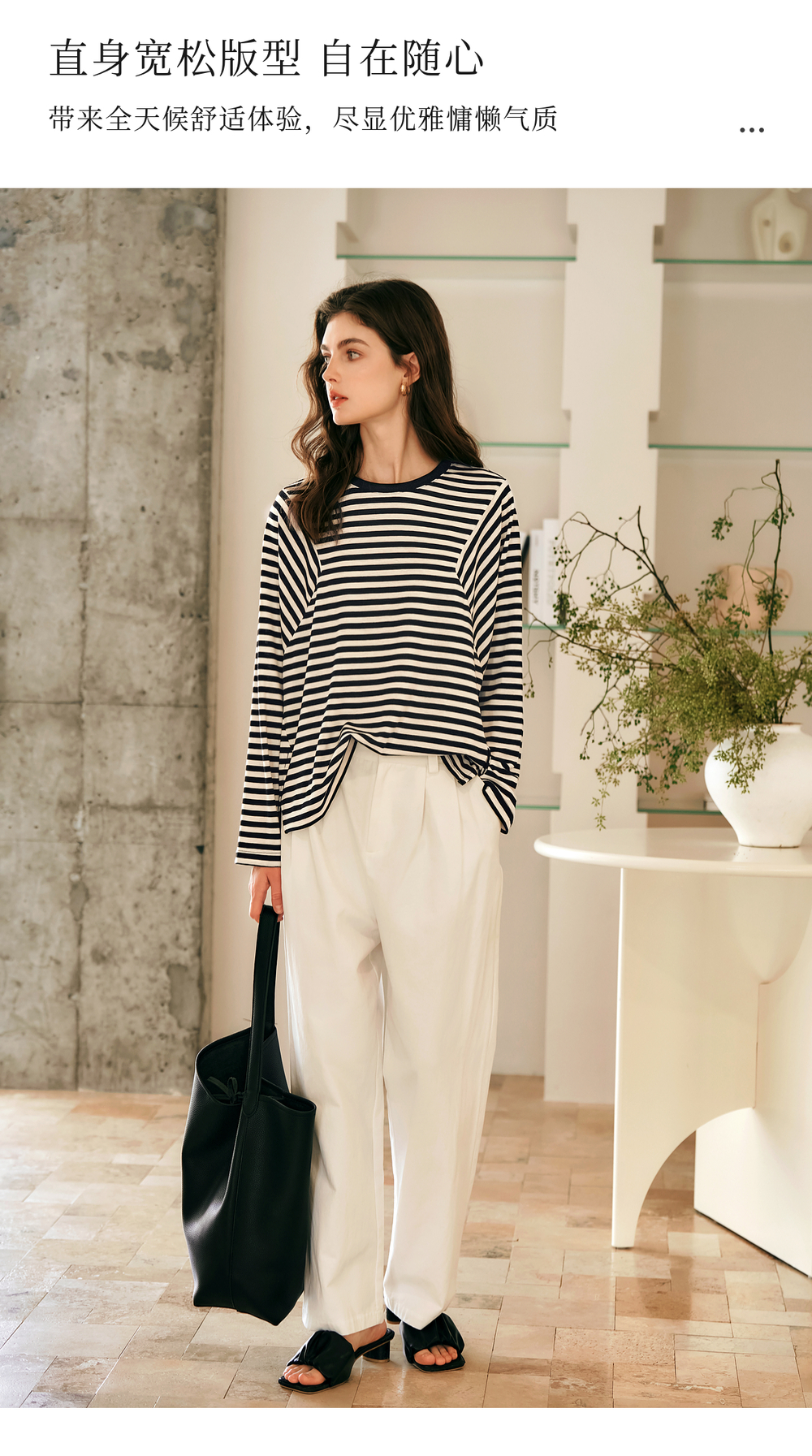OLrain欧芮儿黑白条纹T恤女冬季2024年新款百搭休闲长袖套头衫