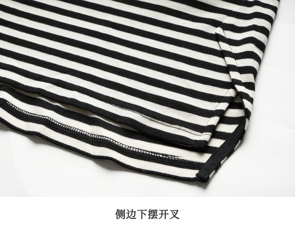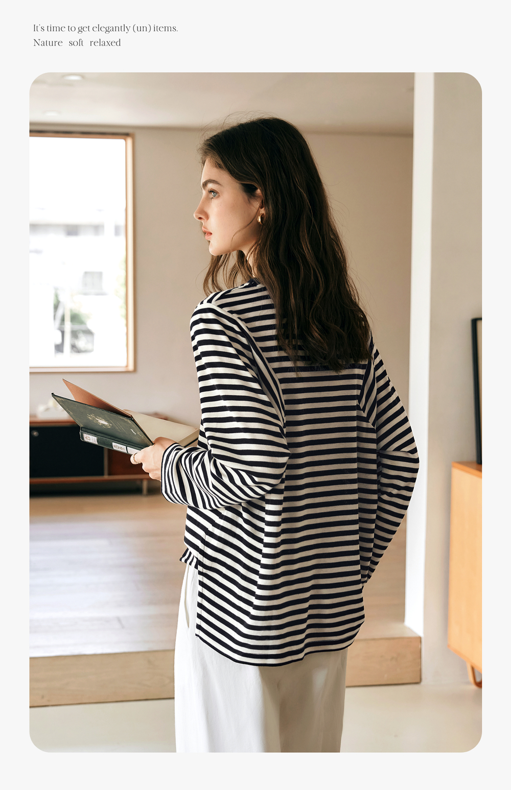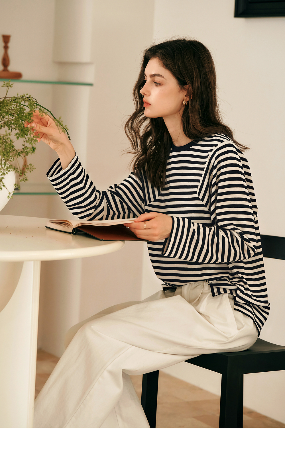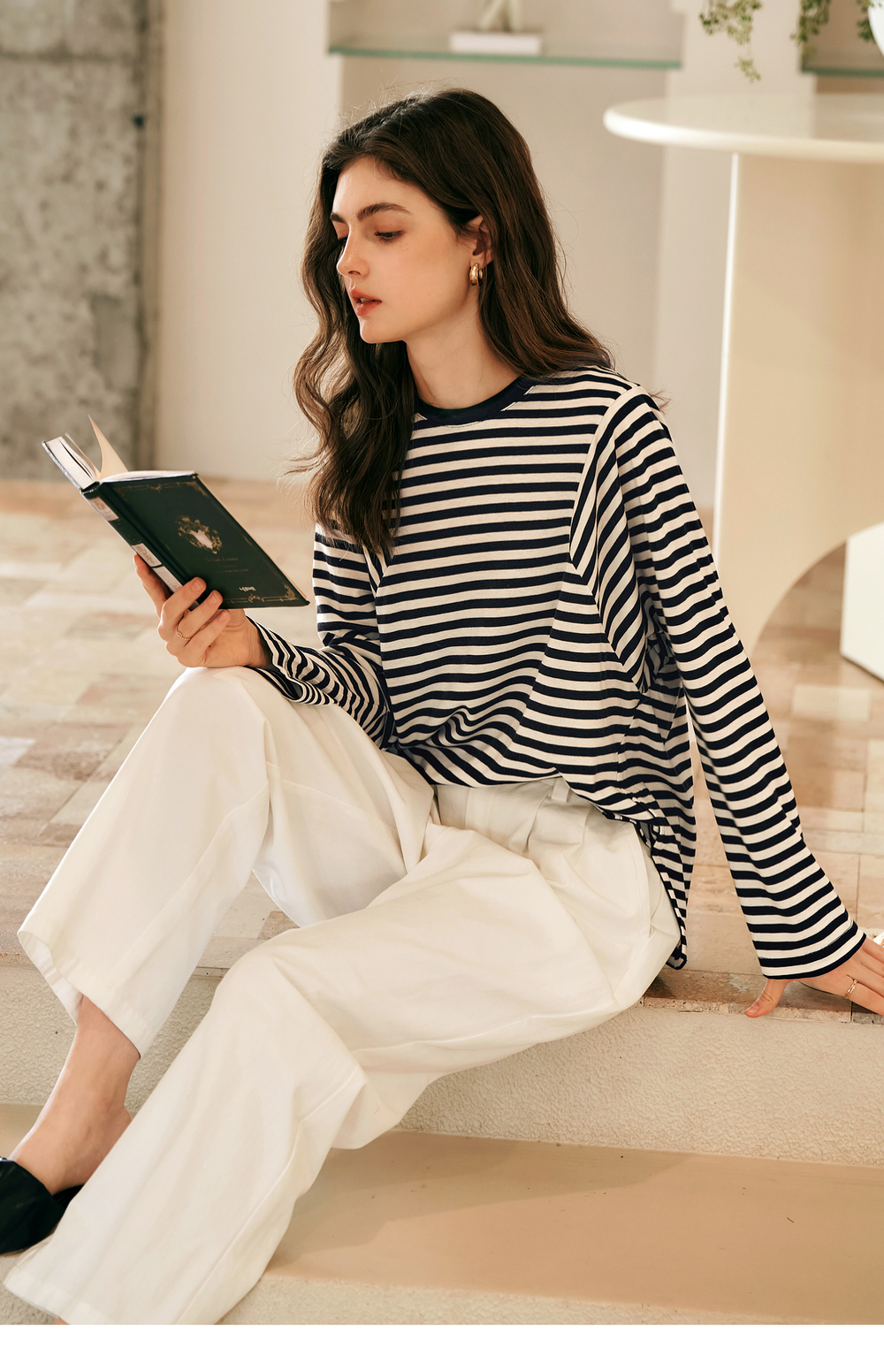 OLrain欧芮儿黑白条纹T恤女冬季2024年新款百搭休闲长袖套头衫