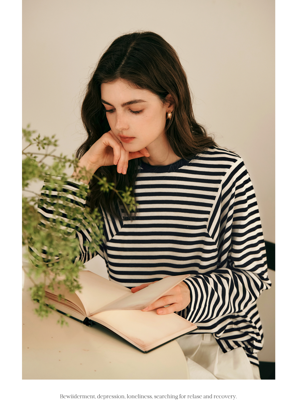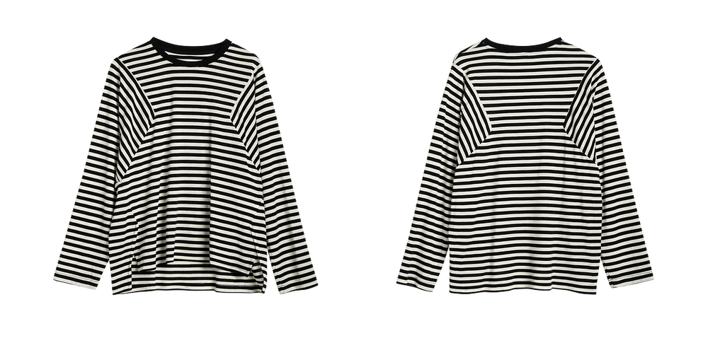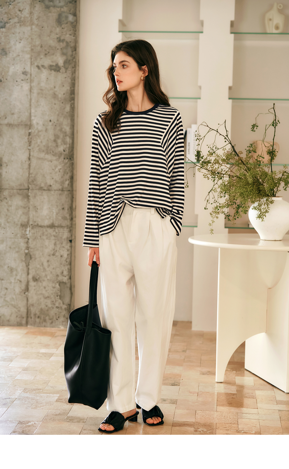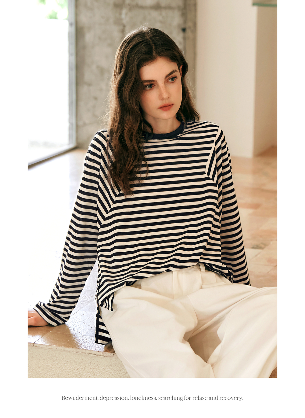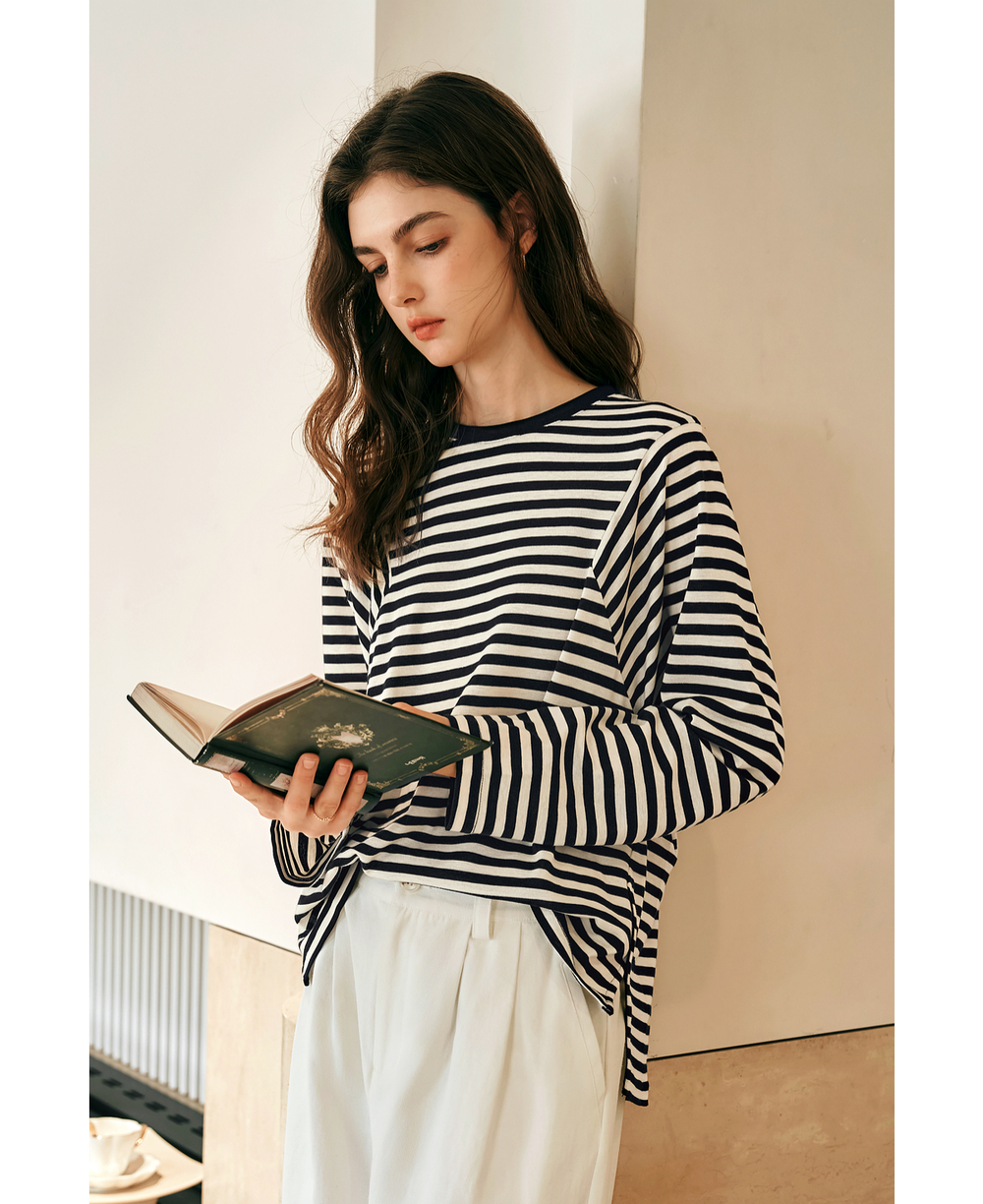 OLrain欧芮儿黑白条纹T恤女冬季2024年新款百搭休闲长袖套头衫