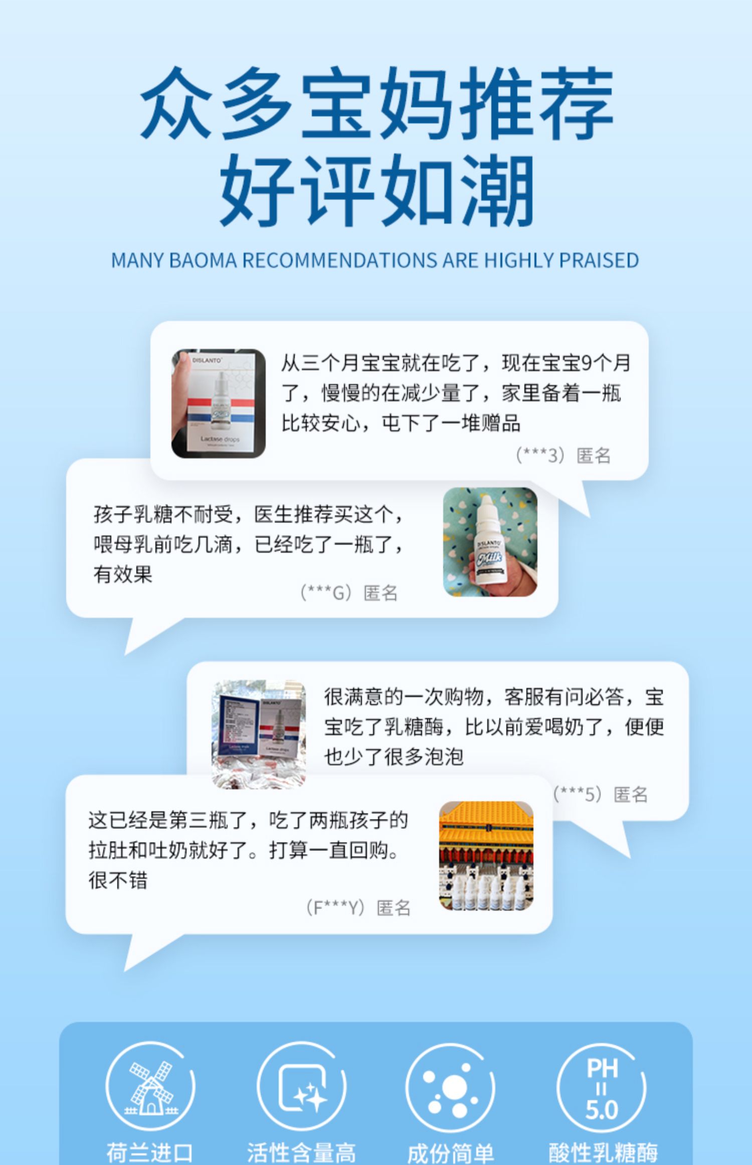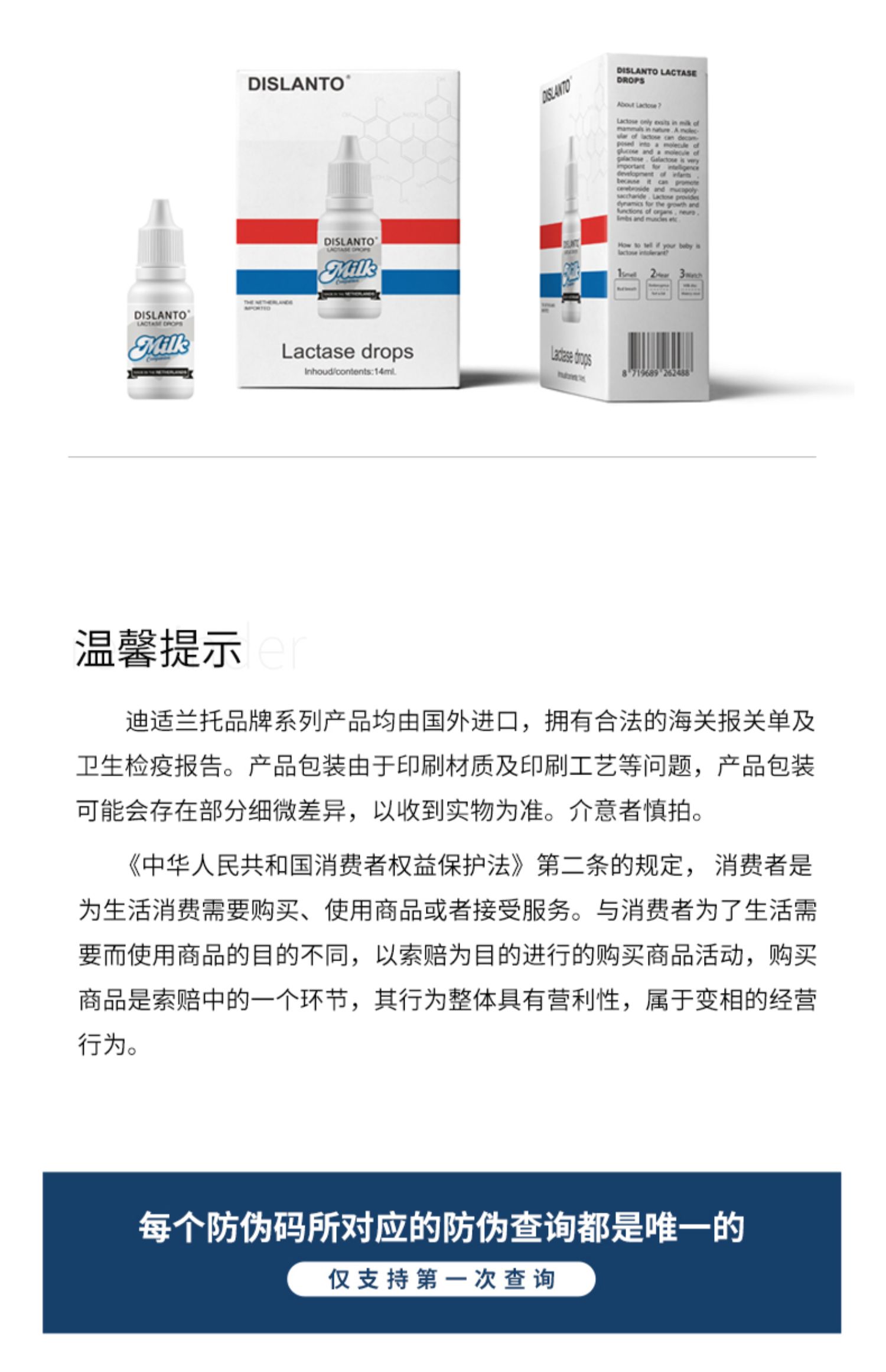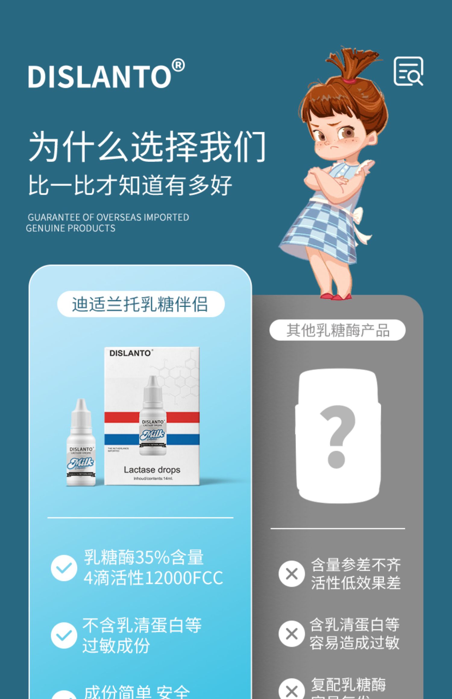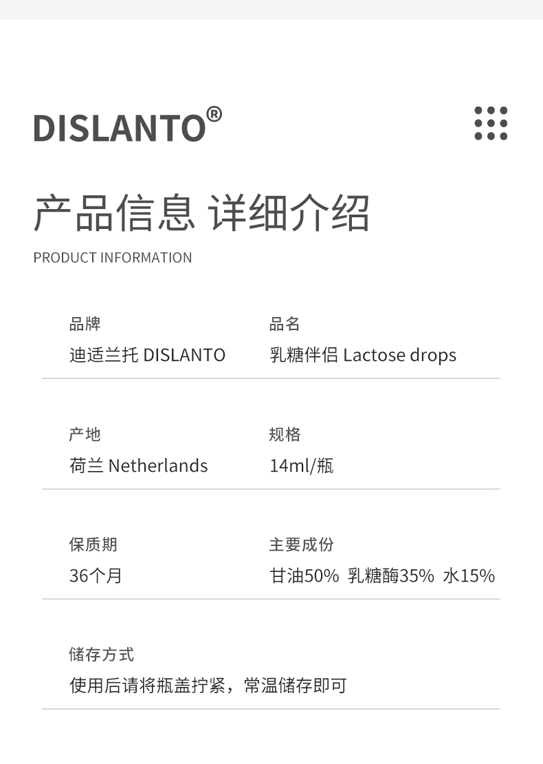 荷兰进口迪适兰托酸性乳糖酶婴儿滴剂宝宝新生儿乳糖不耐受14ml*2