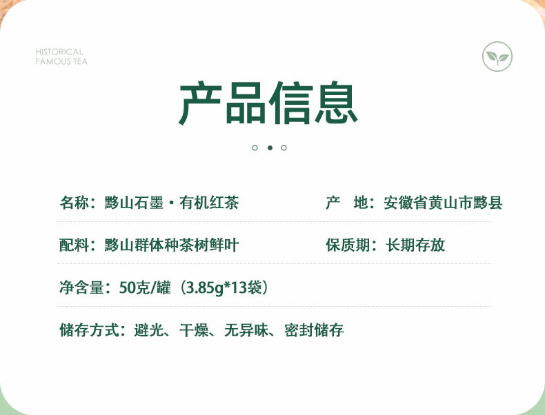 黟山石墨茶 有机石墨红茶3.85克*13=50克