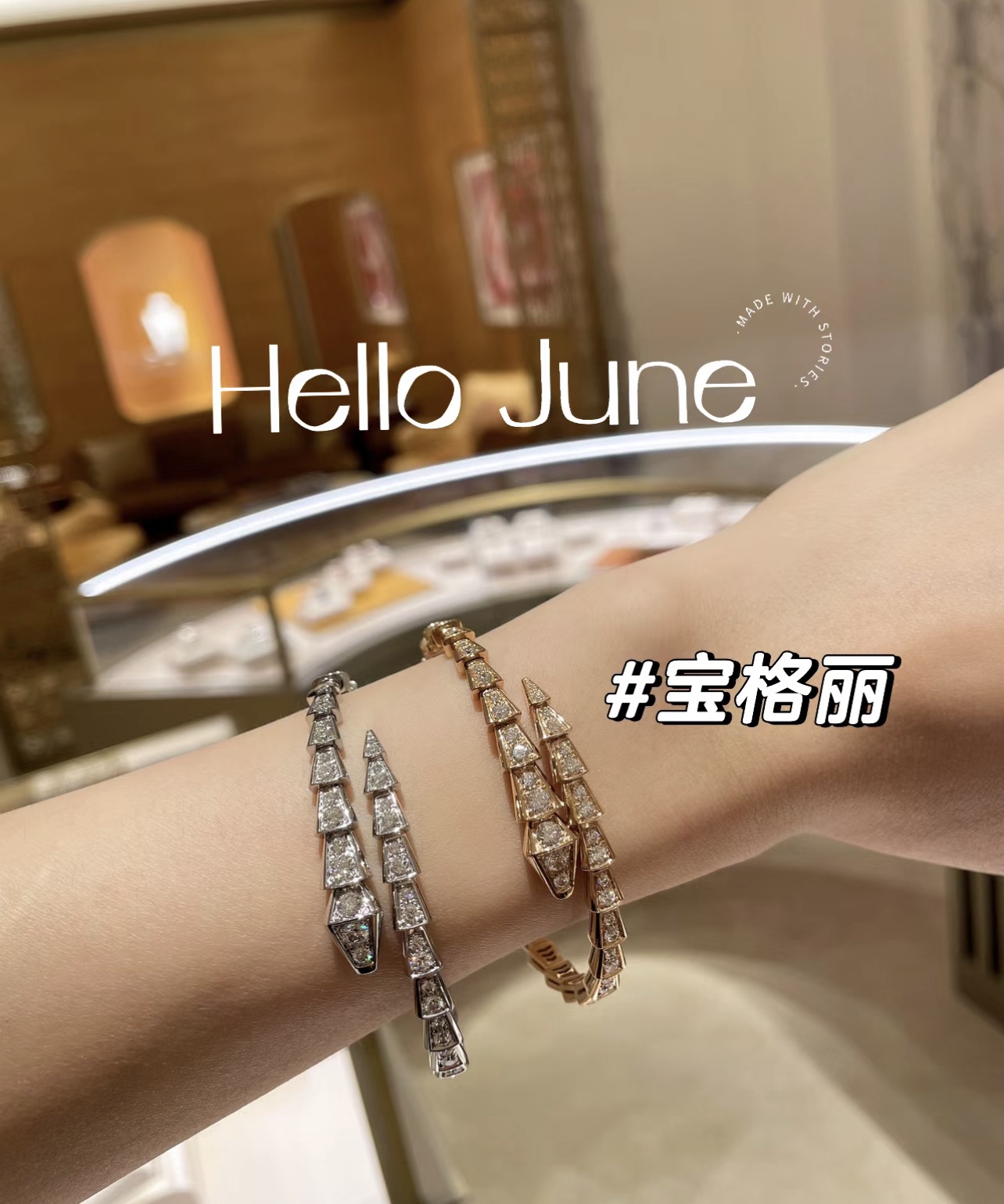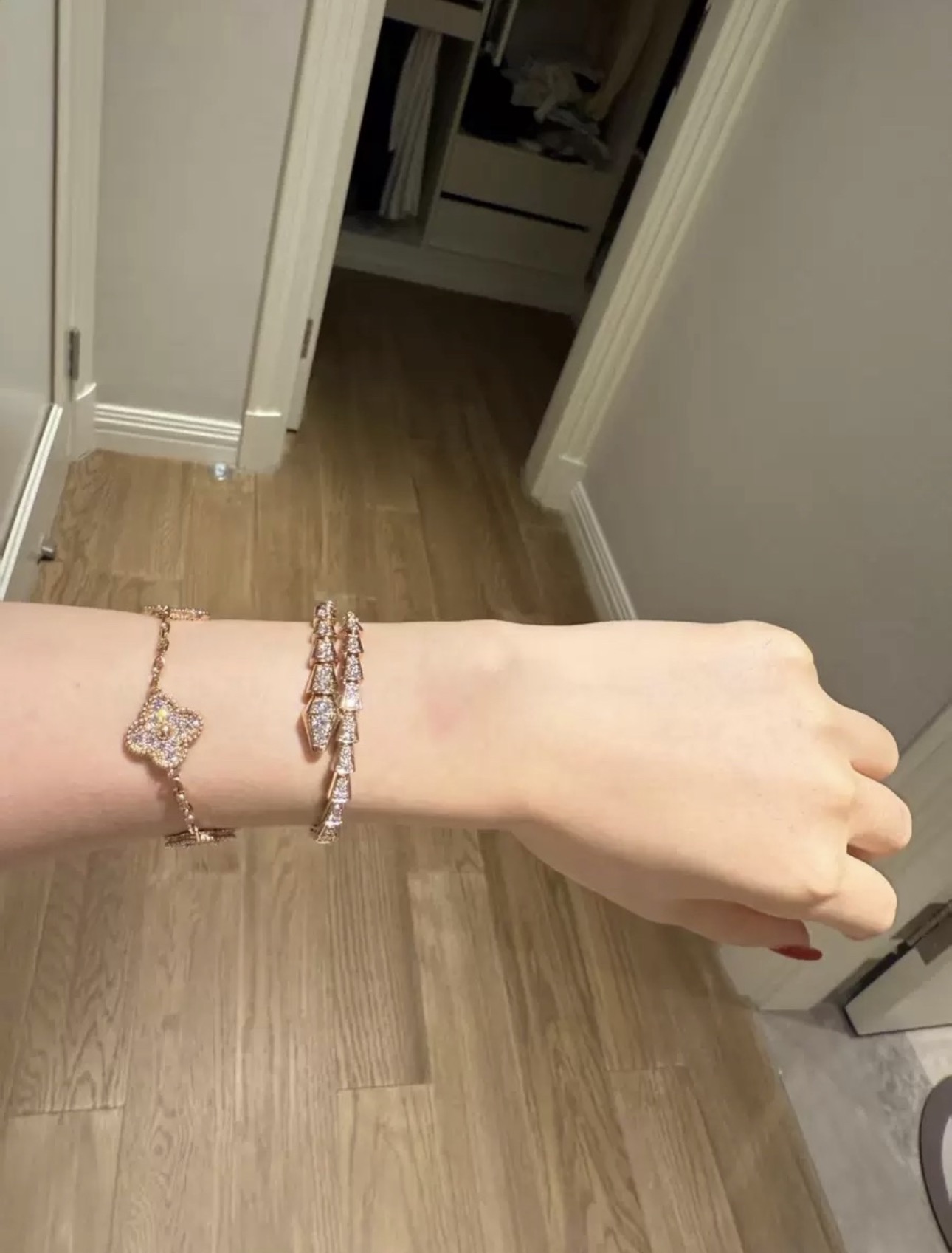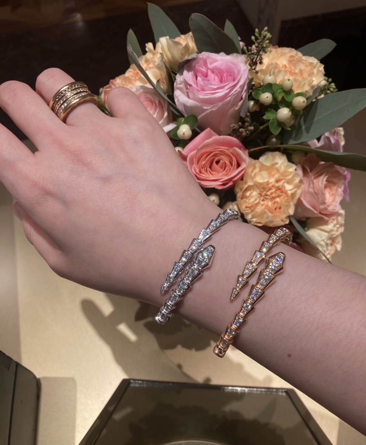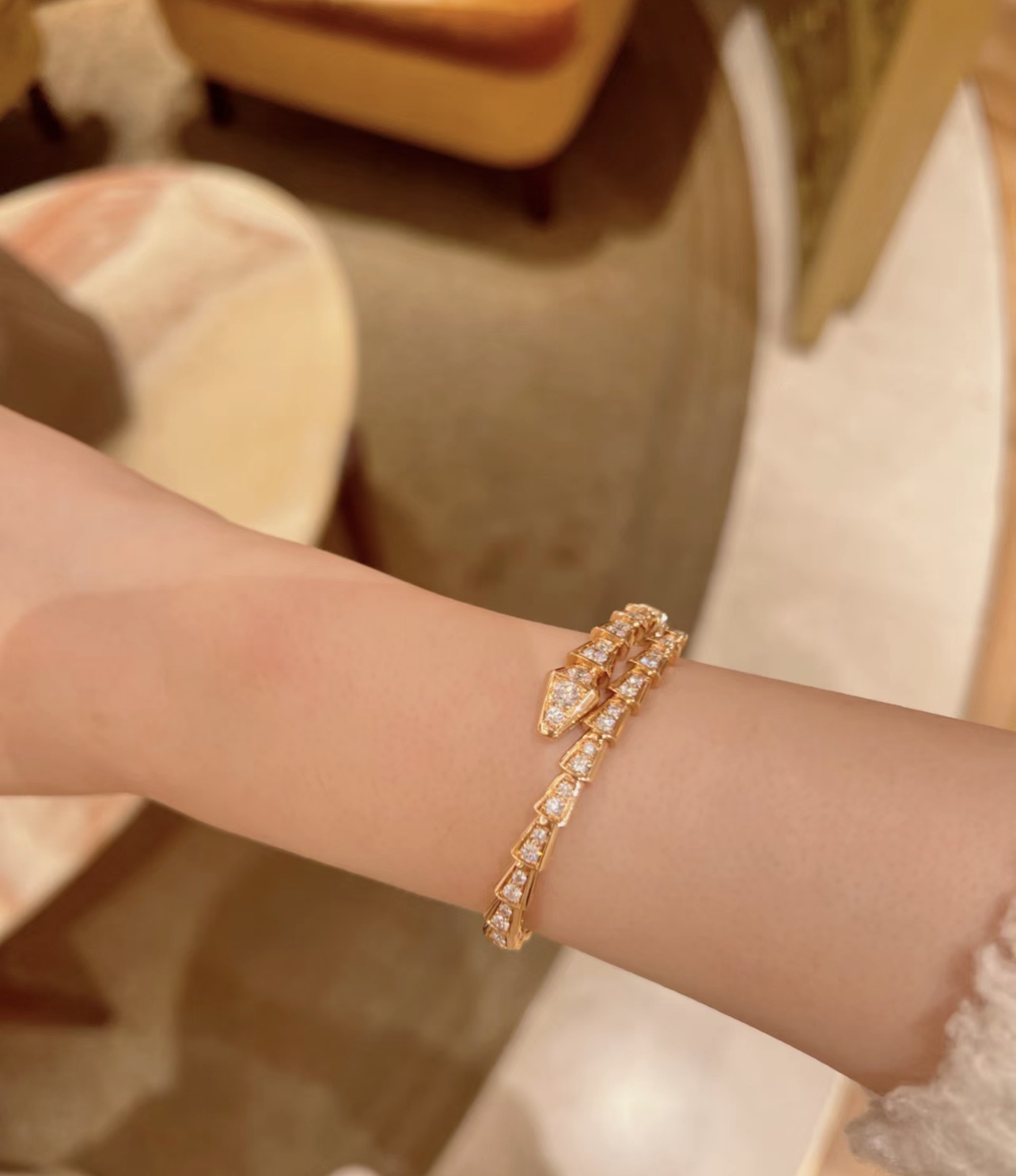 独家对版CNC数控精雕 精工高定 宝格丽BVLGARI SERPENTI系列 蛇形满钻手镯 玫瑰金显温柔显肤色、上手很显手细,又显气质✅单戴叠戴都好看,最重要的是很闪✨