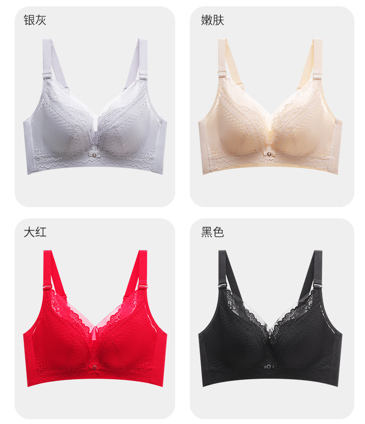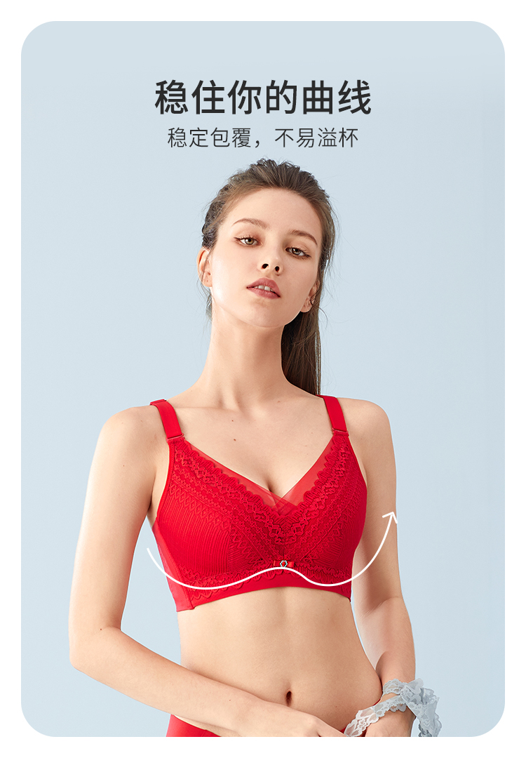 都市丽人聚拢升杯BC杯适穿舒适更聚拢焦点杯蕾丝内衣两种厚度3/4杯常规文胸树脂胶圈四排扣新年本命年红品YB32A3