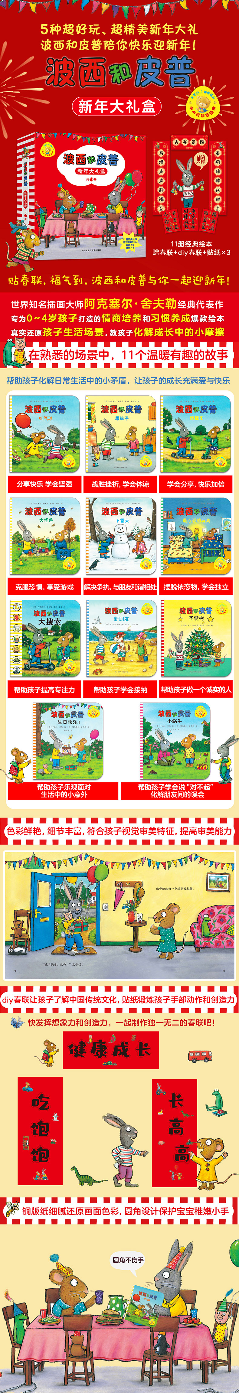 小小聪明豆绘本:波西和皮普新年大礼盒(附送春联和贴纸)