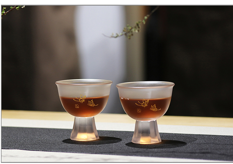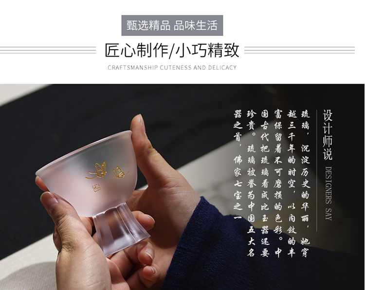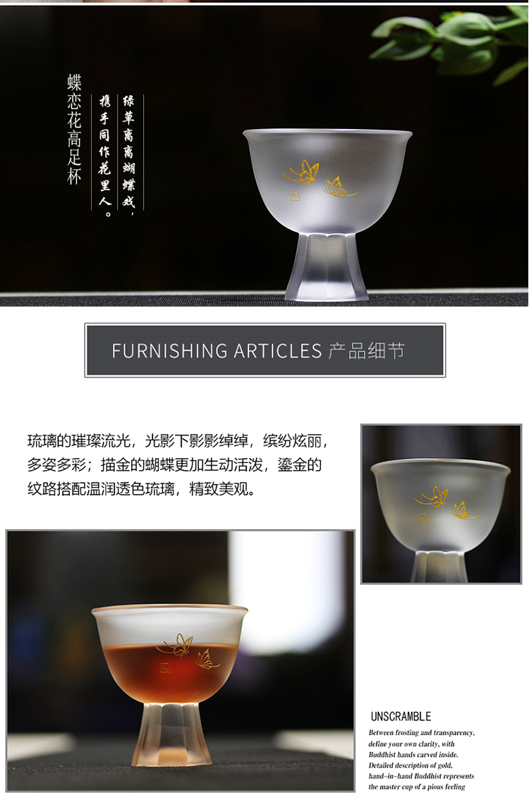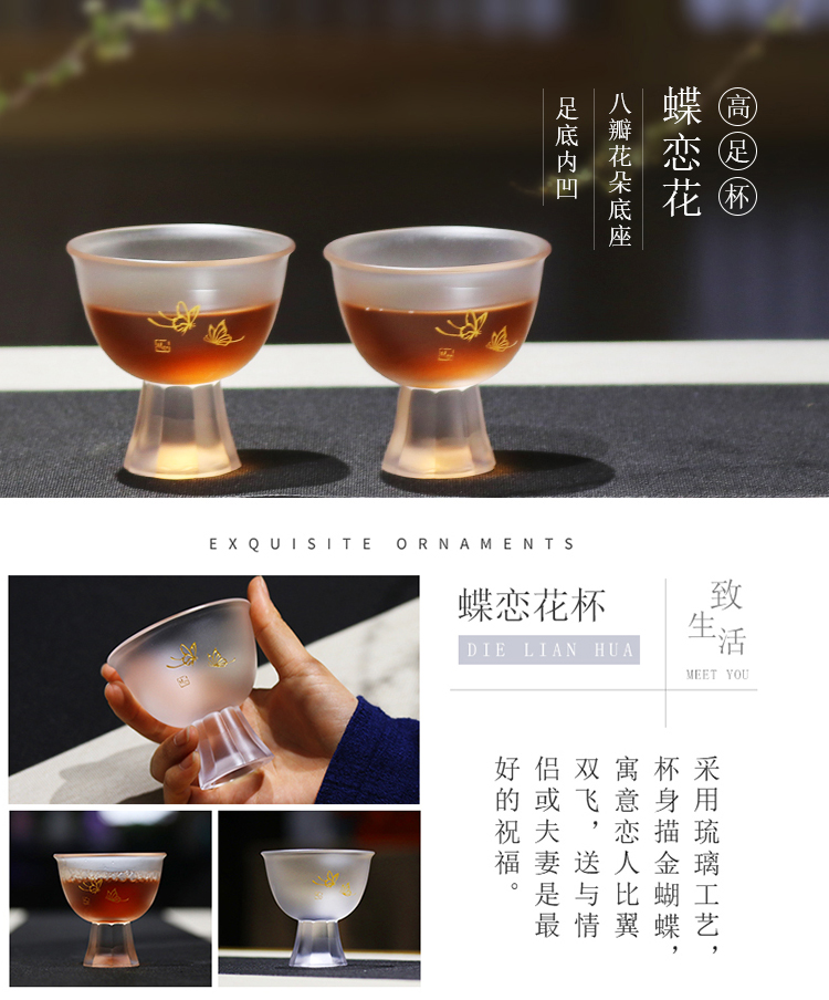 心缘堂蝶恋花高足杯/本色100ML 手工琉璃茶杯品茗杯主人杯 大号加厚功夫茶杯单杯