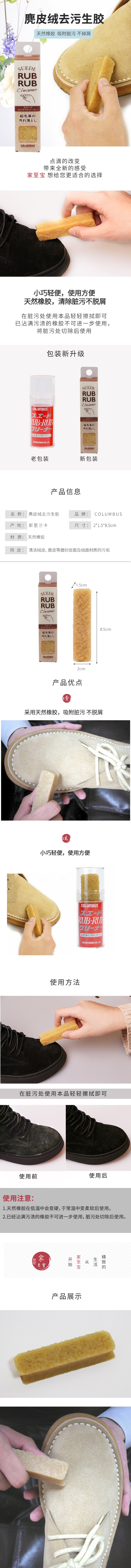 哥伦布斯麂皮绒去污生胶擦麂皮磨砂翻毛鞋清洁去污 鞋擦 擦鞋工具WHJC