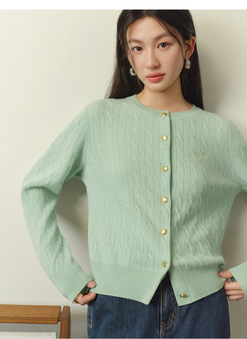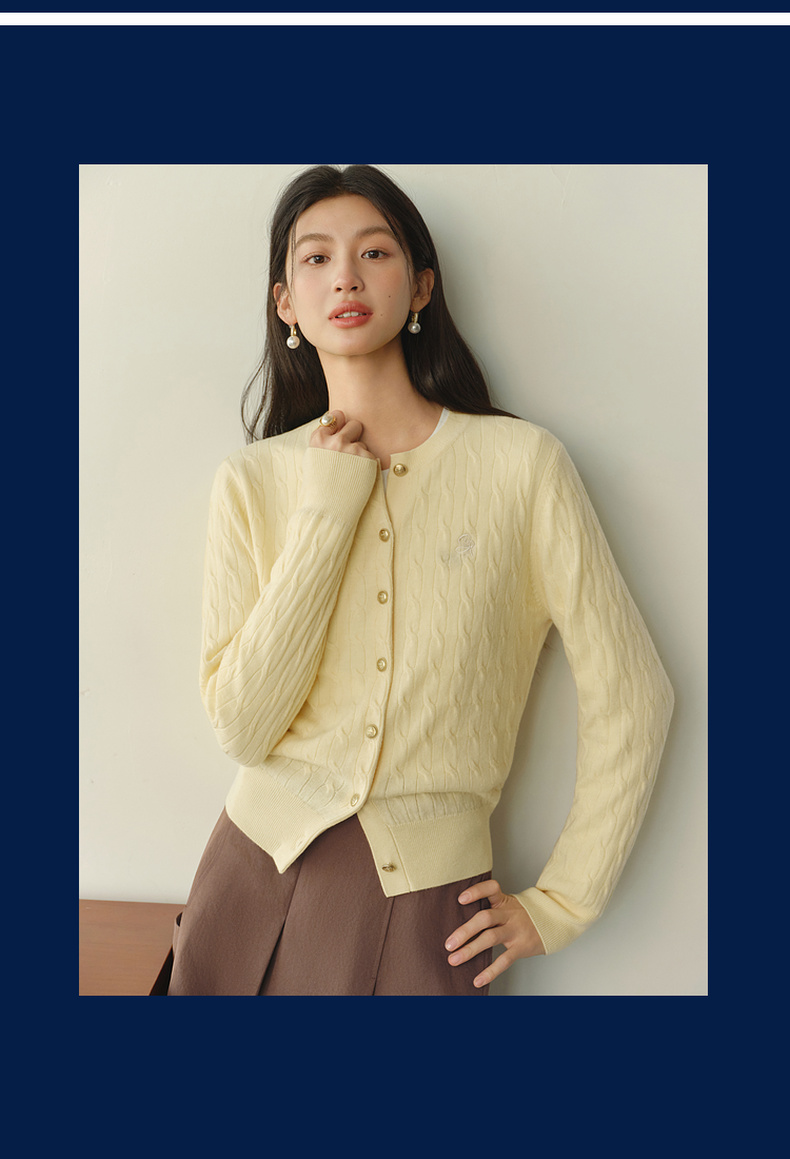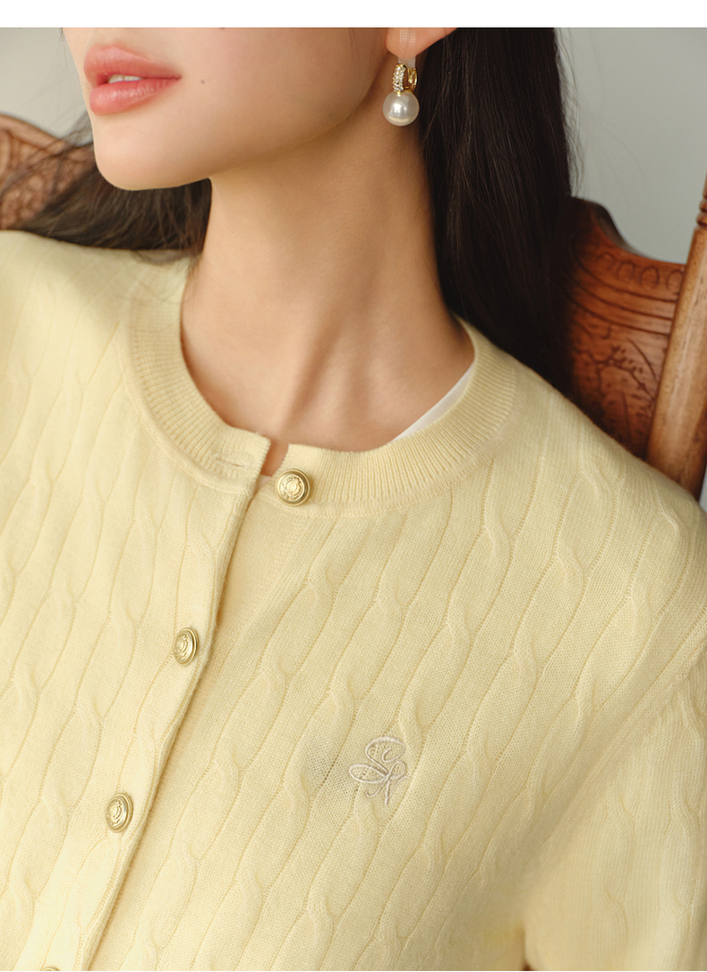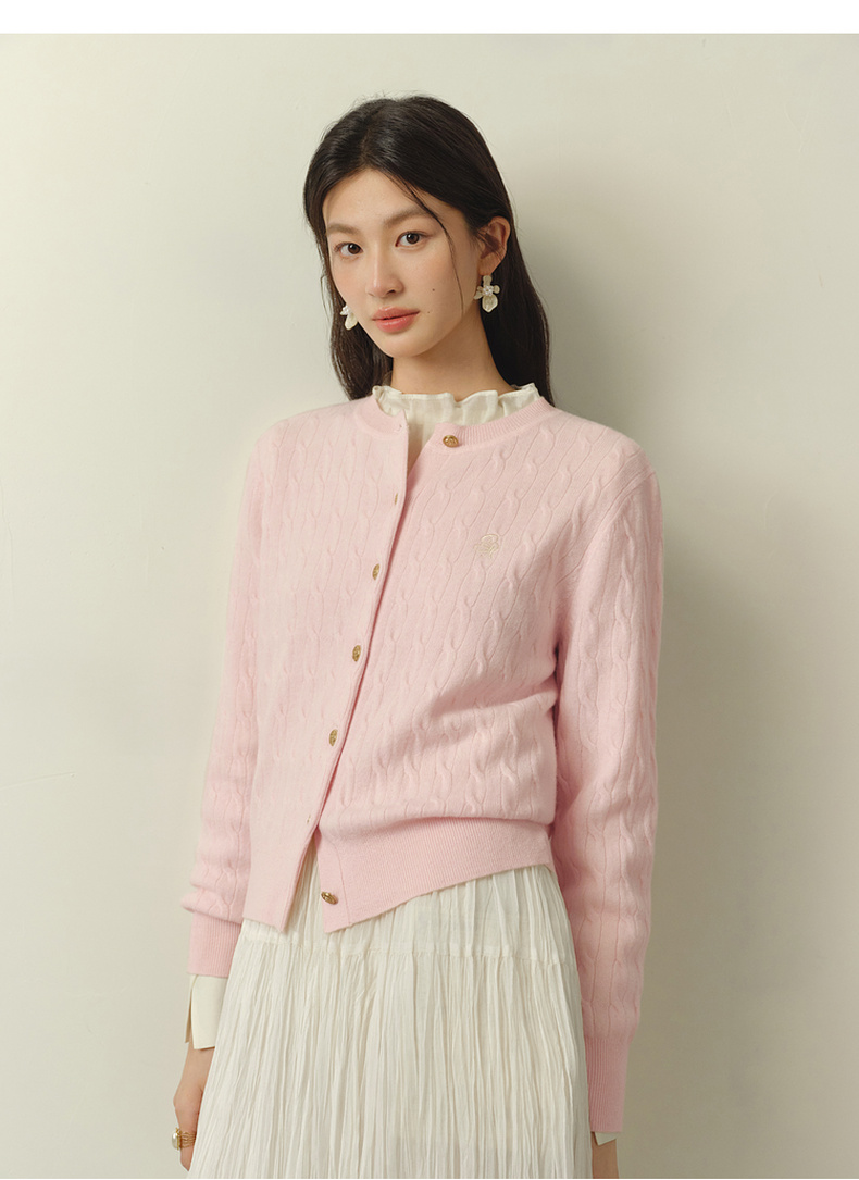 【严选】【孟子义同款】诗凡黎刺绣绞花针织开衫26春新款全羊毛老钱风毛衣7G8332821-6