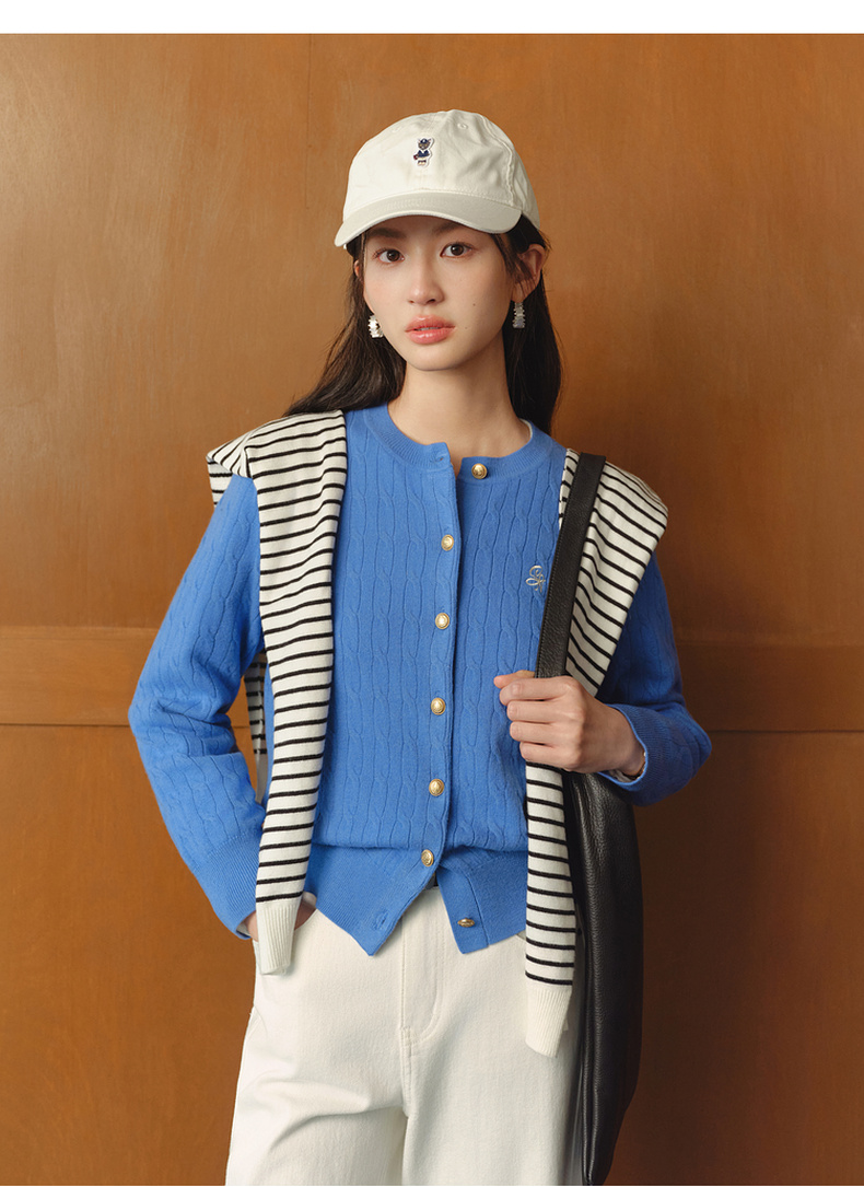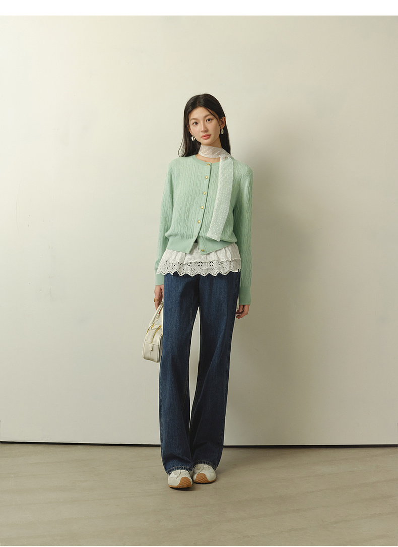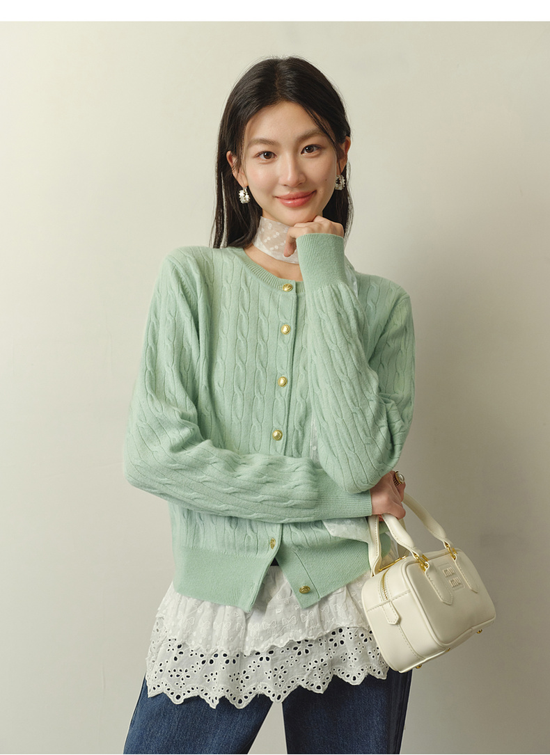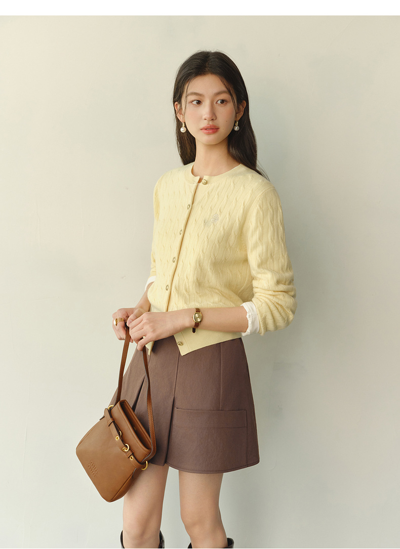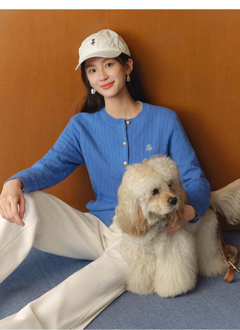 【严选】【孟子义同款】诗凡黎刺绣绞花针织开衫26春新款全羊毛老钱风毛衣7G8332821-6