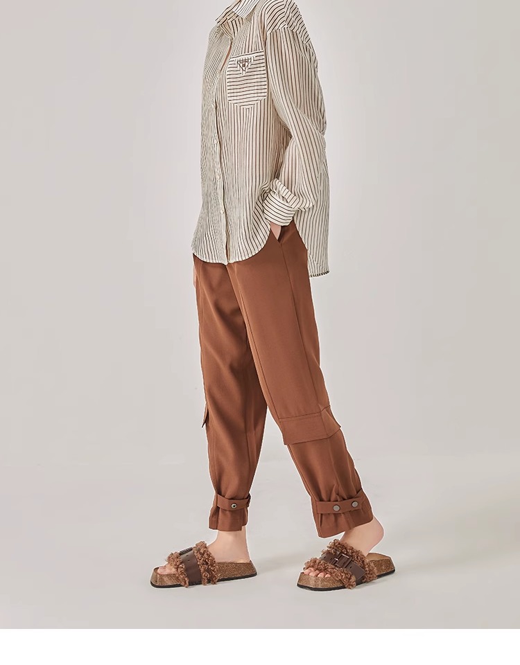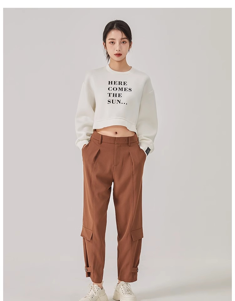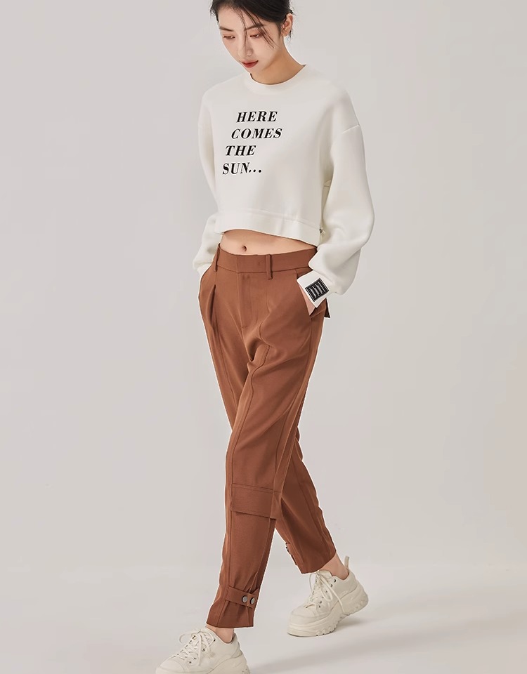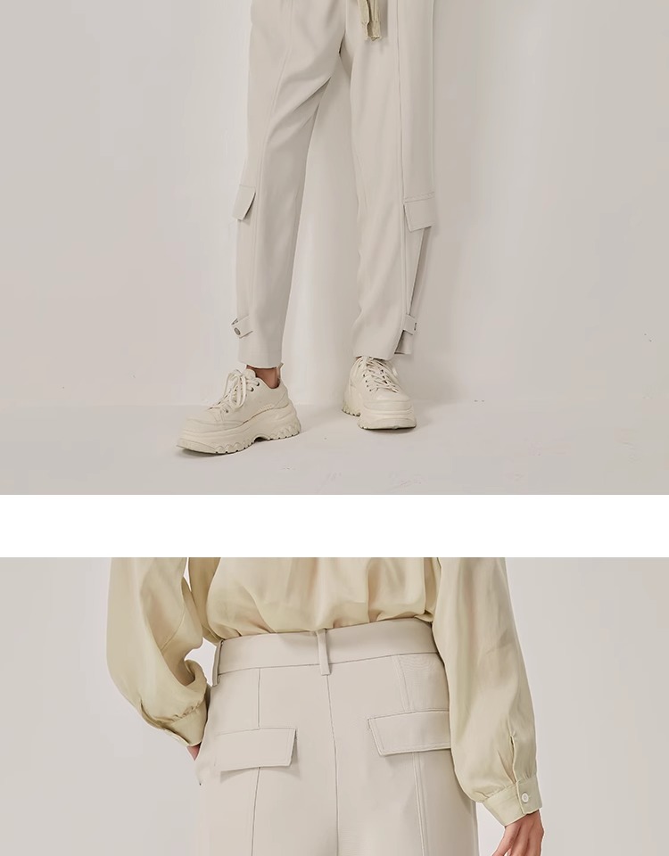 oldcolour2023春新款时尚高腰直筒宽松束脚工装休闲裤女O12073211