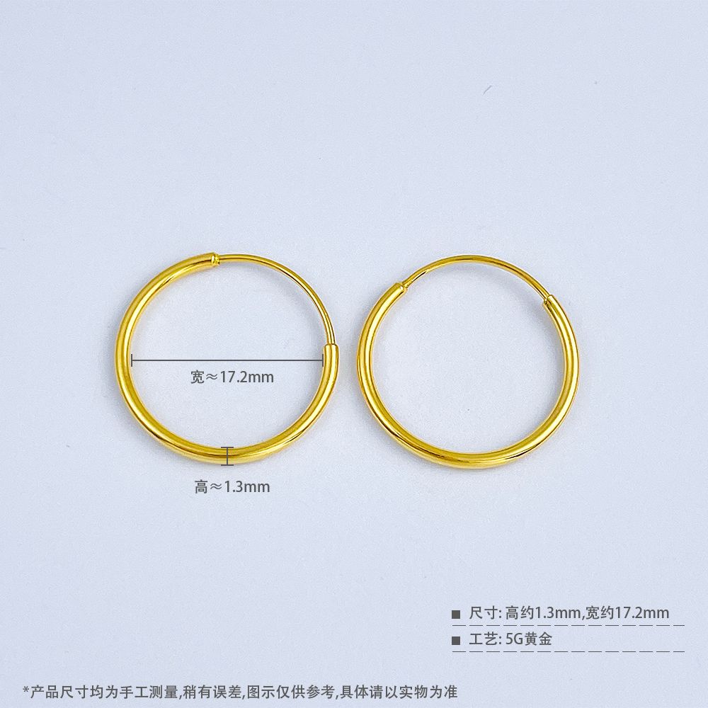 【限时7.5折】【定价黄金】足金999 (足金999字印)5G黄金素圈耳圈(5GES00533)(预售产品下单后不退款不退货不换货不补差价)(预售产品下单后不退款不退货不换货不补差价)