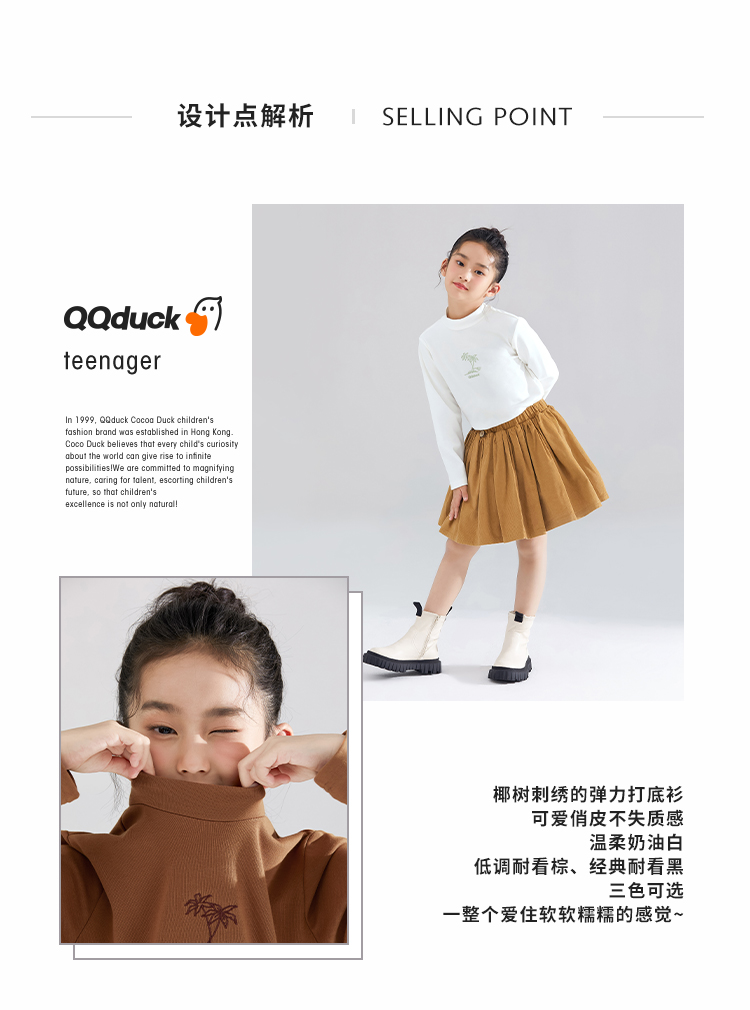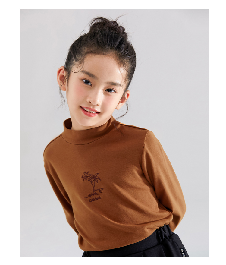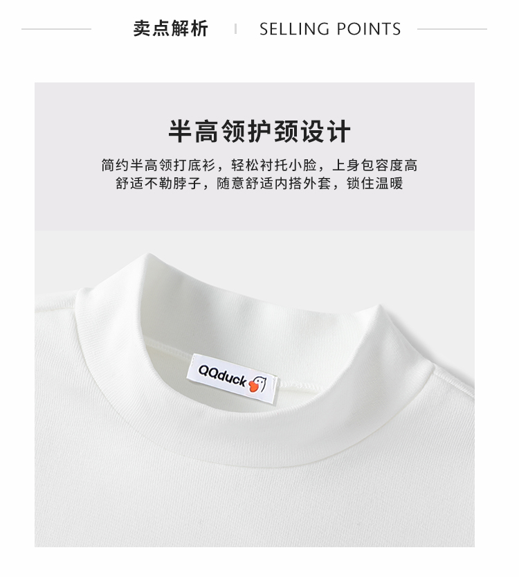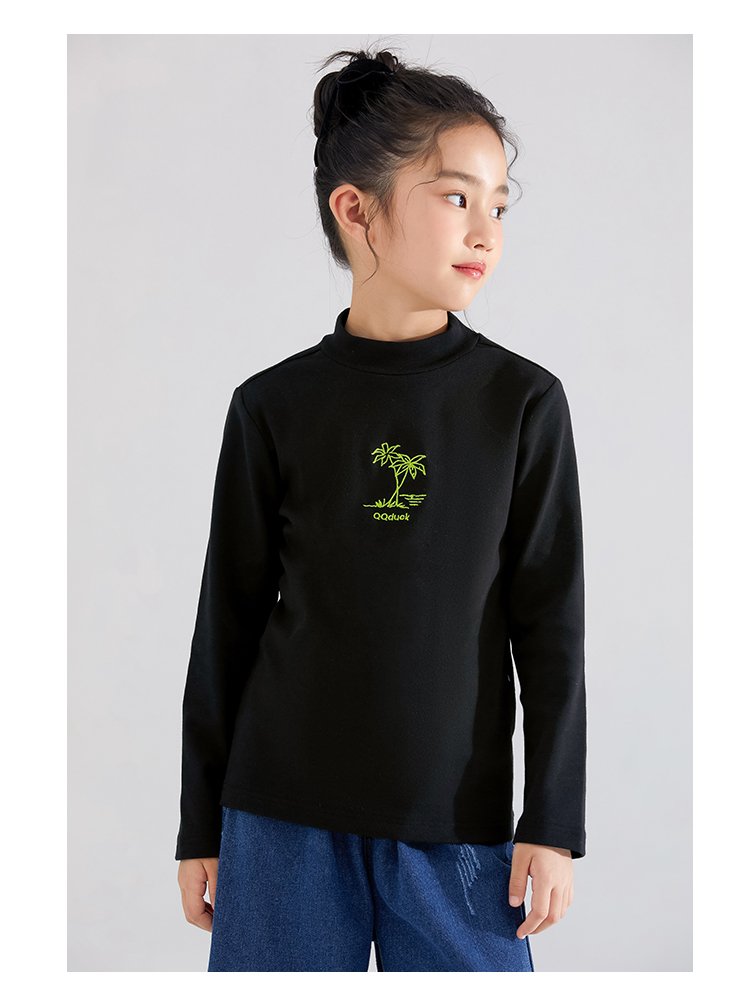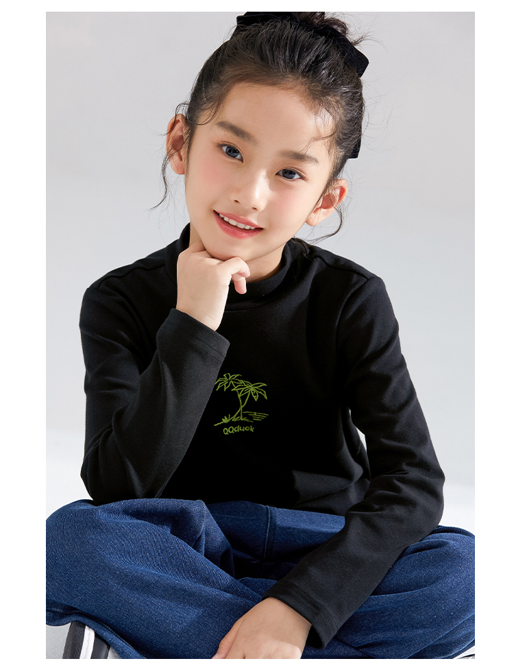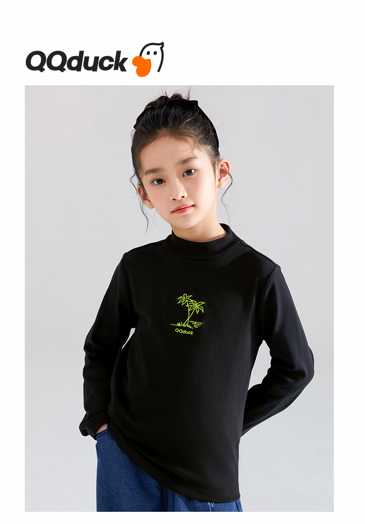 【清仓捡漏】【120-165】【QQduck可可鸭】女童半高领打底衫儿童长袖T恤棉93.6% 氨纶6.4%